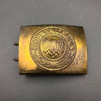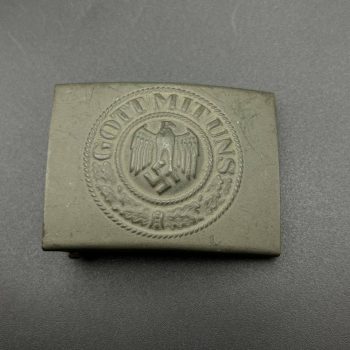 Produced with remnants of the original silver finish, typical for authentic wartime pieces. The reverse features the standard hardware setup with a long vertical pin, tubular hinge, and solid catch. Condition is good, showing natural patina and honest wear without repairs or alterations.