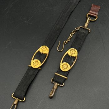 $ 1,295 fee: 22.5%Aluminum SS belt buckle from the late 1930s period. The obverse features the SS eagle with wreath and the motto “Meine Ehre heißt Treue”. Reverse shows the typical early construction with aluminum hook and roller. Clearly marked RZM M155/39 for Assmann & Söhne, Lüdenscheid. Original wartime example, showing honest age patina and wear, with no repairs or restoration.