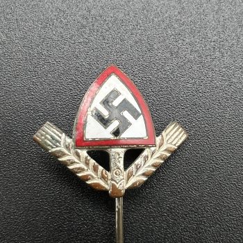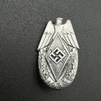 Starting bid: $ 1,285Aluminum SS belt buckle from the late 1930s period. The obverse features the SS eagle with wreath and the motto “Meine Ehre heißt Treue”. Reverse shows the typical early construction with aluminum hook and roller. Clearly marked RZM M155/39 for Assmann & Söhne, Lüdenscheid. Original wartime example, showing honest age patina and wear, with no repairs or restoration.