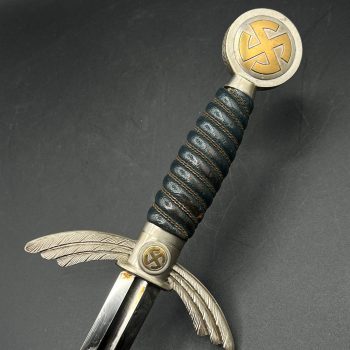 Starting bid: $ 725Original Luftwaffe Anti-Aircraft Badge manufactured by Brehmer, Markneukirchen, a highly regarded and collectible maker. This example displays all the classic Brehmer features: a sharply detailed eagle with long, elegant wings, deeply cast 88 mm gun, and a well-defined oak-leaf wreath with crisp vein work.