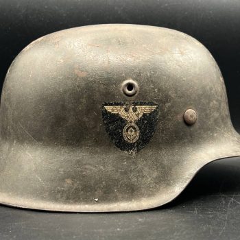 Starting bid: $ 1,285Aluminum SS belt buckle from the late 1930s period. The obverse features the SS eagle with wreath and the motto “Meine Ehre heißt Treue”. Reverse shows the typical early construction with aluminum hook and roller. Clearly marked RZM M155/39 for Assmann & Söhne, Lüdenscheid. Original wartime example, showing honest age patina and wear, with no repairs or restoration.