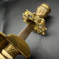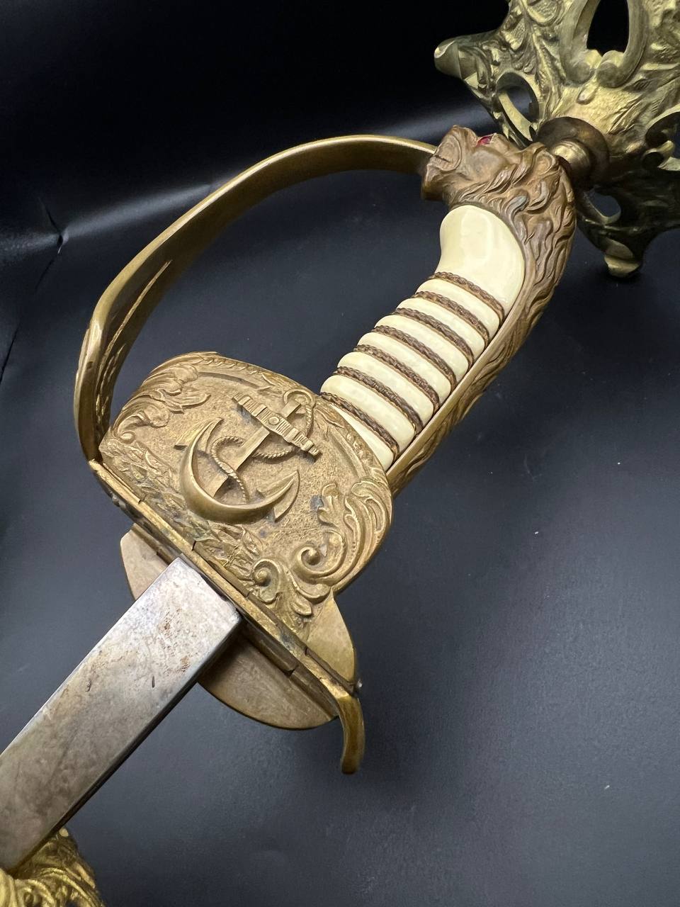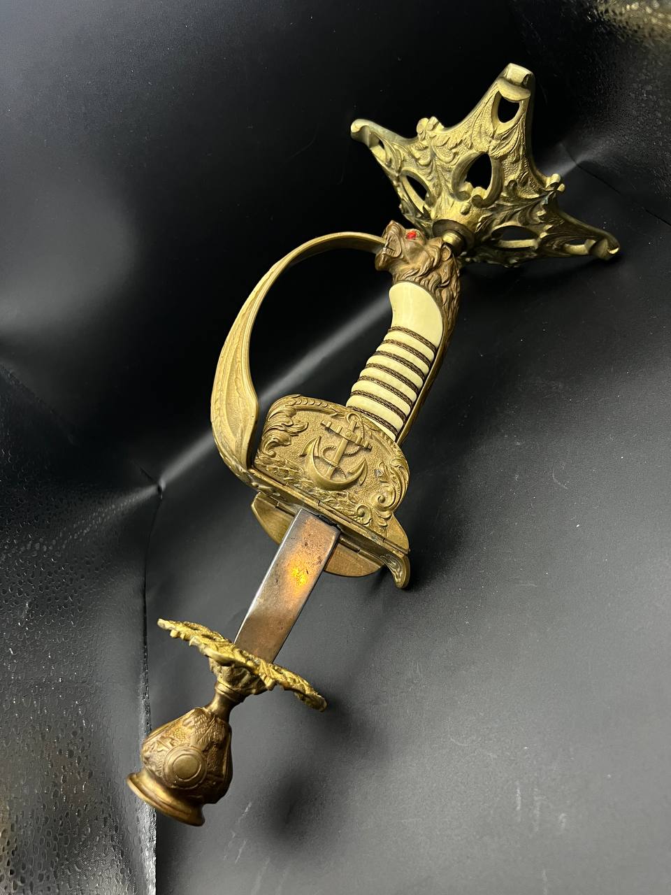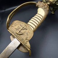 Such repurposed items were often produced as souvenir or presentation pieces from decommissioned naval weapons, especially in the late 19th to early 20th century. The transformation is done neatly, retaining the sword’s distinct maritime character while adapting it for use as a candlestick.