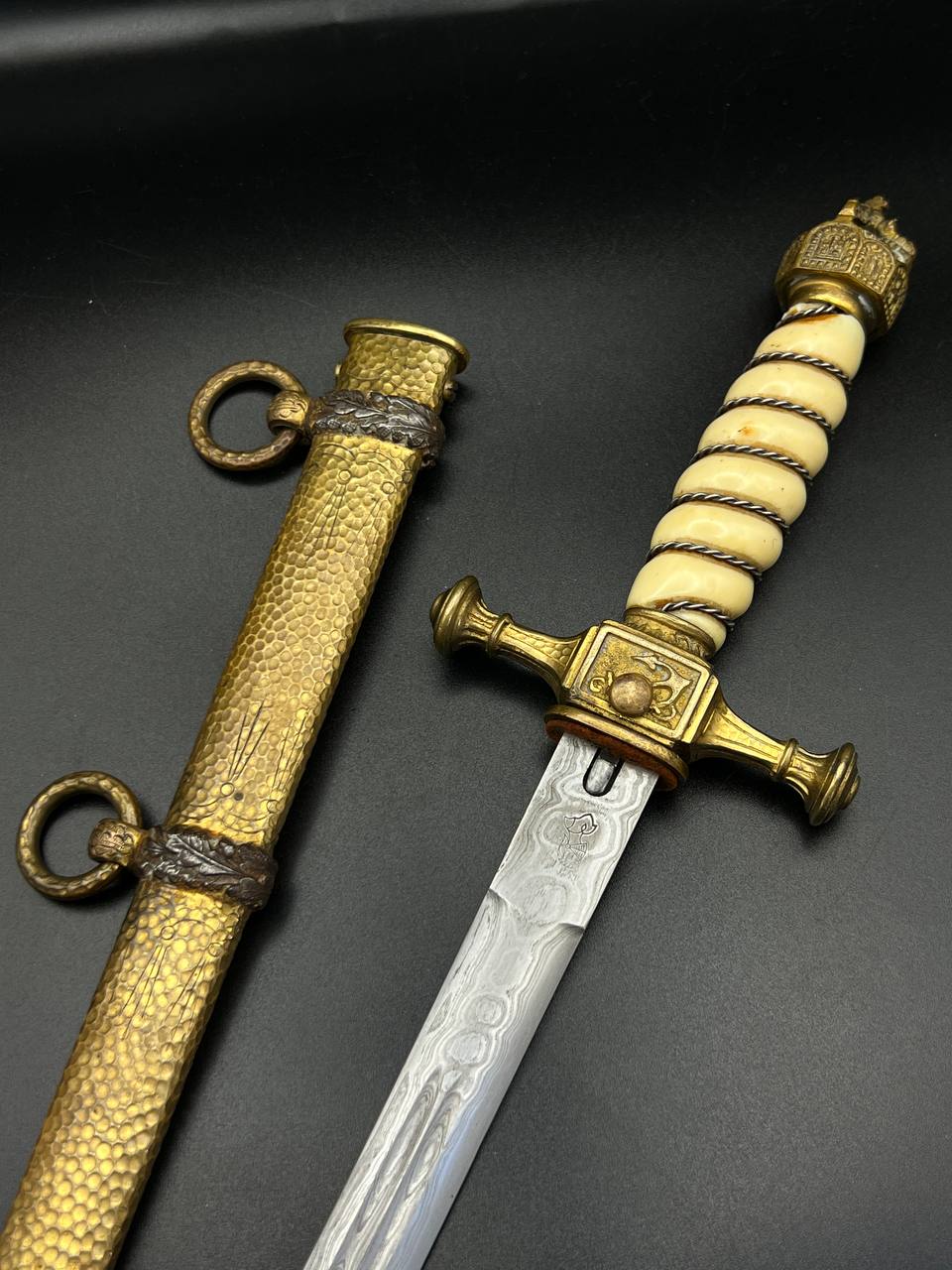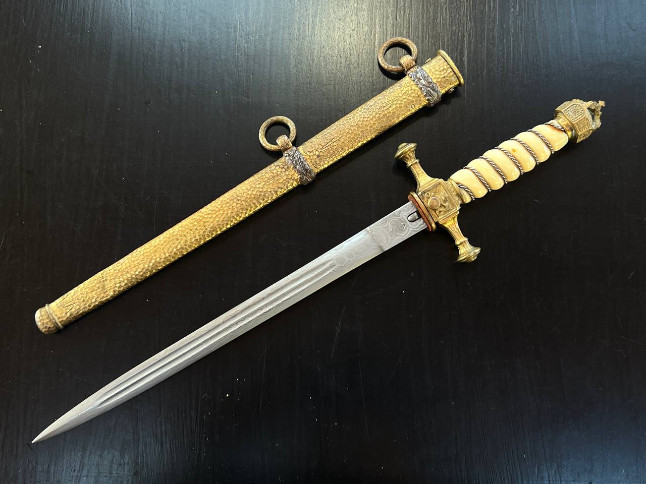 Imperial German Navy Officer’s Dirk by WKC. Damascus Blade.