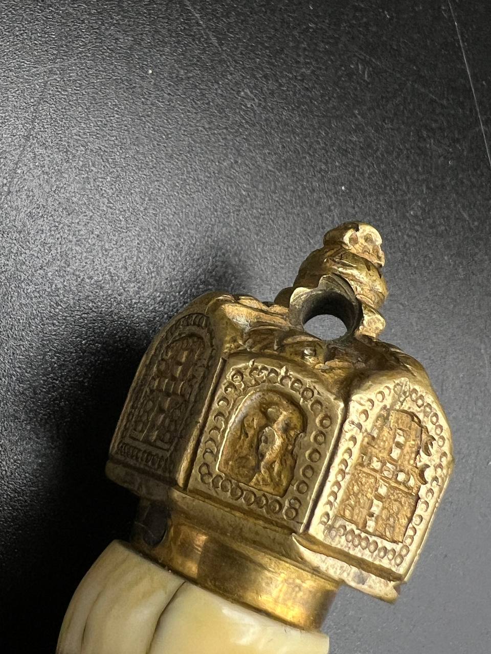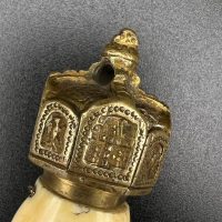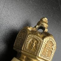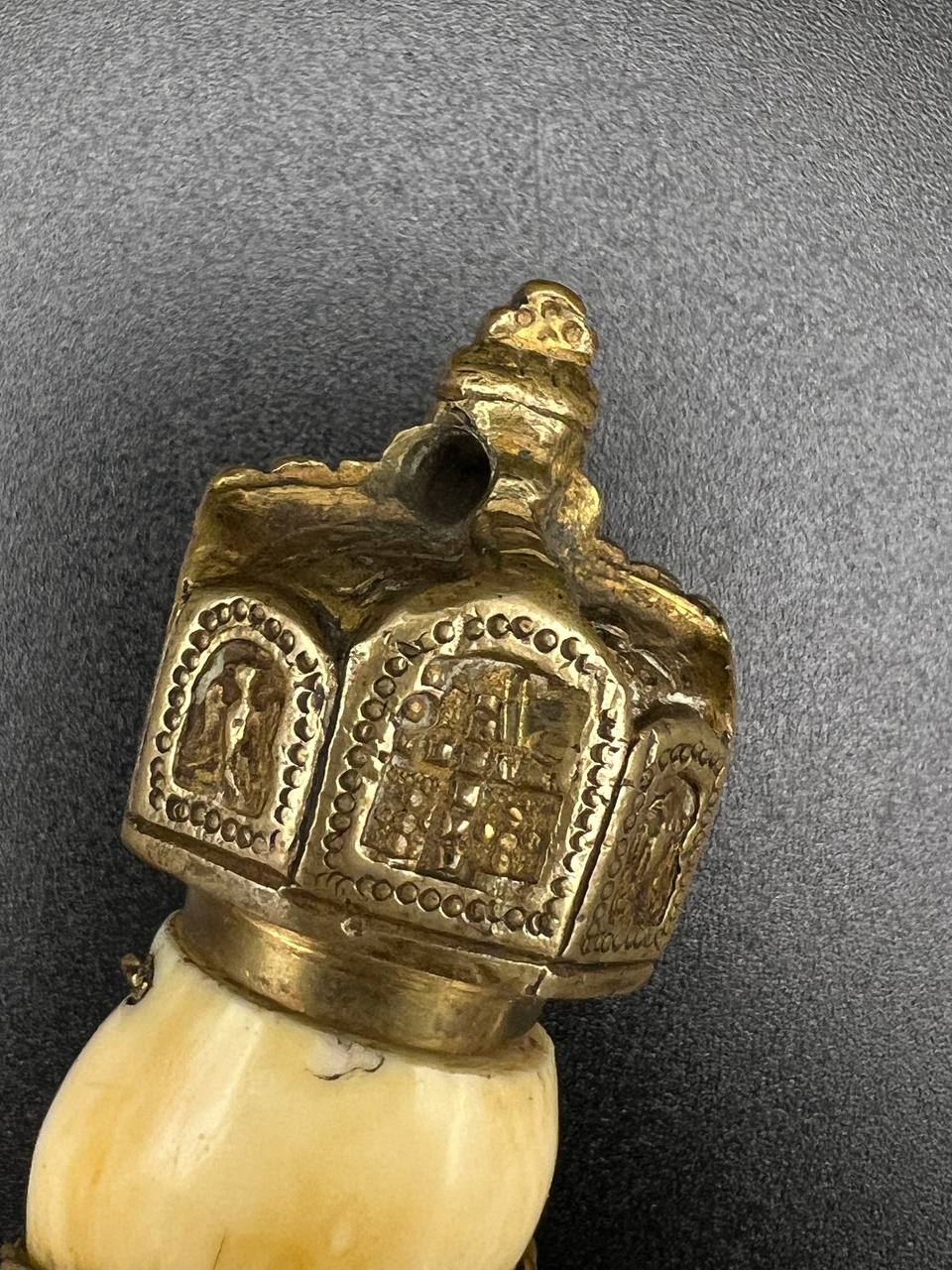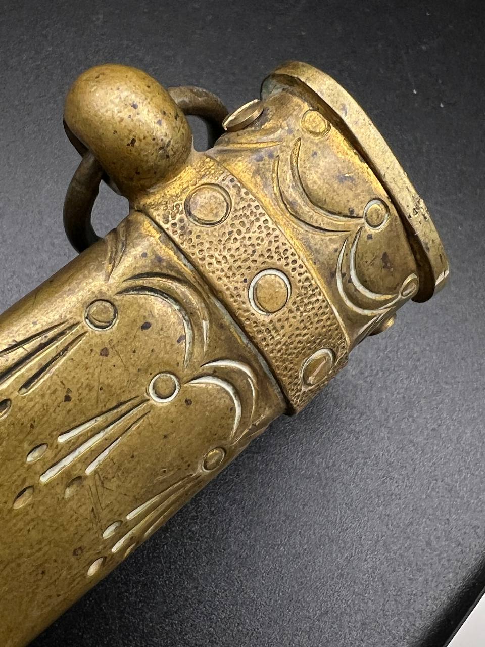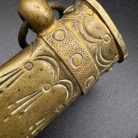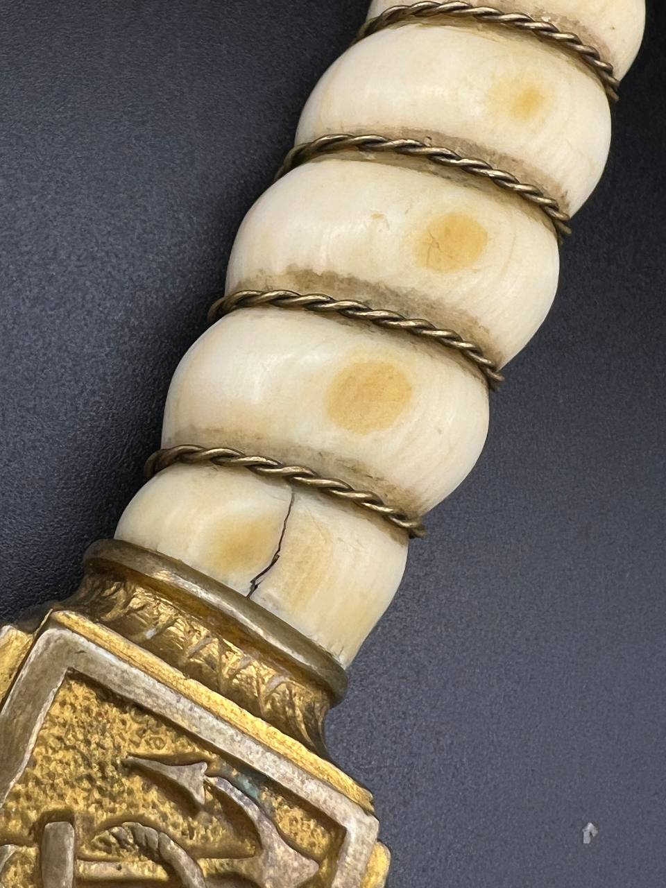 Officer’s dirk of the Kaiserliche Marine, late 19th – early 20th century. Bone grip with twisted brass wire wrap, Imperial crown pommel with fine relief detailing, anchor motif on the crossguard. Engraved brass scabbard with two suspension rings. Blade in good condition, complete set.