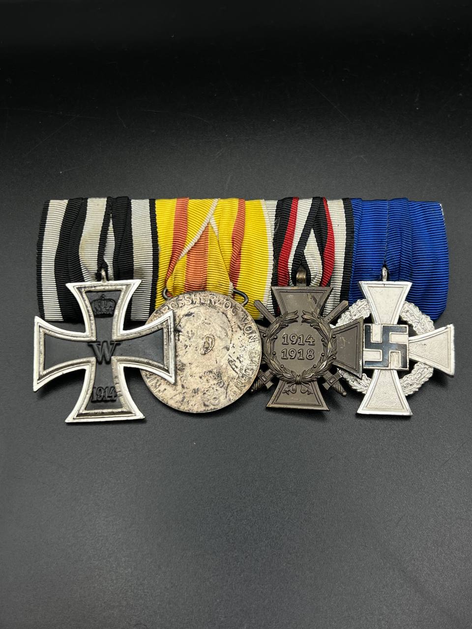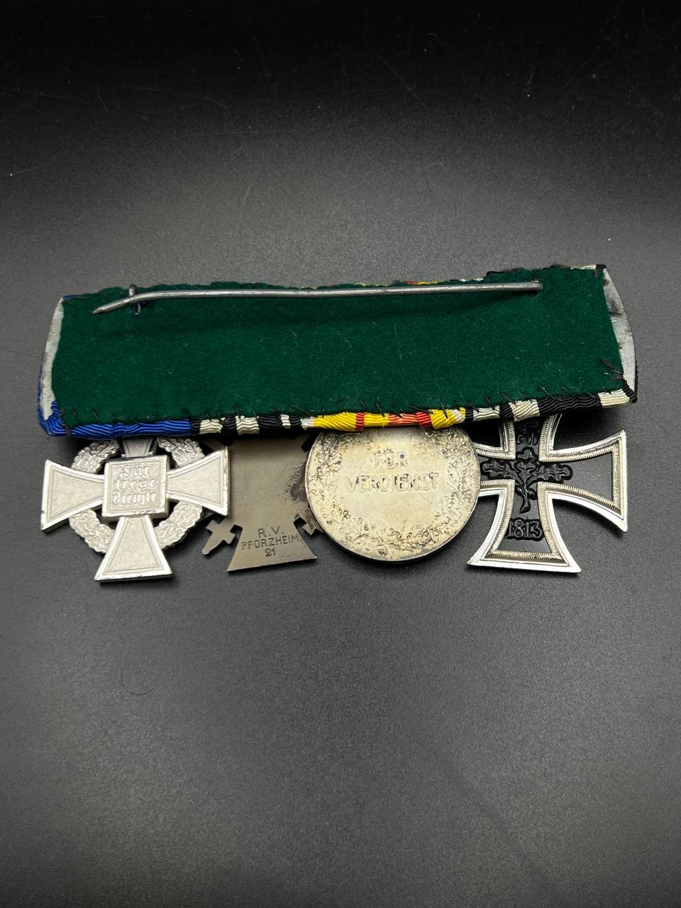 4-Piece Medal Bar of a Baden Official. Baden Bravery Medal and Third Reich Civil Service Long Service Award.