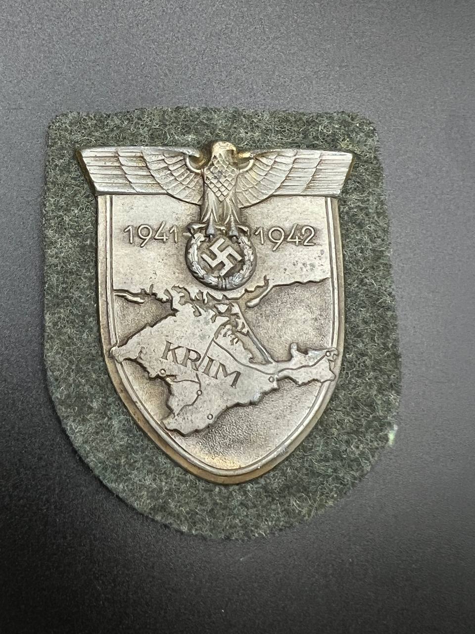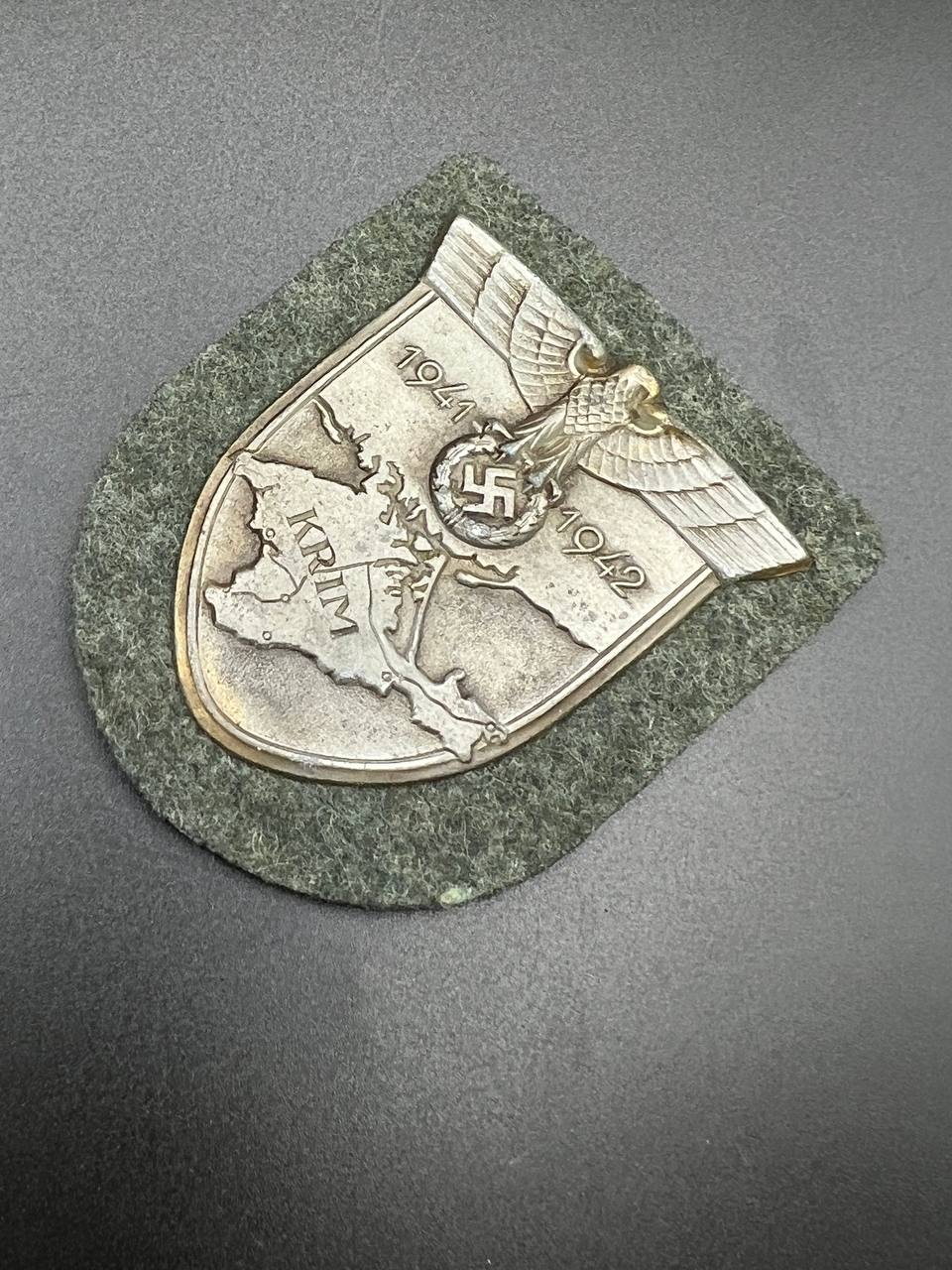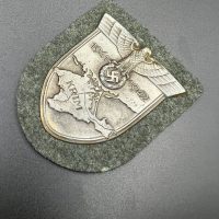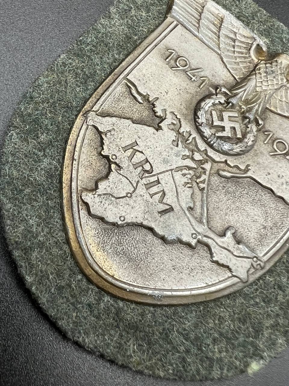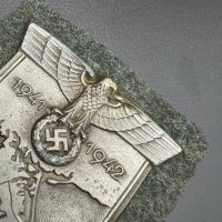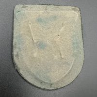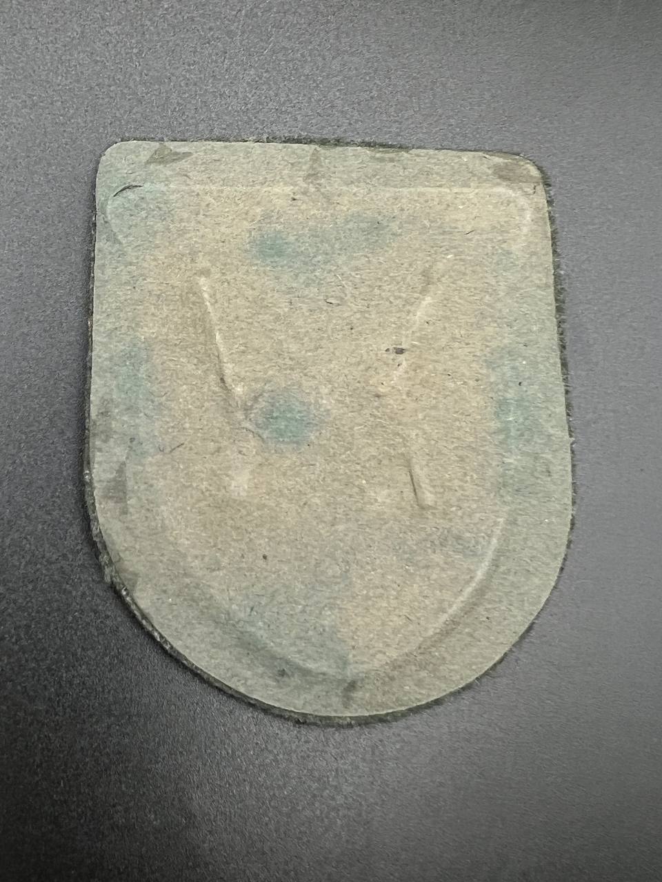 Fine zinc on field-gray cloth backing with back plate and paper underlayer. Unissued condition