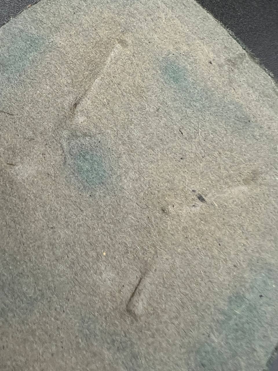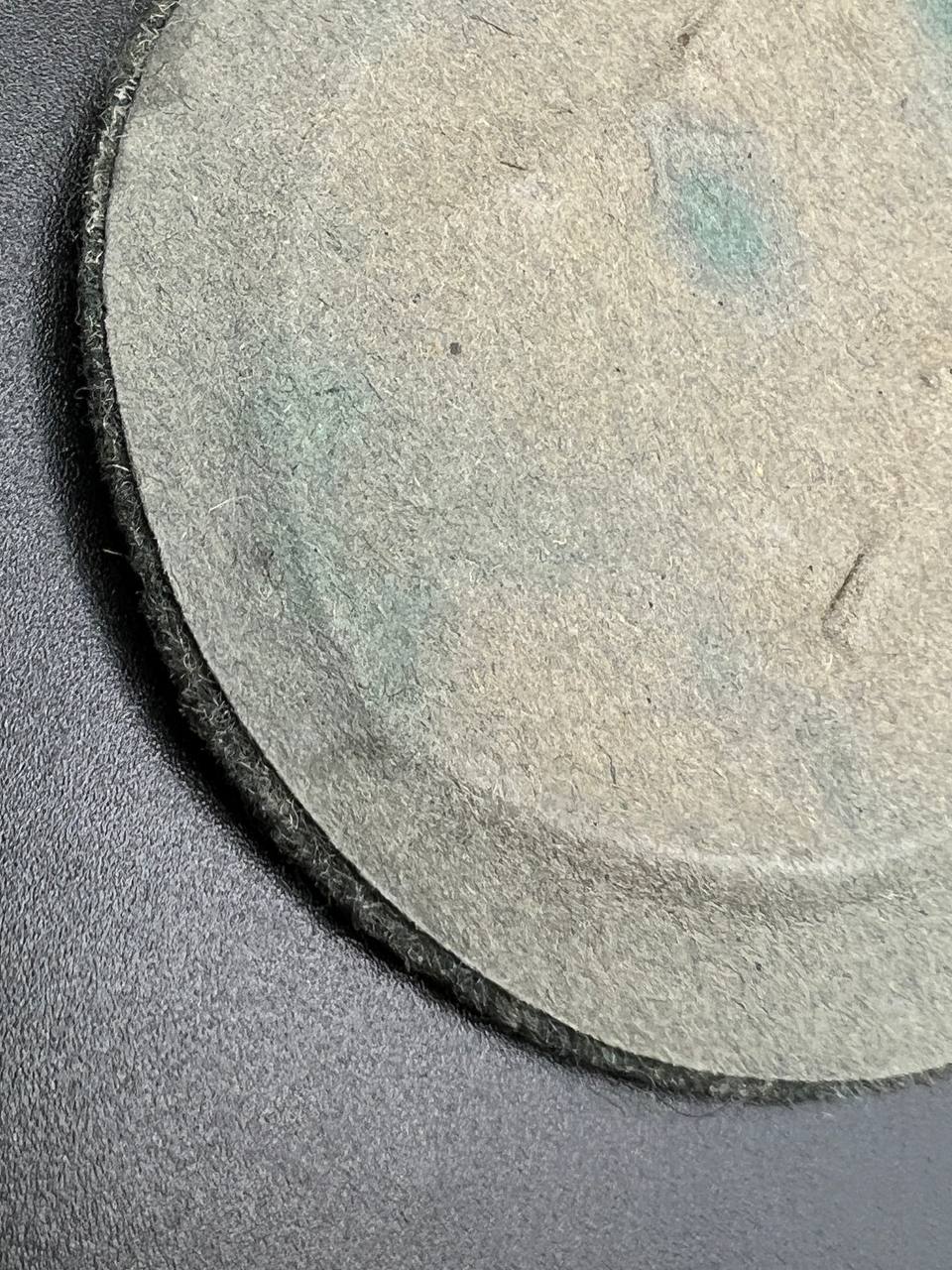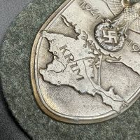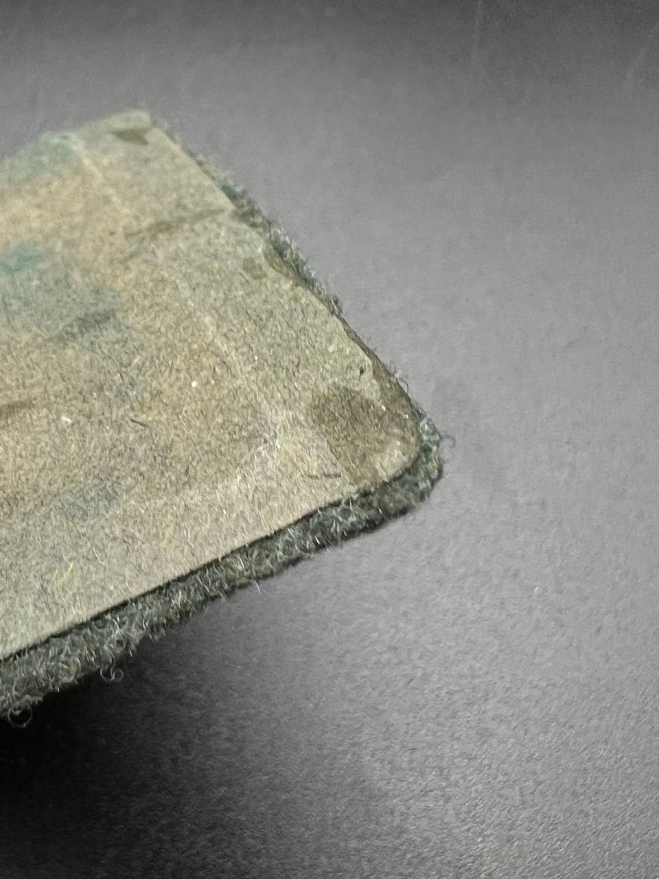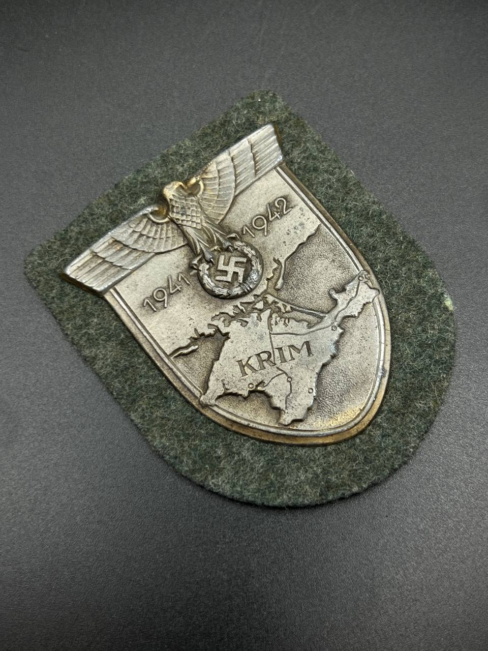 Fine zinc on field-gray cloth backing with back plate and paper underlayer. Unissued condition