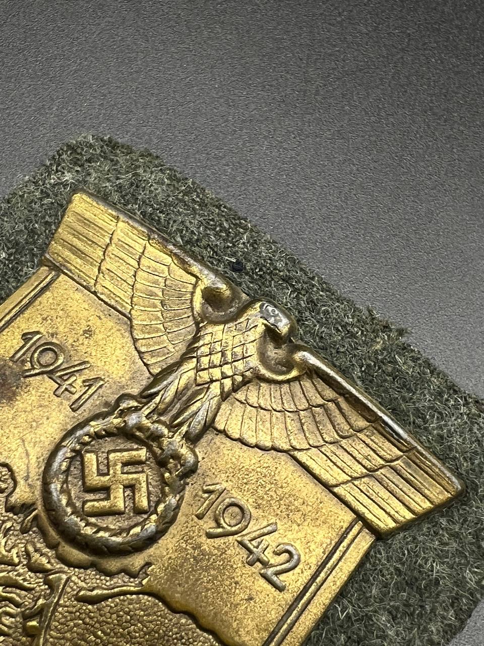 Iron, with field-gray cloth backing with back plate and paper cover.