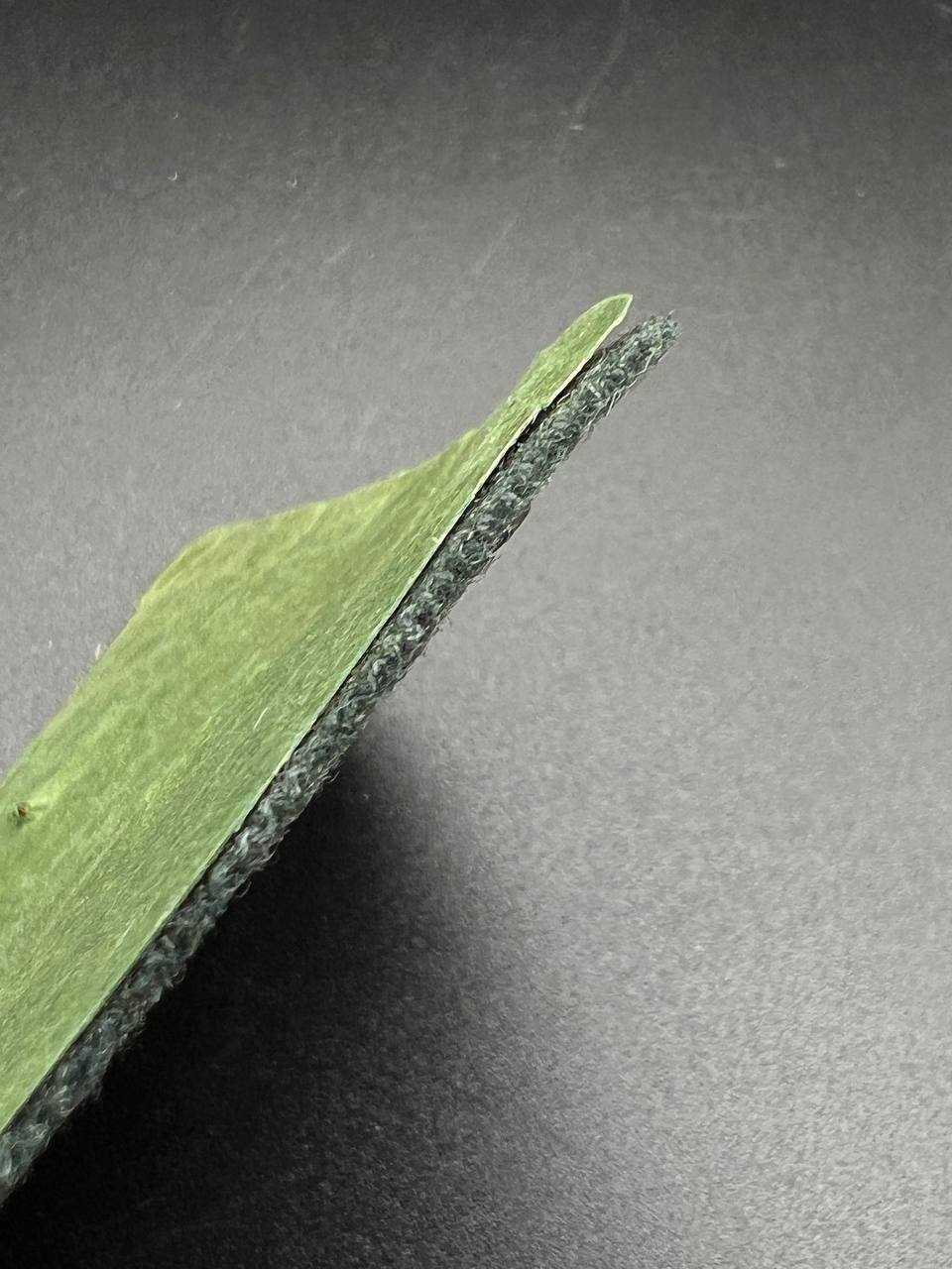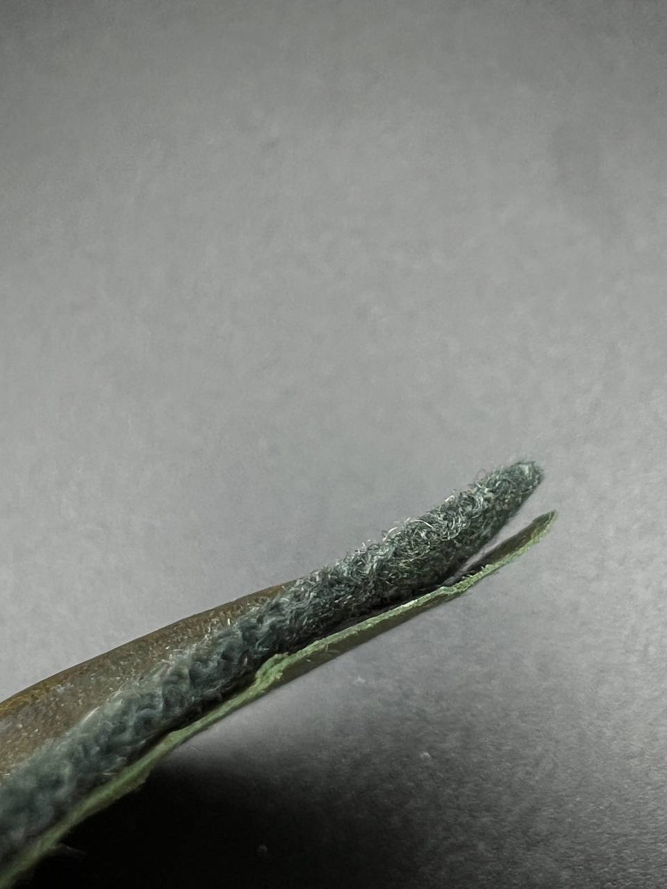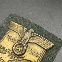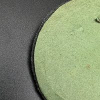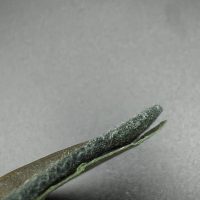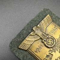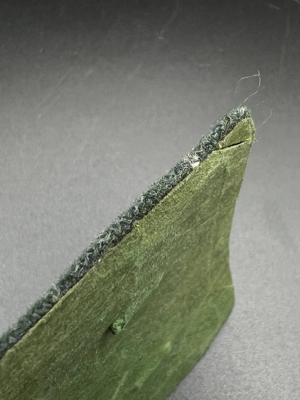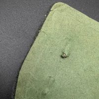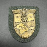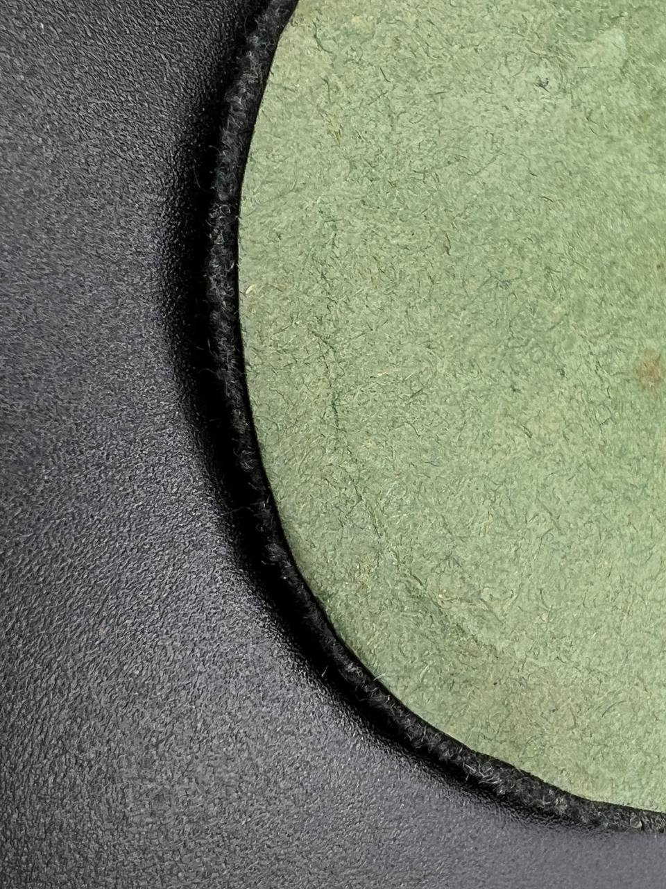 Bronzed sheet steel on field-gray wool backing, backplate with green paper covering