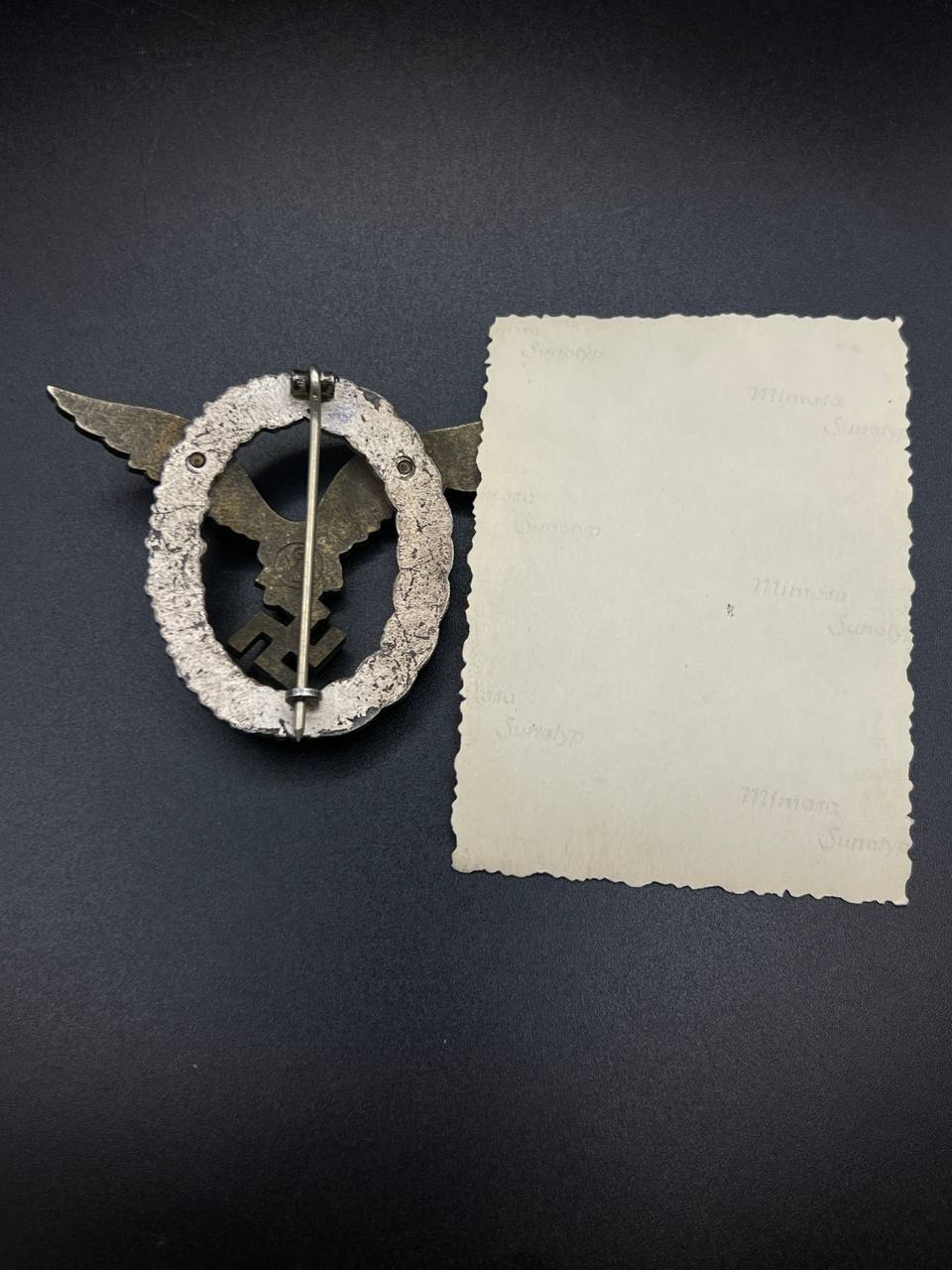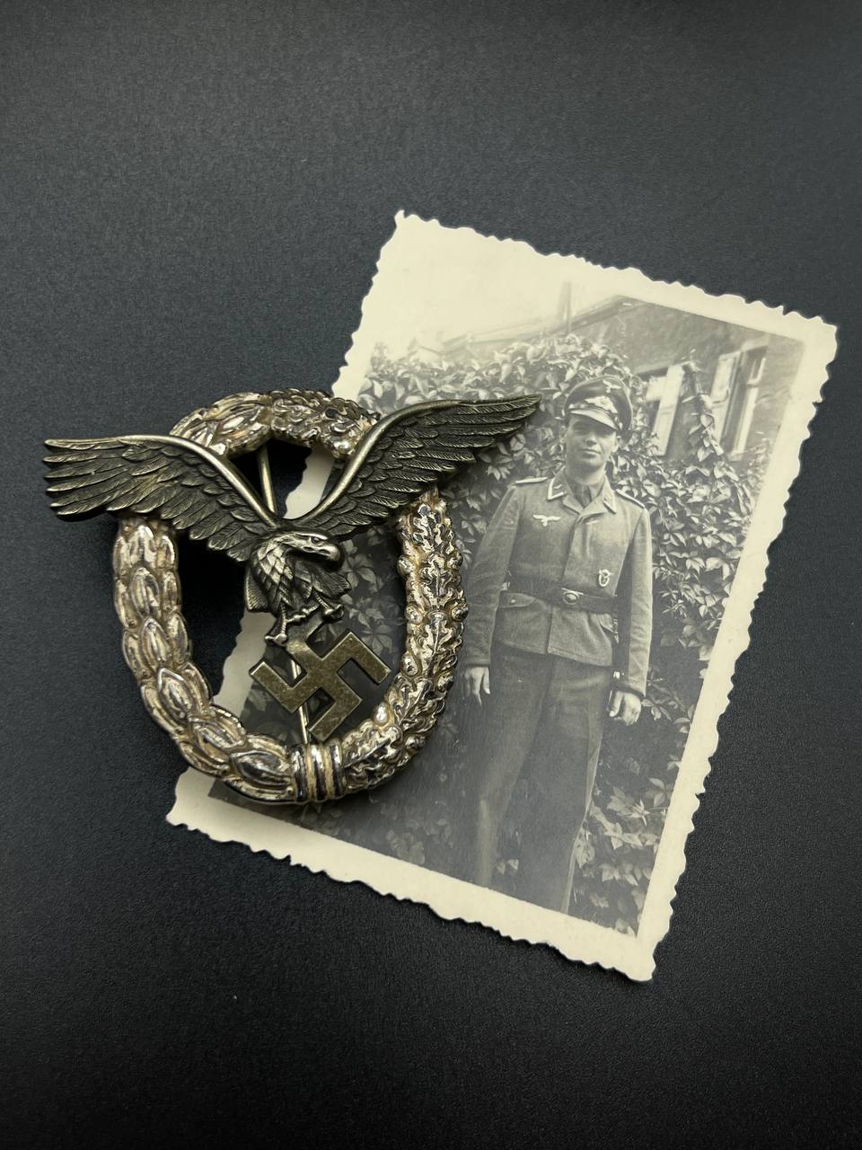 Accompanied by photograph of the wearer, the badge clearly visible. From the estate of Unteroffizier Erwin Harz, Flugzeugführerschule B 9.