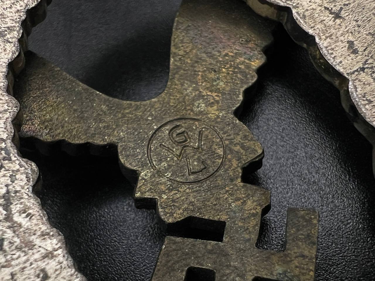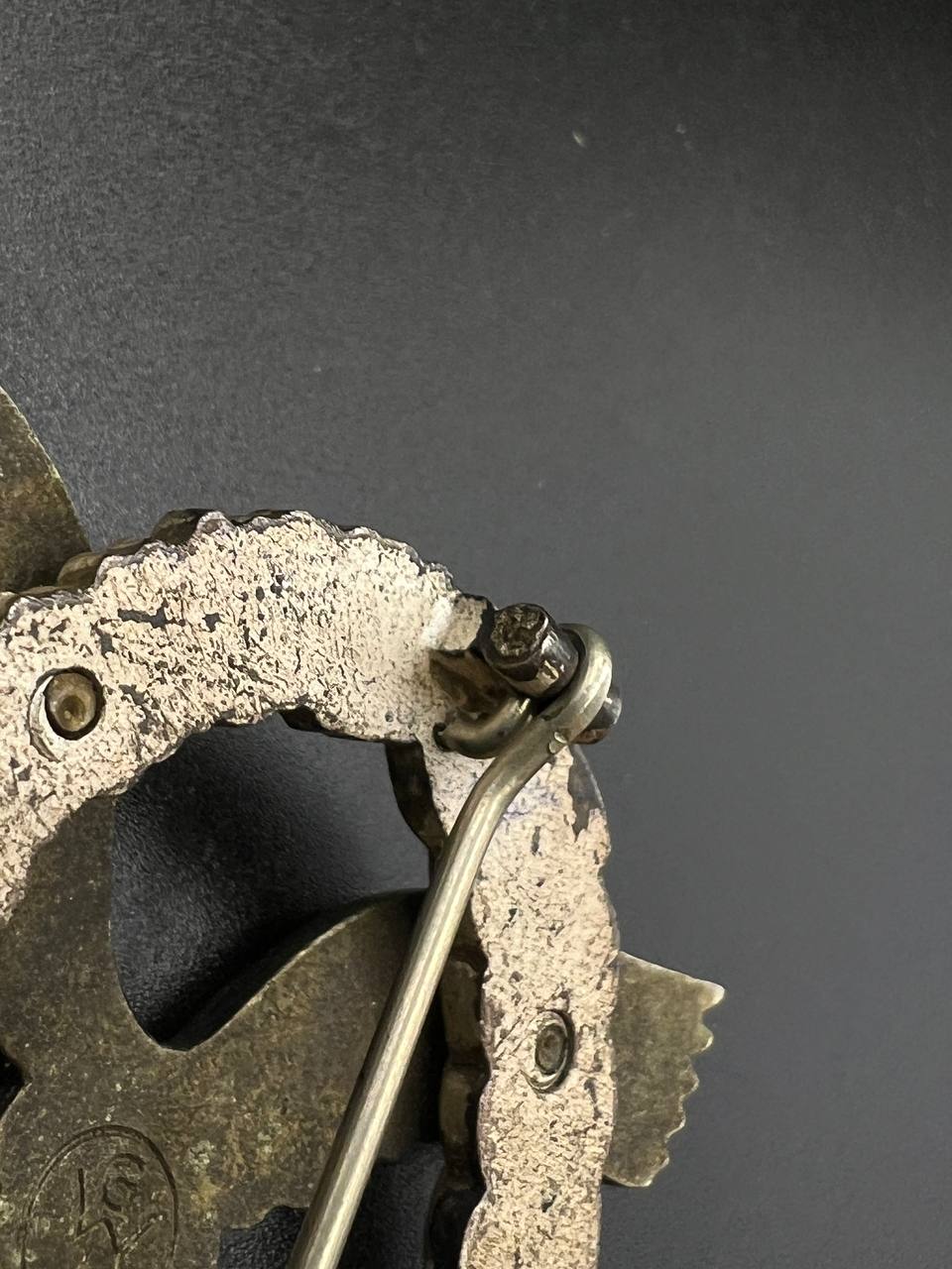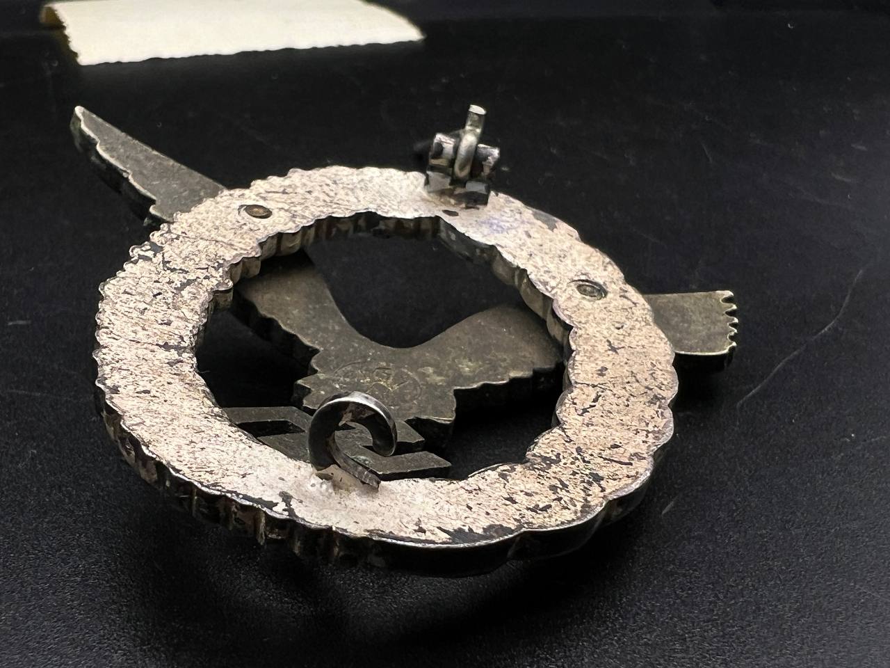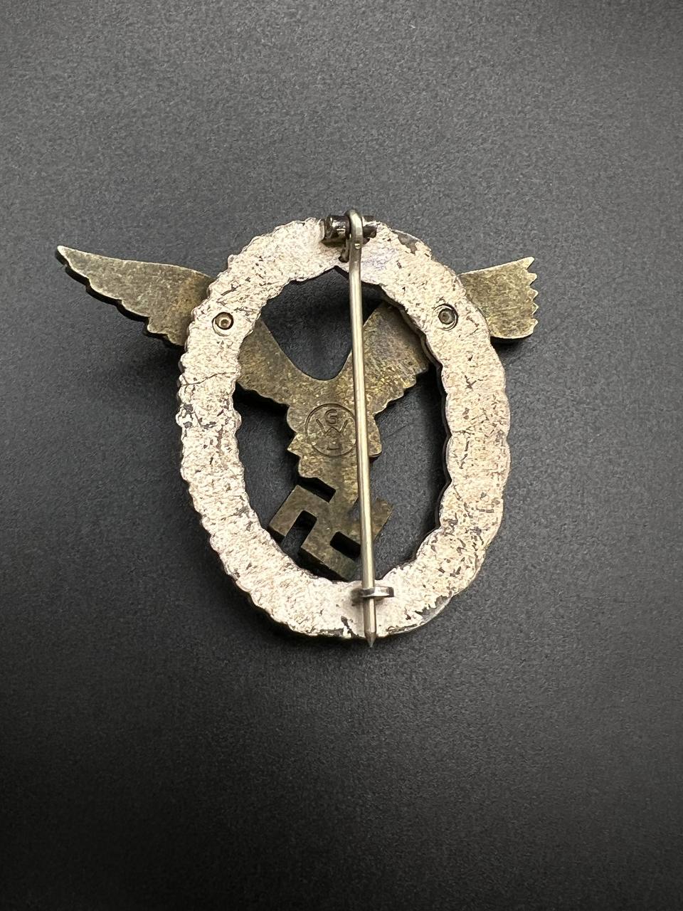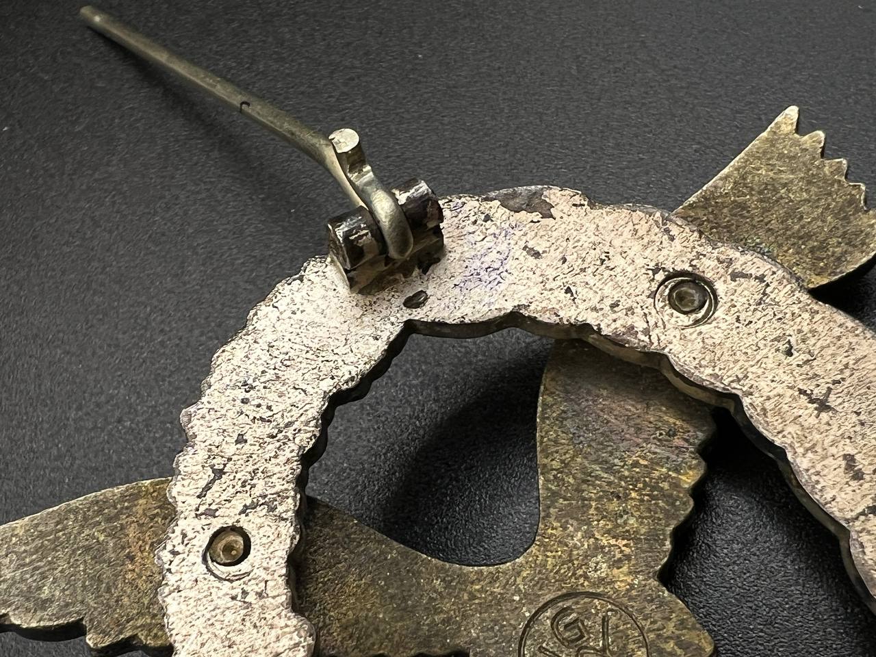Non-ferrous metal construction, the eagle toned, the wreath silver-plated, reverse marked “GWL”. Lightly worn.