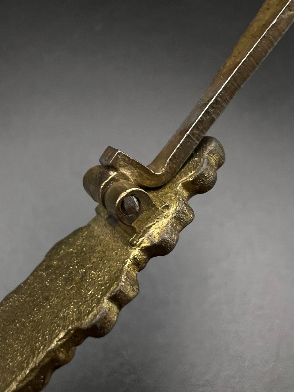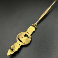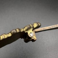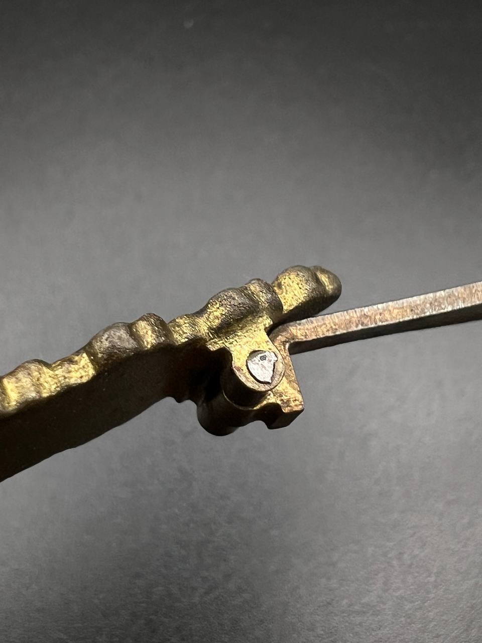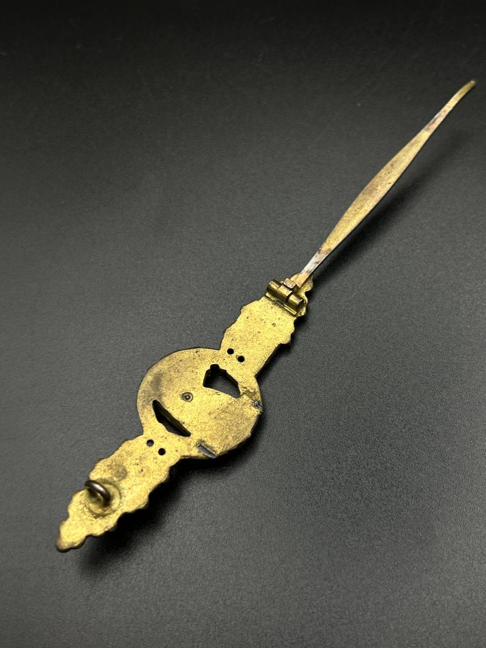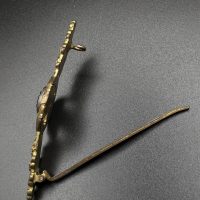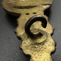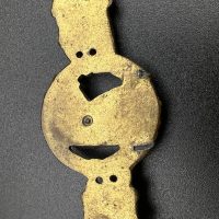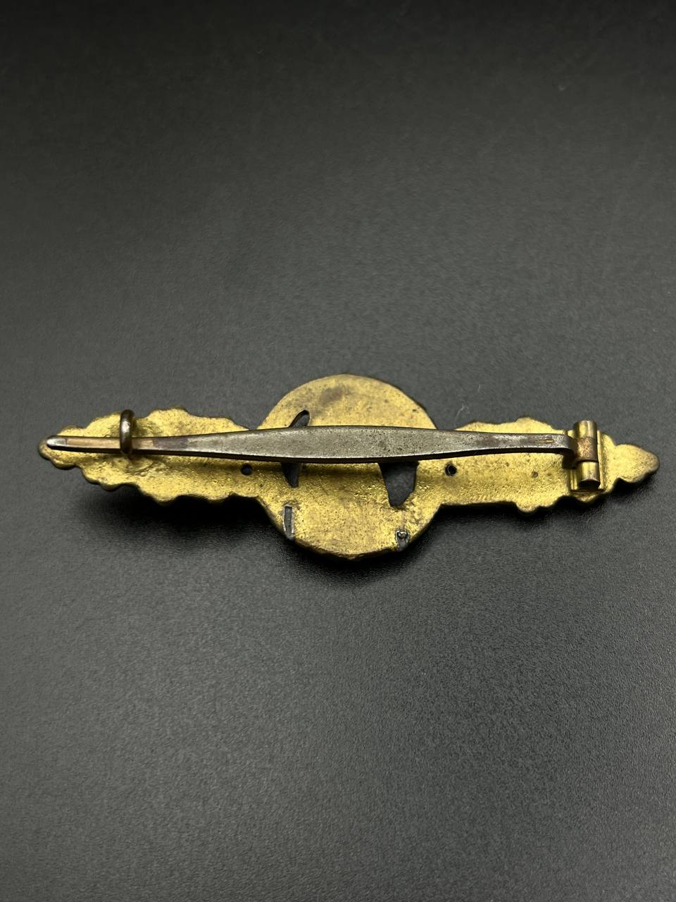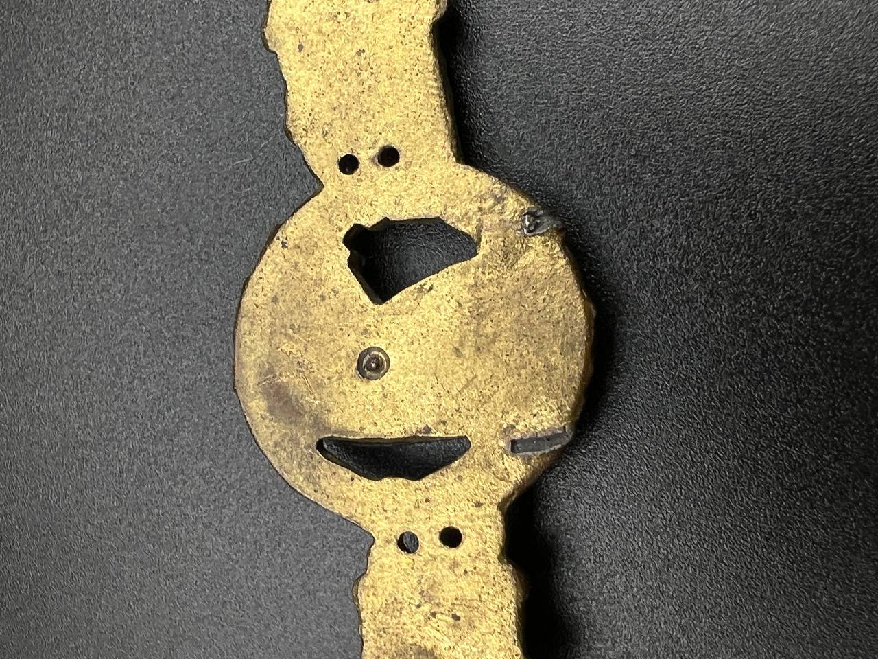 Zinc gilt, iron gilt pin, the originally attached loops for the pendant have been removed.