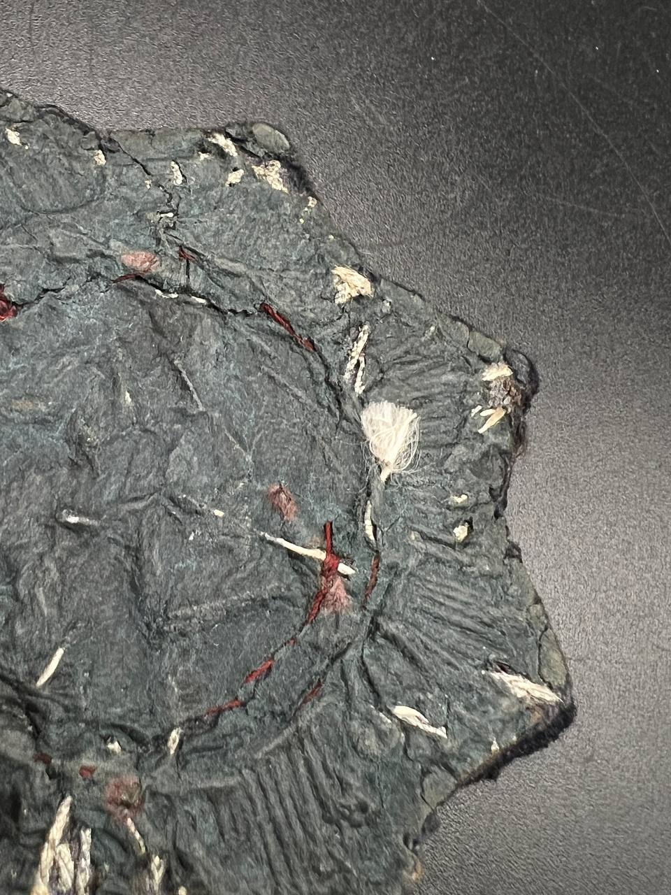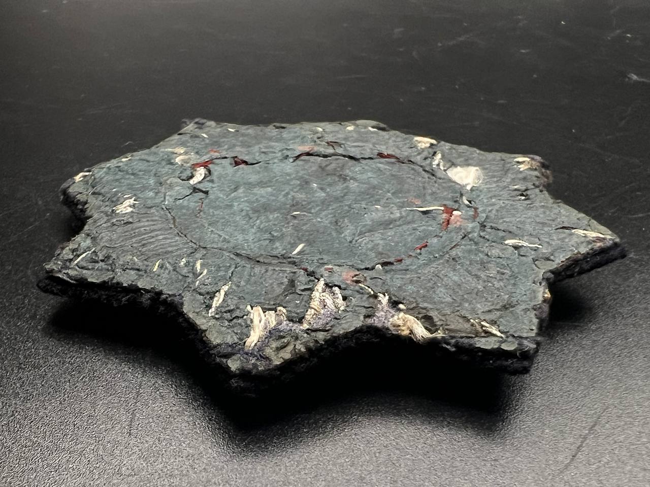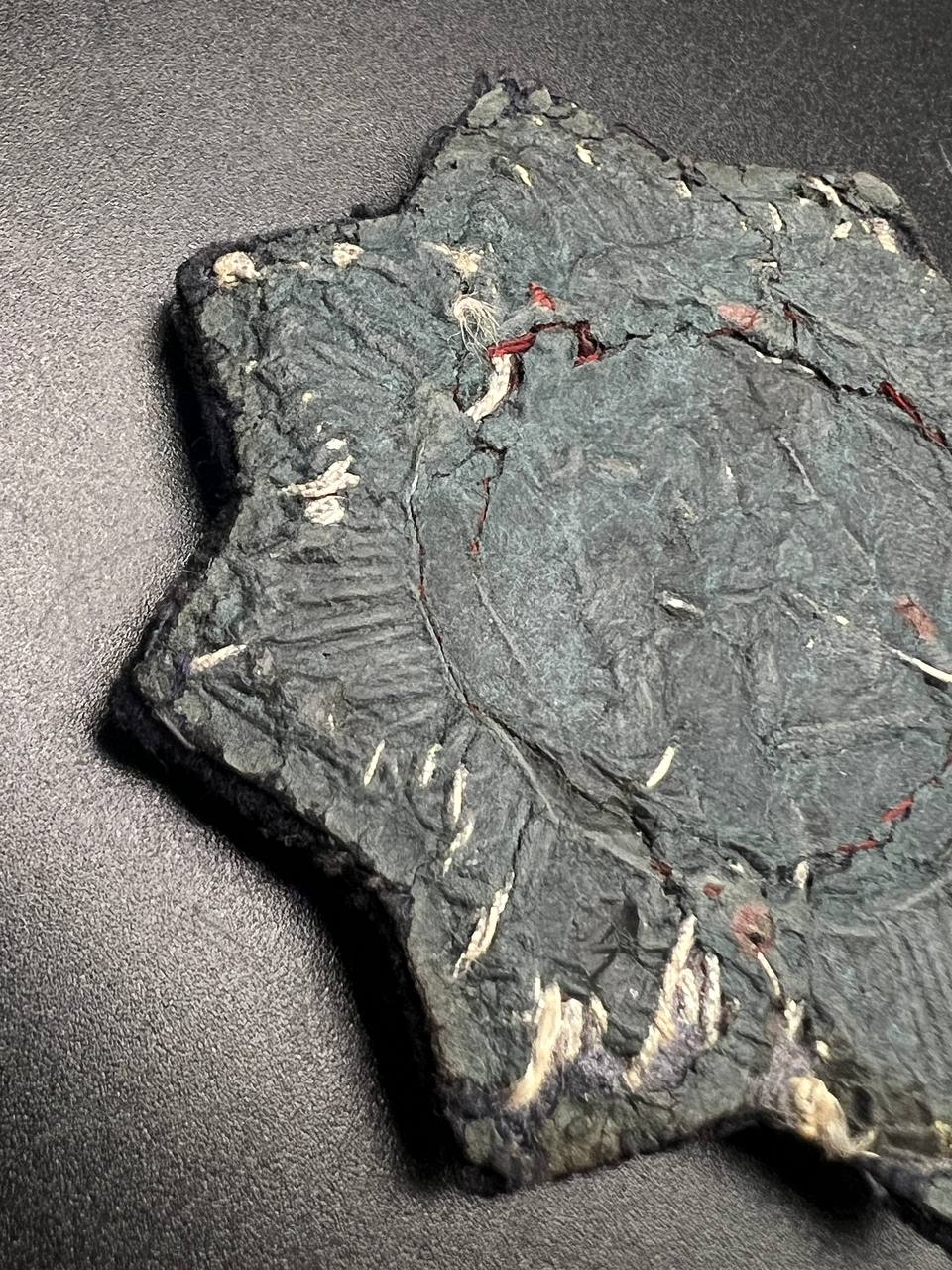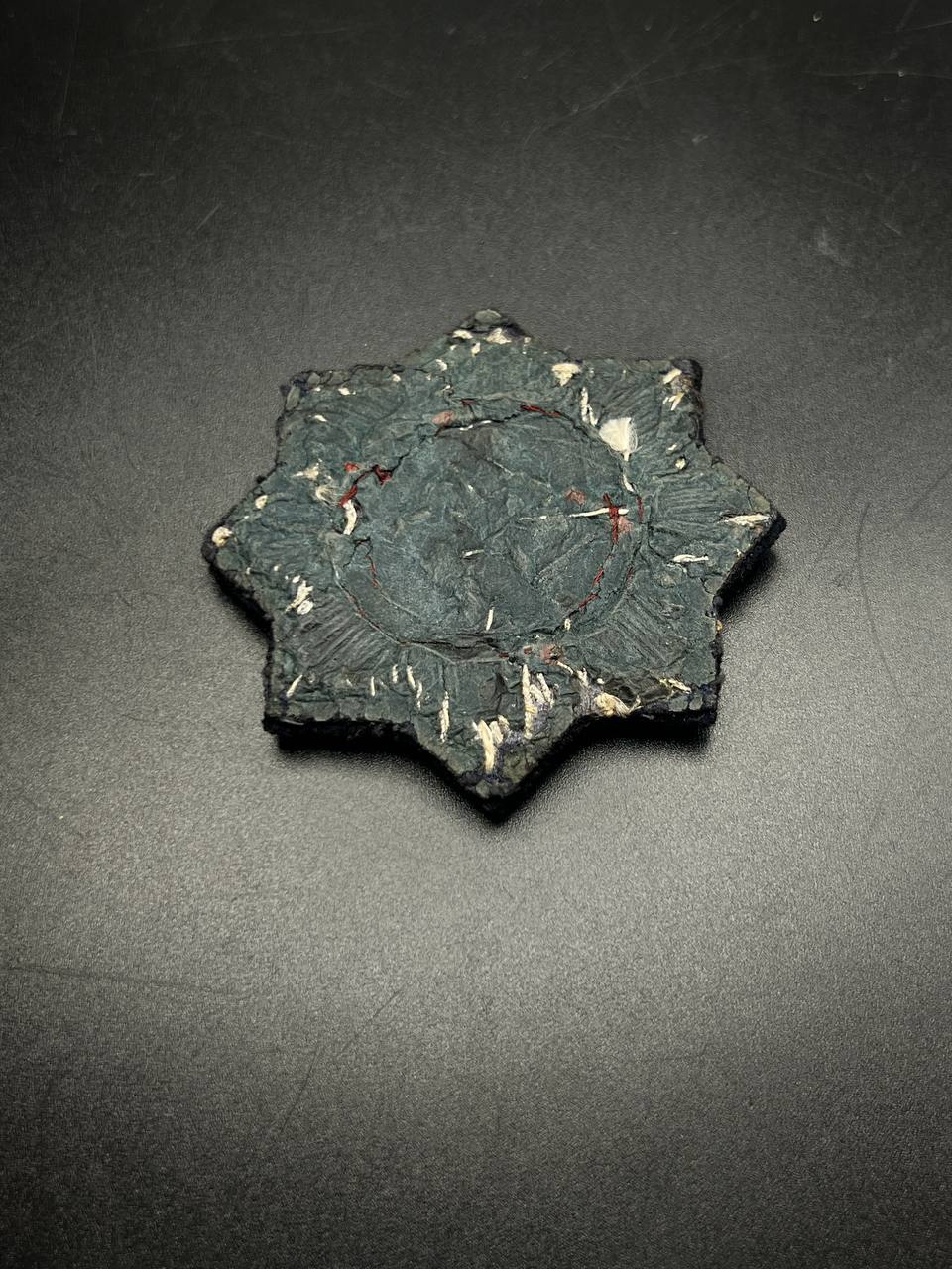 Original embroidered (cloth) version of the German Cross for the Kriegsmarine, intended for wear on field and service uniforms. Produced as an eight-pointed star with silver-embroidered rays on a black backing. The center shows a cloth swastika on a light field, surrounded by a wreath with red piping. The reverse is cloth-backed and displays typical period wear and stitch traces. An authentic wartime insignia with honest service wear and natural patina, unrestored.