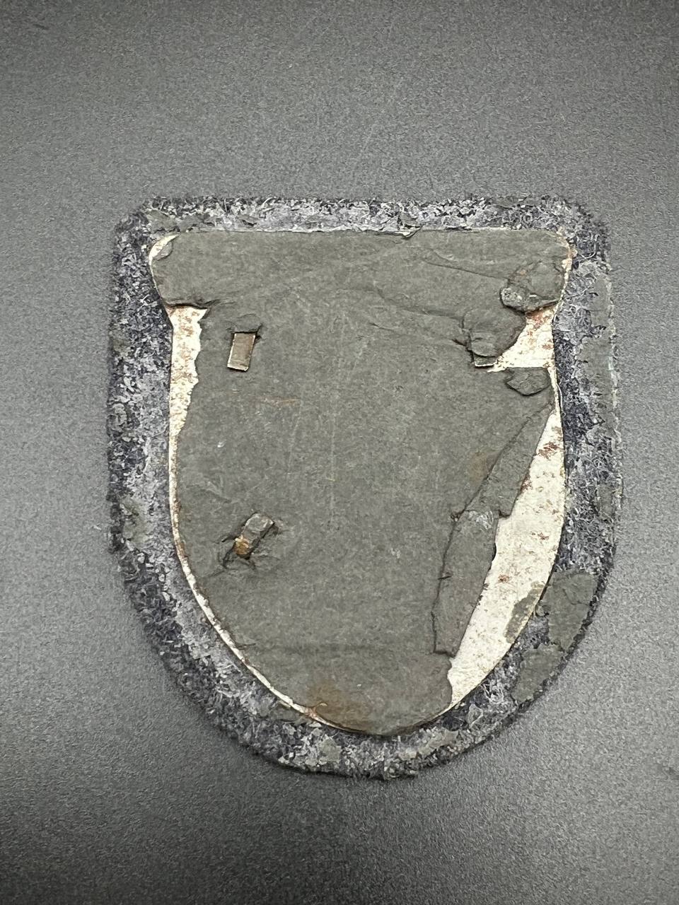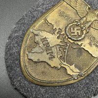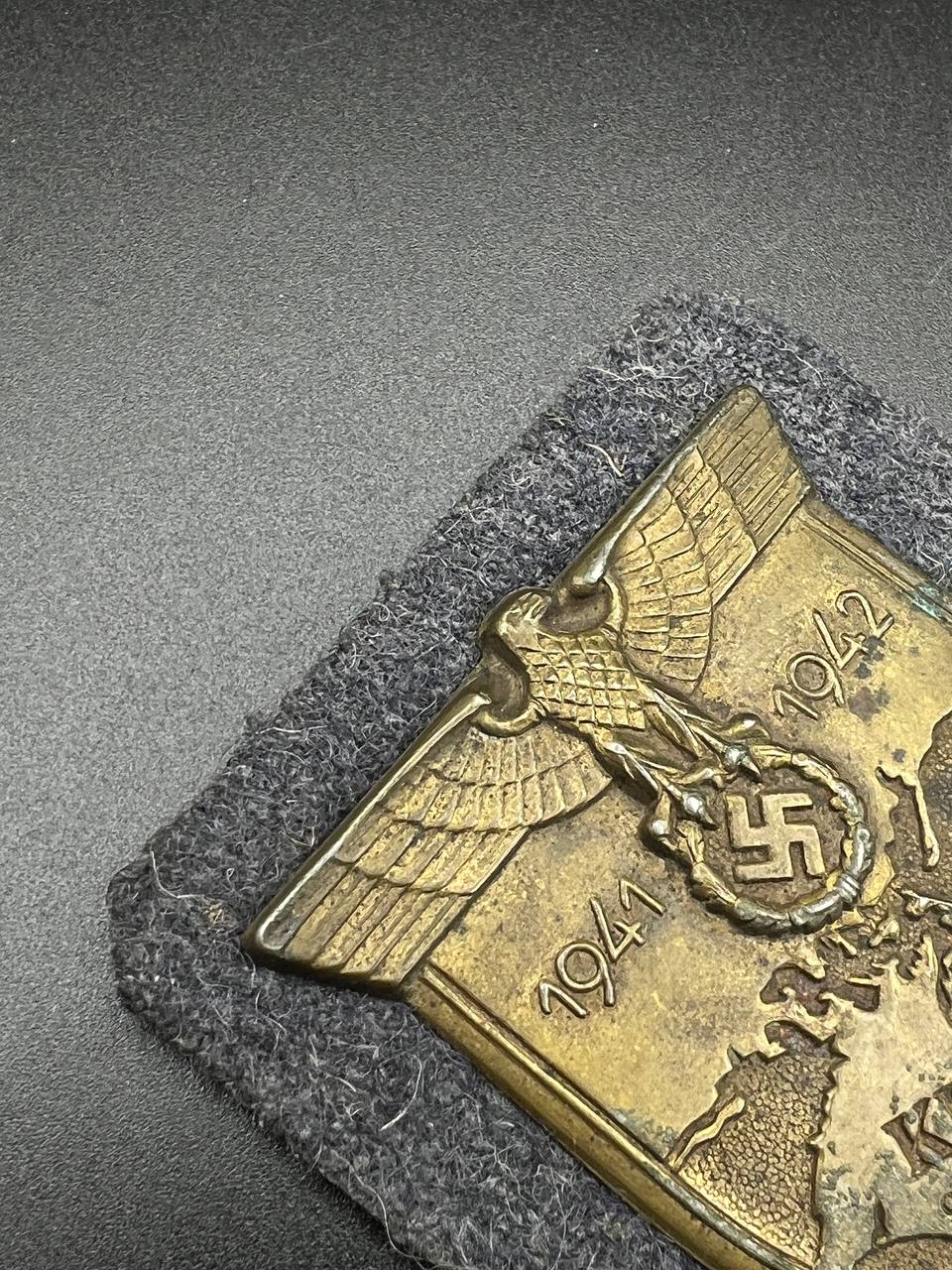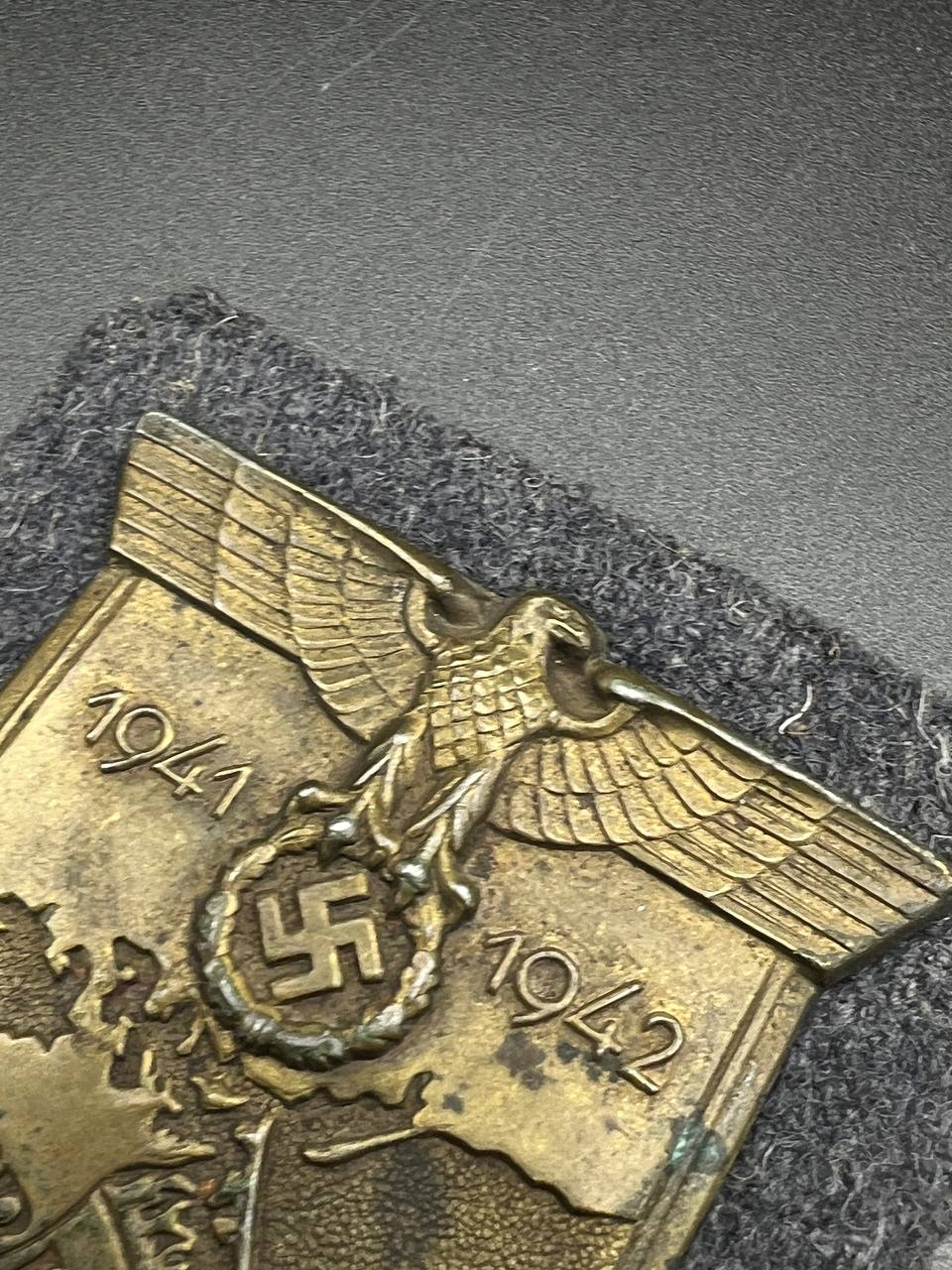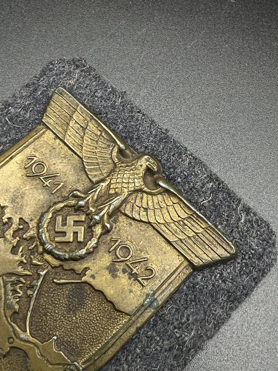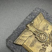 Bronzed iron, on Luftwaffe blue cloth backing, backplate and paper cover.