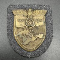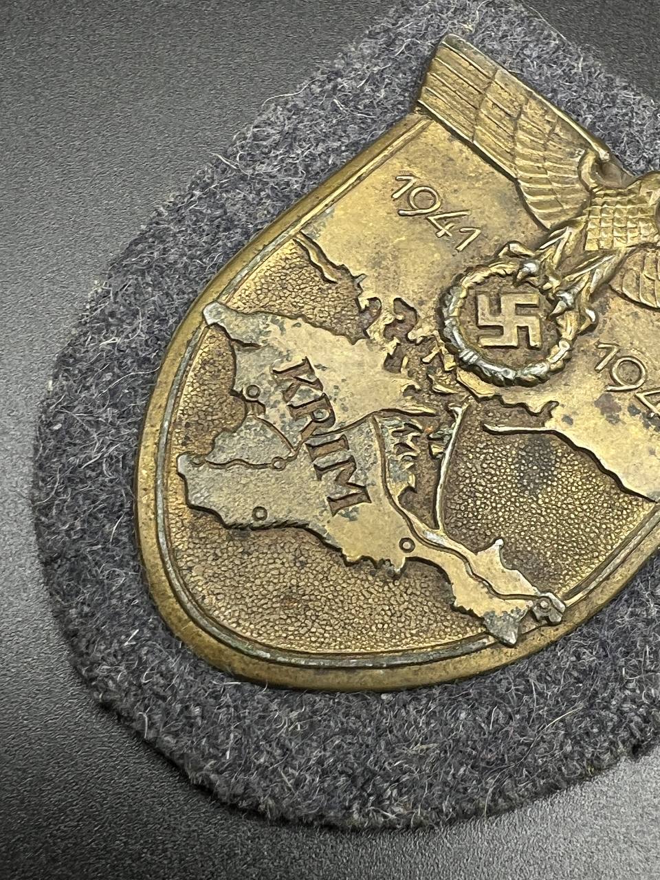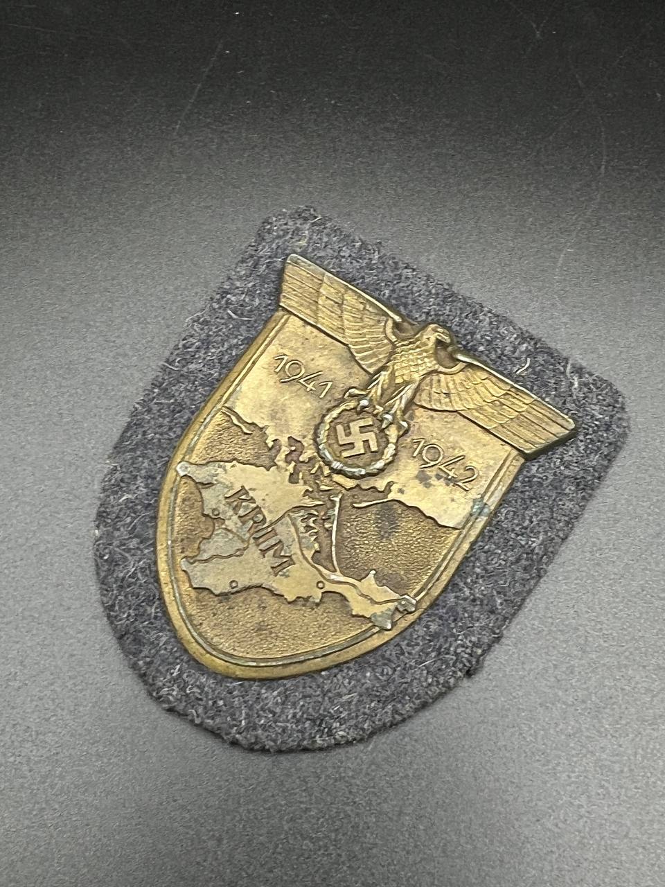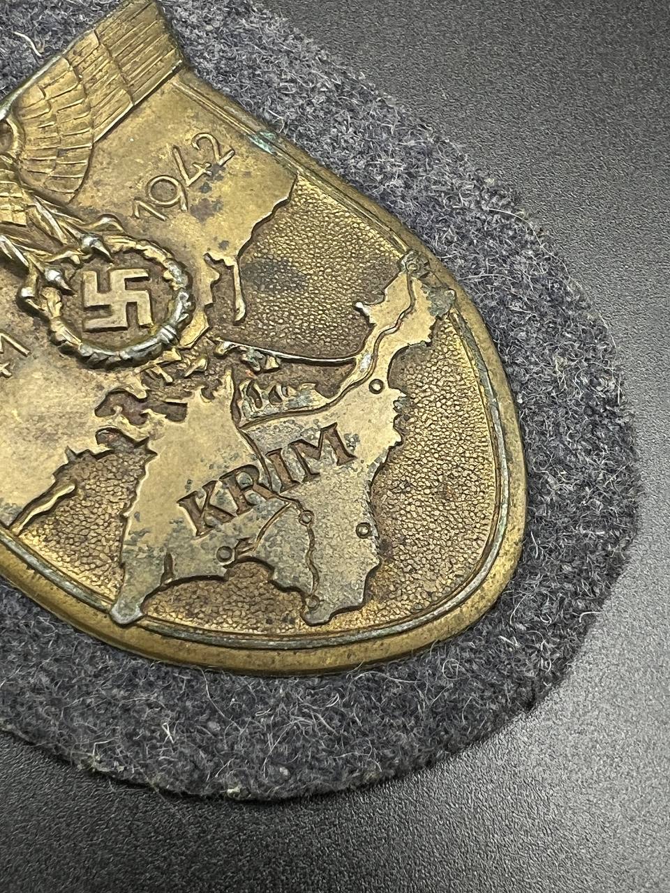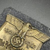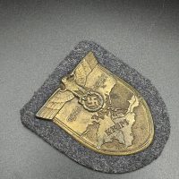 Bronzed iron, on Luftwaffe blue cloth backing, backplate and paper cover.
