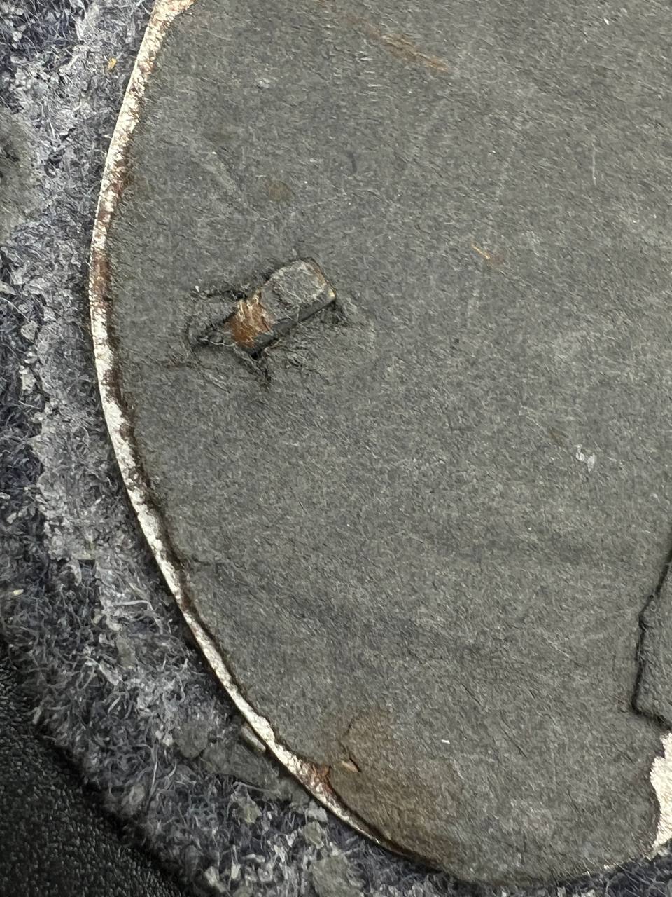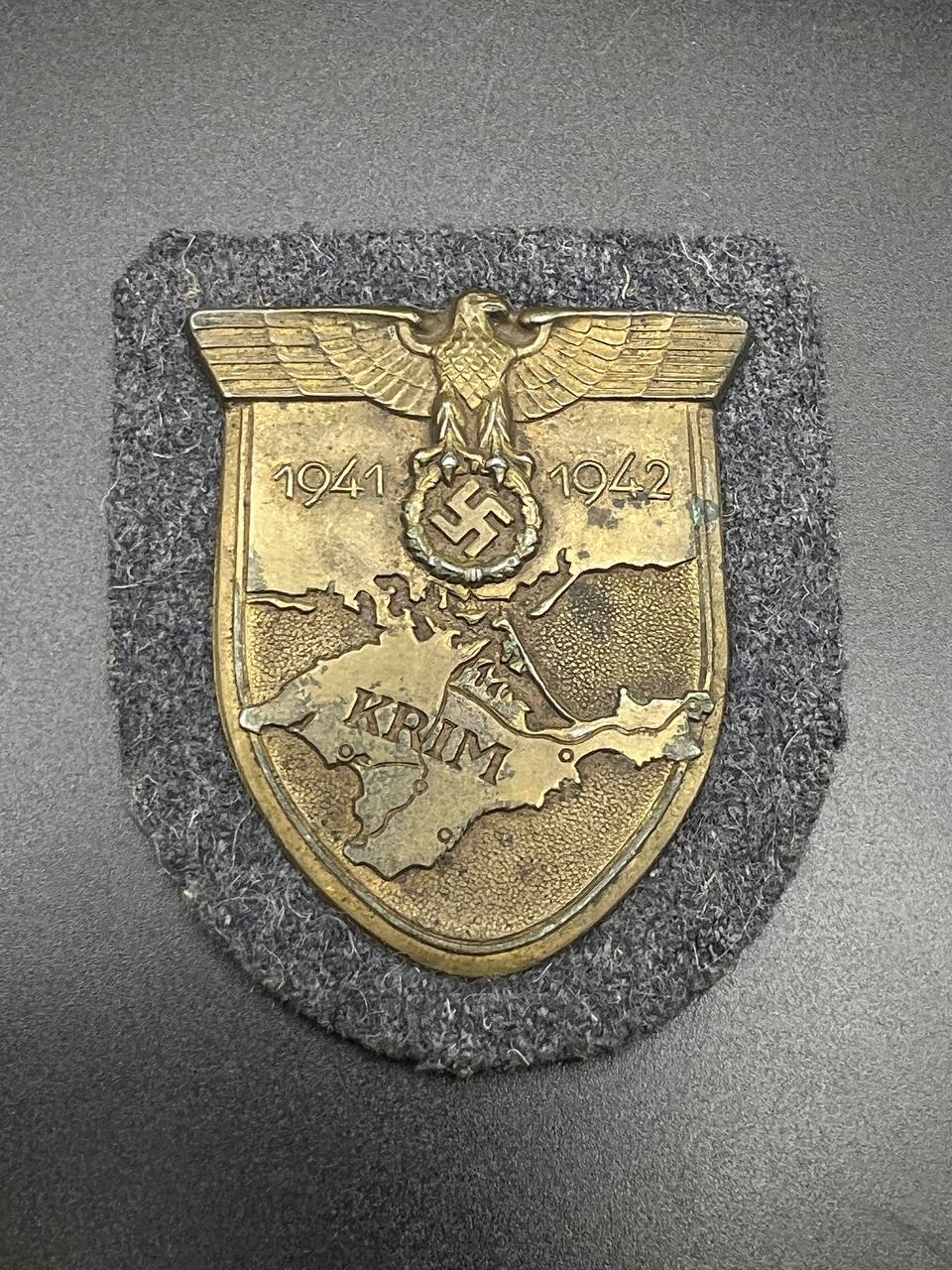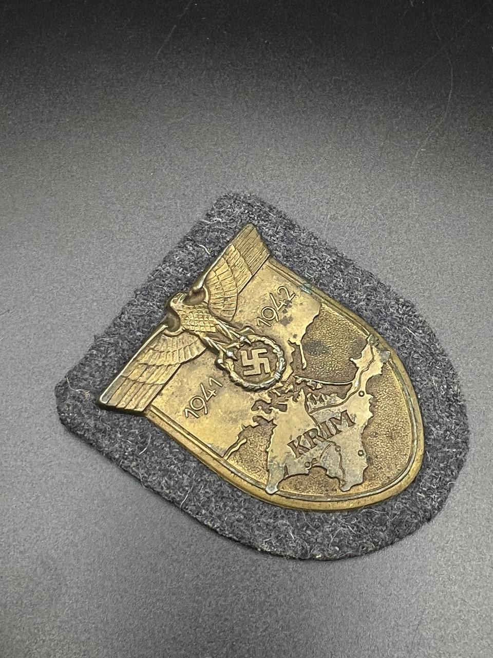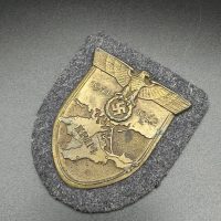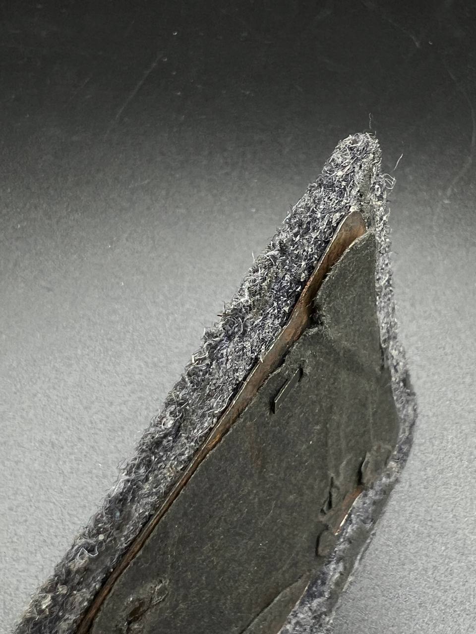 Bronzed iron, on Luftwaffe blue cloth backing, backplate and paper cover.