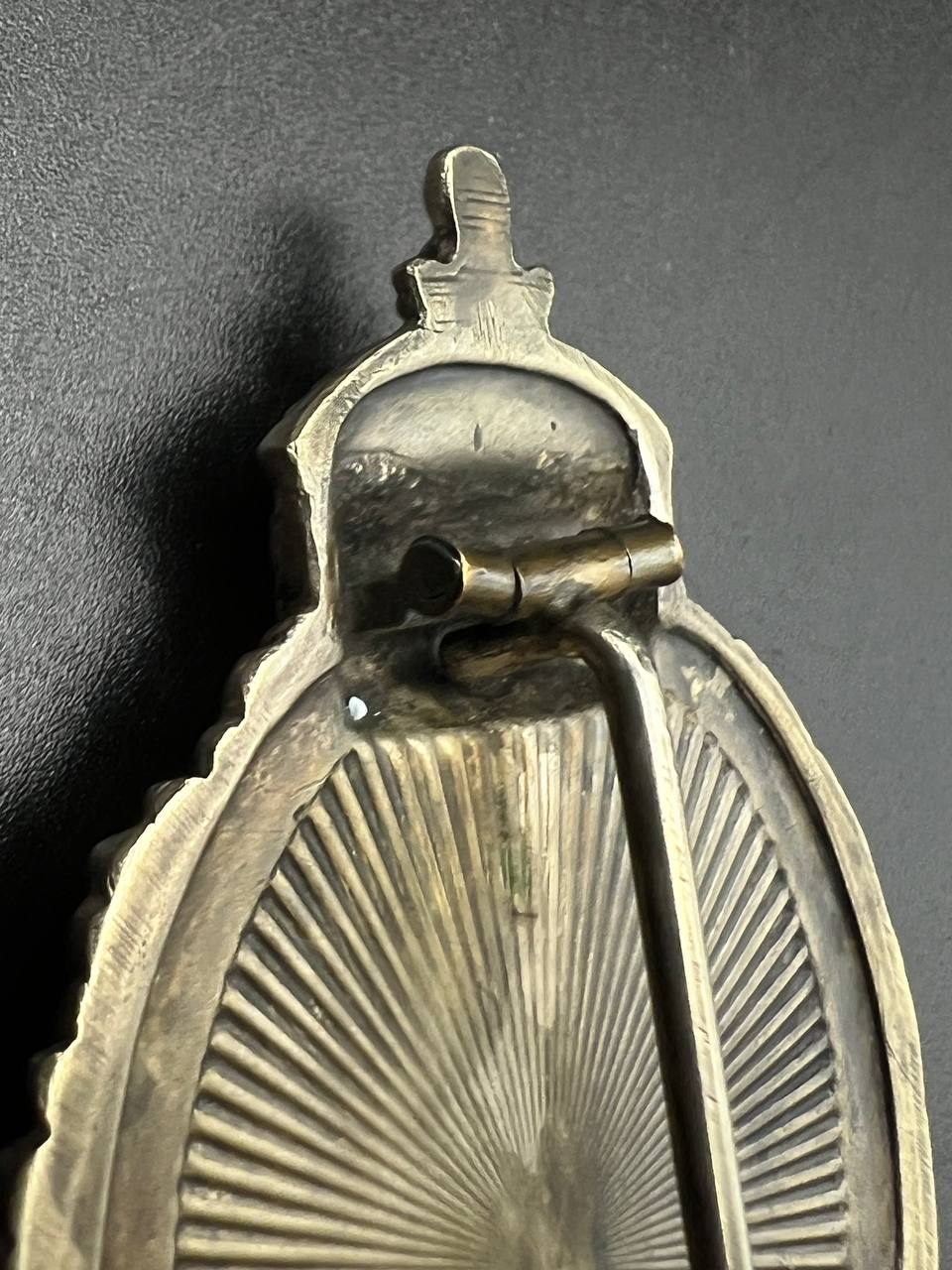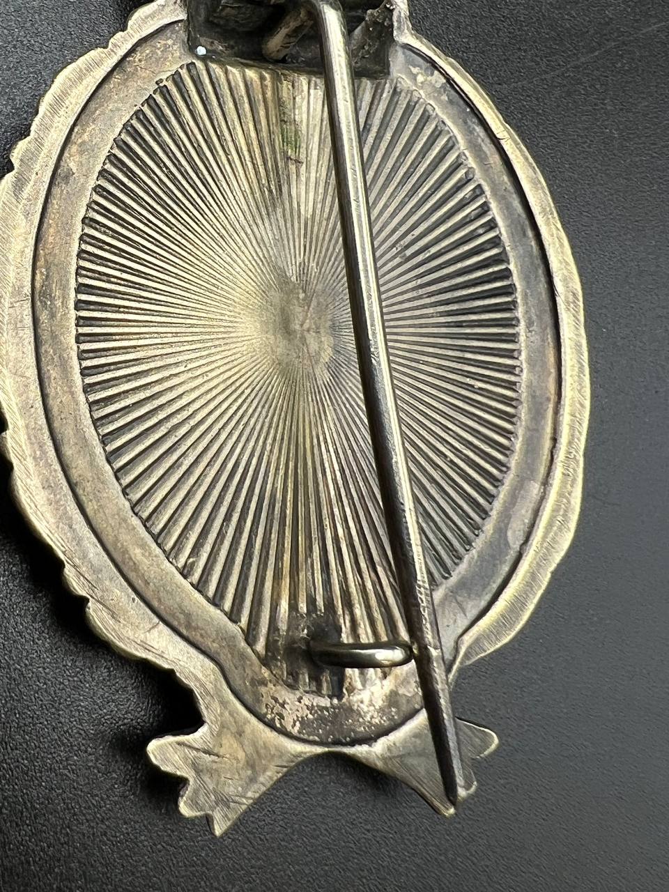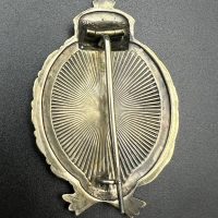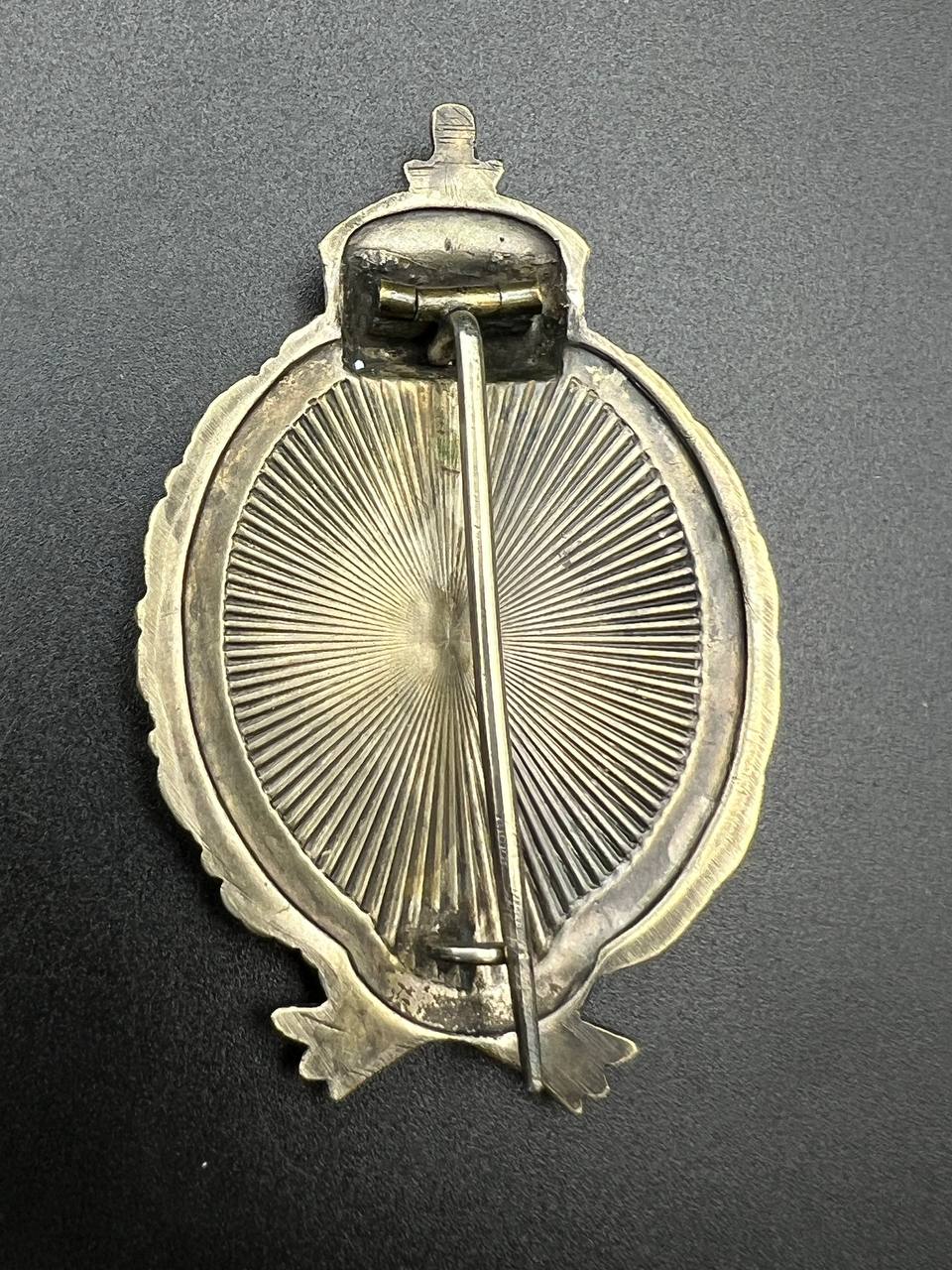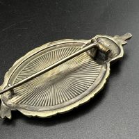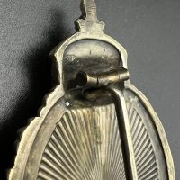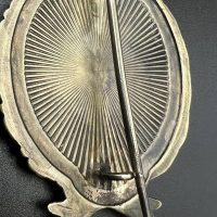 Very fine example manufactured by C.E. Juncker Berlin. Silver-plated base metal, hollow-embossed, reverse with sunburst plate. Without maker mark.