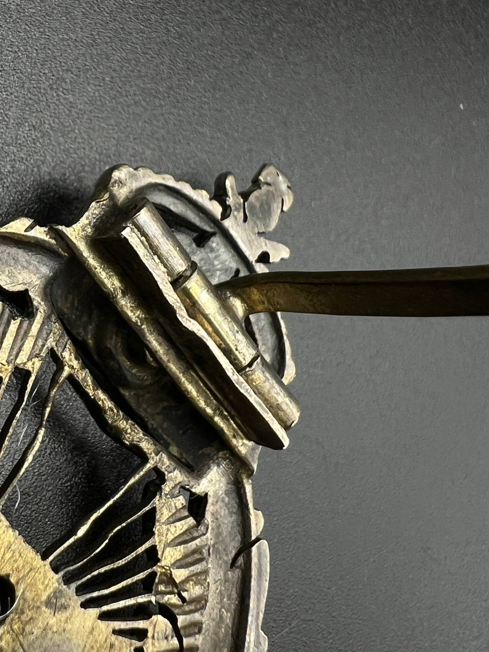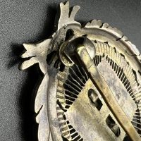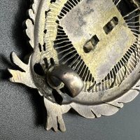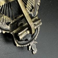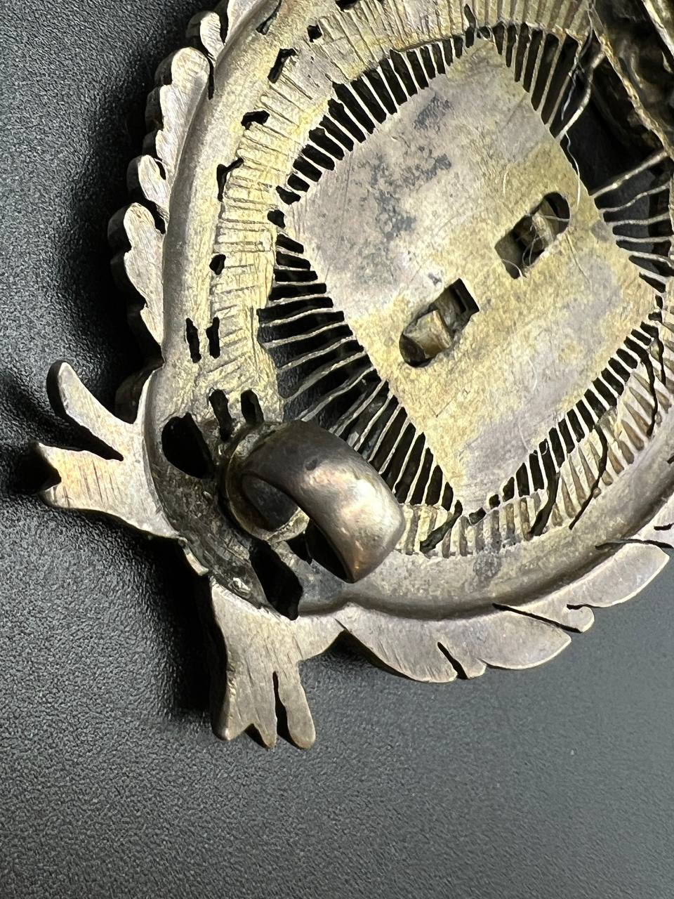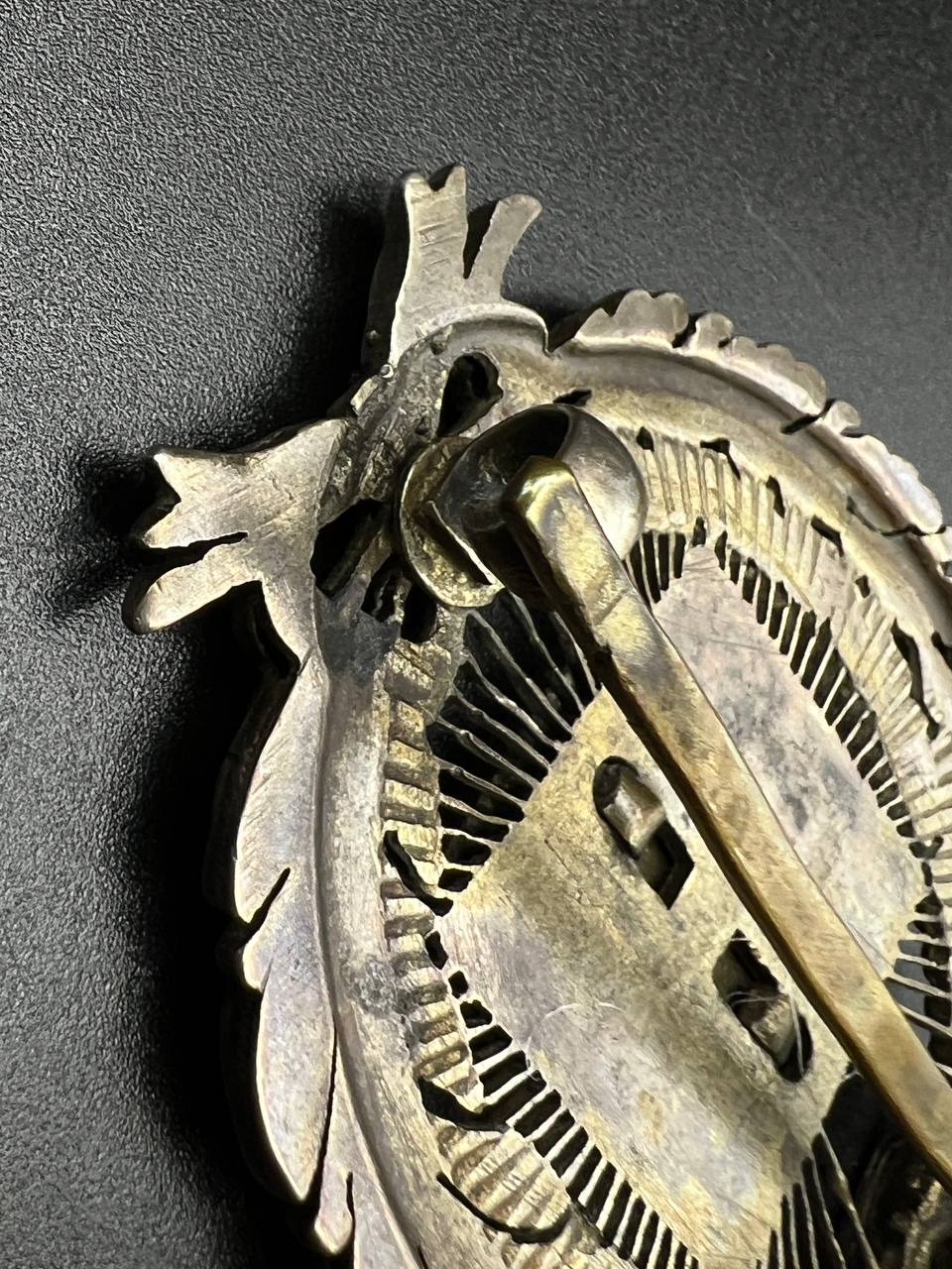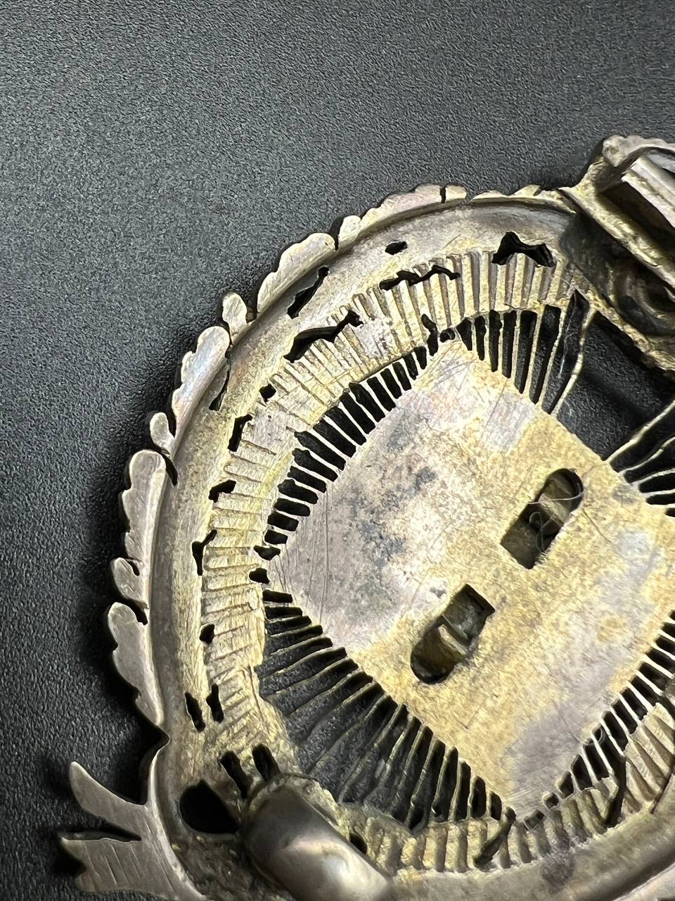 This is an extravagant special manufacture by the firm “C.E. Juncker Berlin”. Silver, hollow embossed, on reverse with ray plate, without maker’s mark. The badge was completely hand-sawed and openwork after completion: the crown, the surrounding laurel/oak leaf wreath with bow, as well as the ray plate behind the enameled field! Worn piece, on reverse with wide pin. In good condition, with very attractive patina.