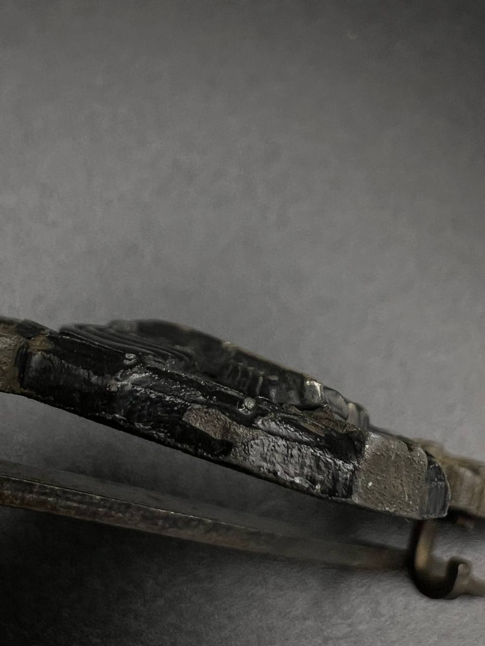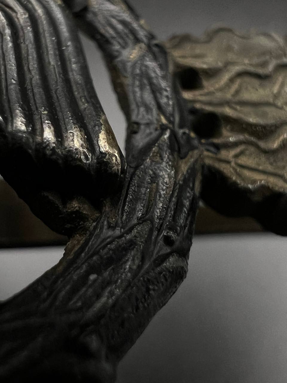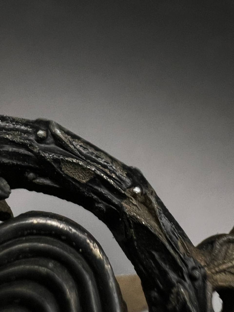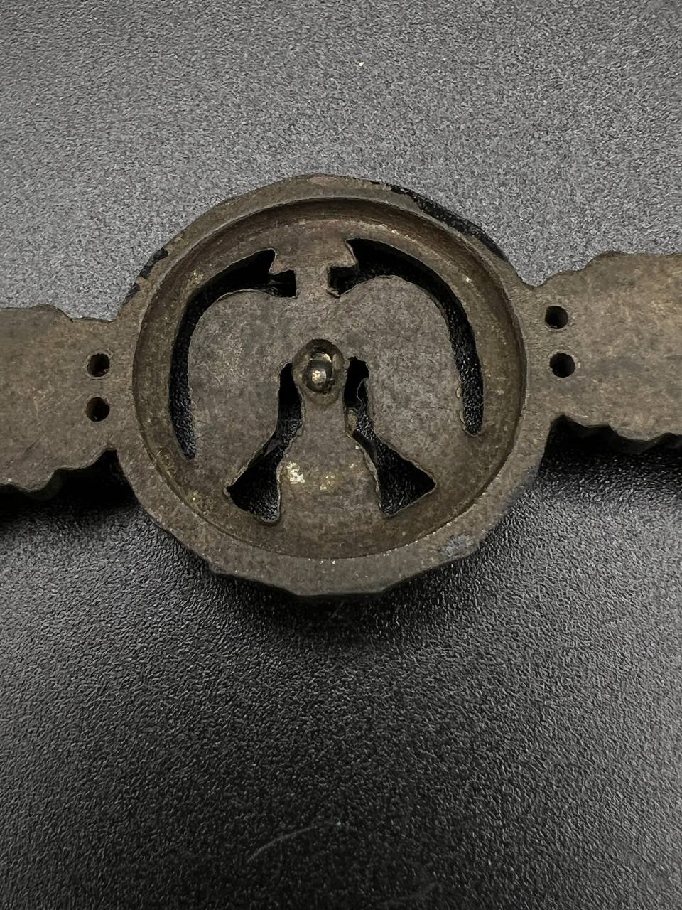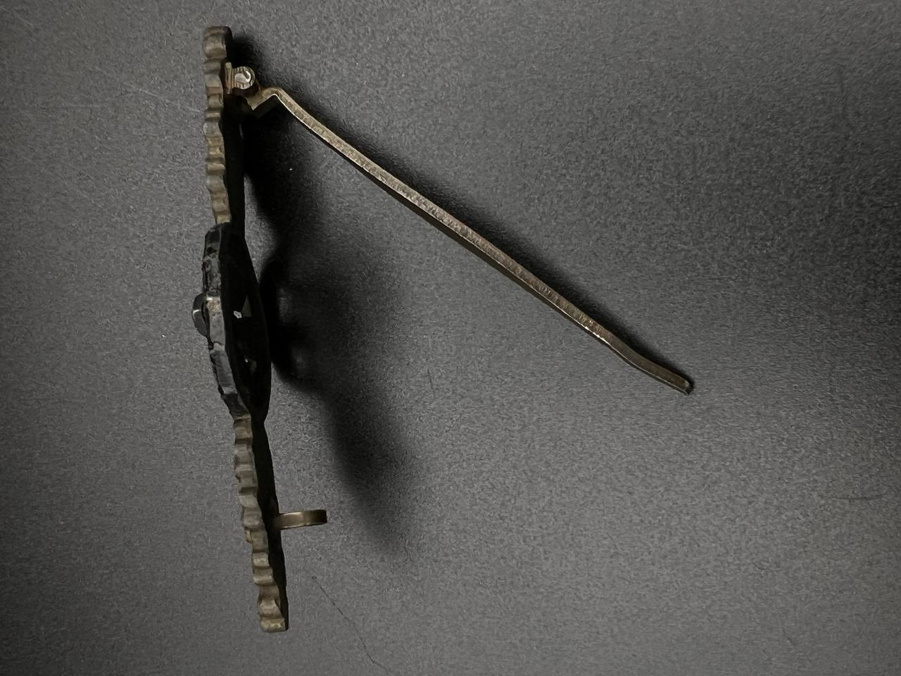 Fine zinc bronzed, the wreath blackened, needle and hook iron bronzed.
