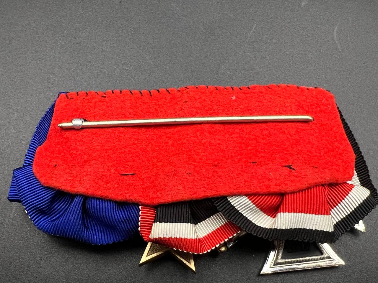 The bar is hand-assembled on red backing with a long, full-length pin typical for post-war construction. Excellent condition with minimal wear.
