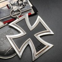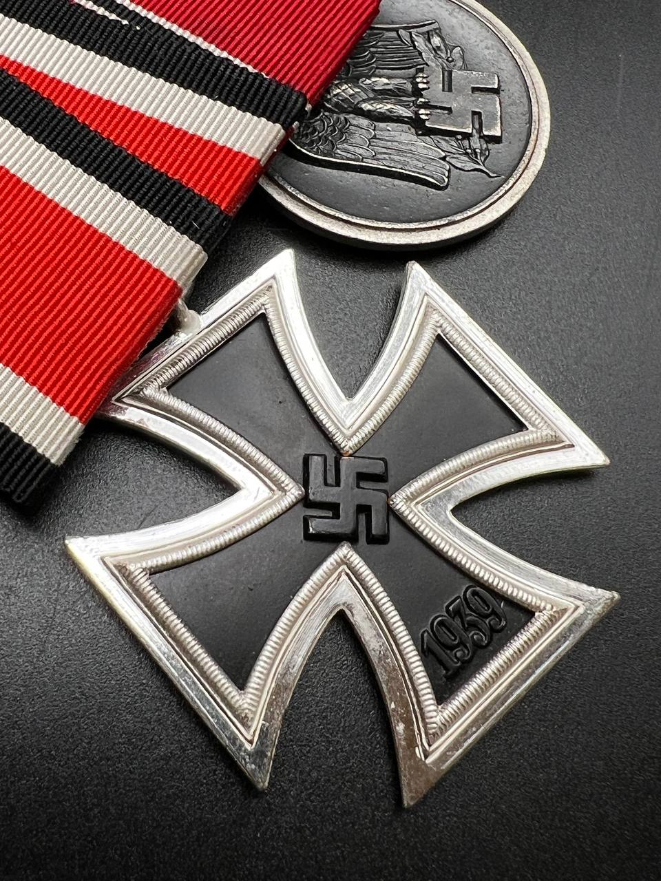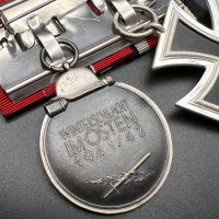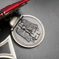 The suspension ring of the Iron Cross is marked “100”, identifying the maker as Rudolf Wächter, München. The ring of the Eastern Front Medal bears the mark “88”, corresponding to Gustav Brehmer, Markneukirchen.