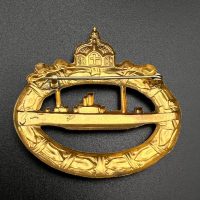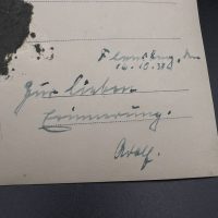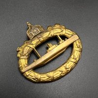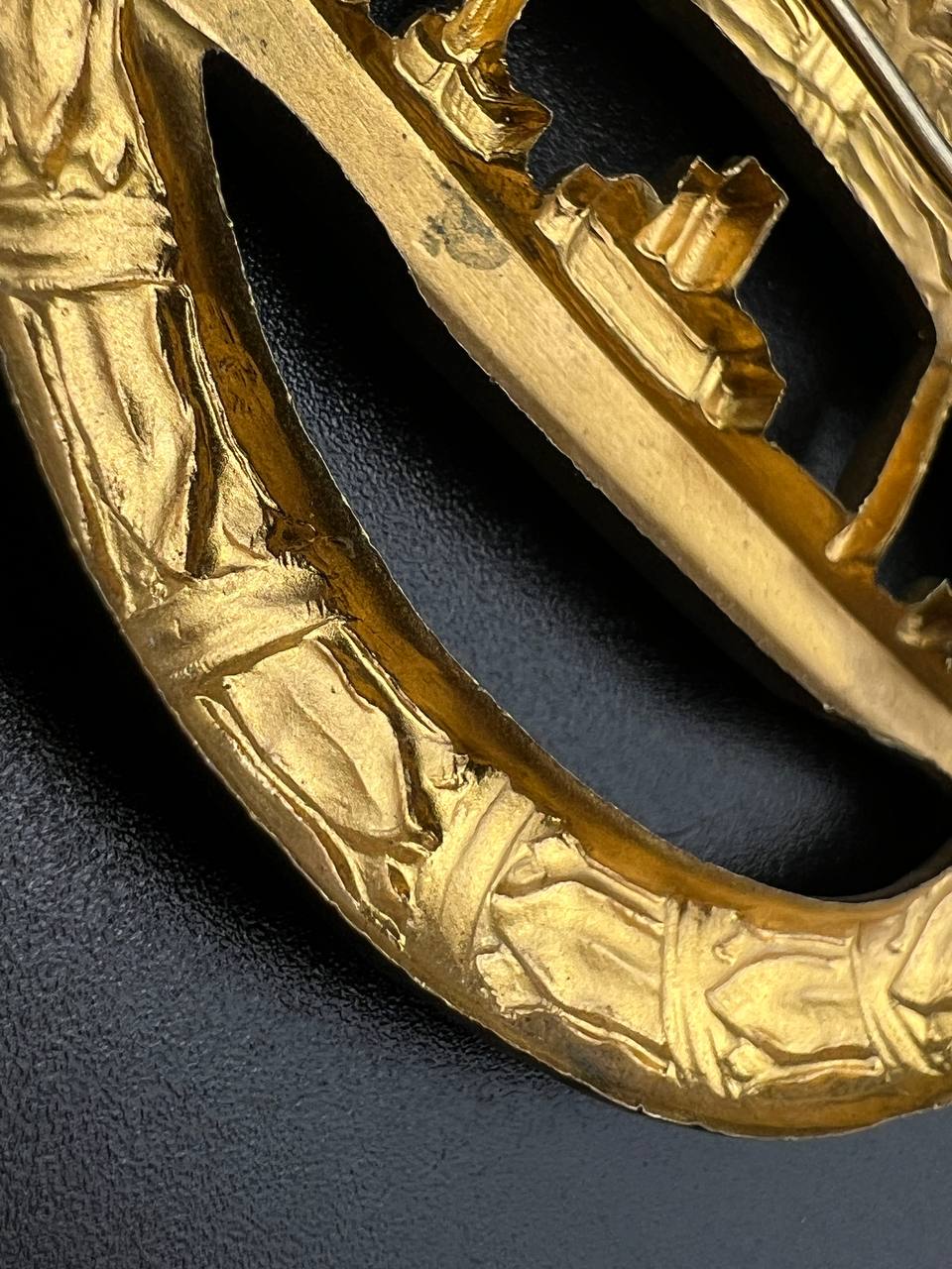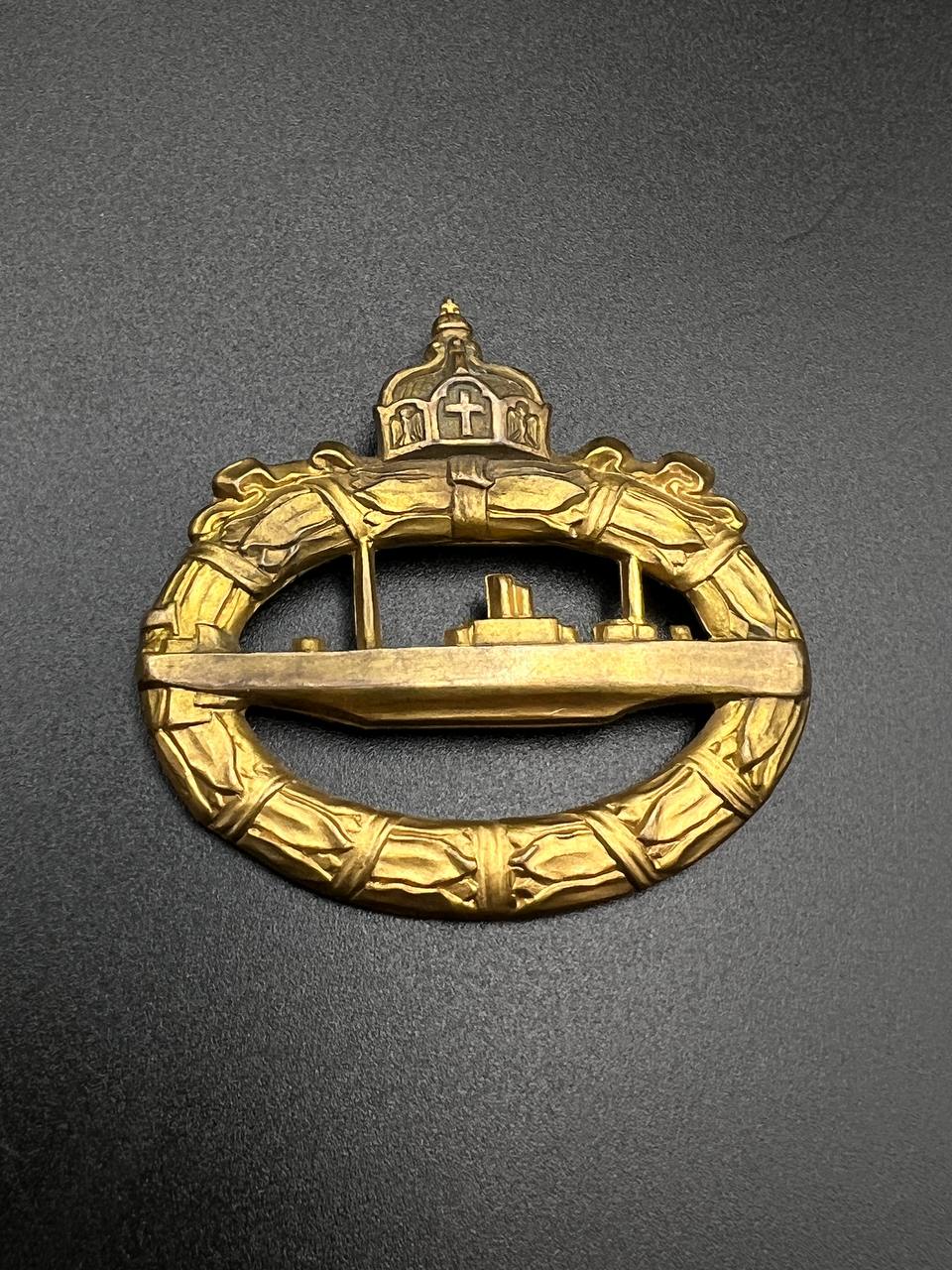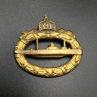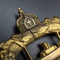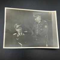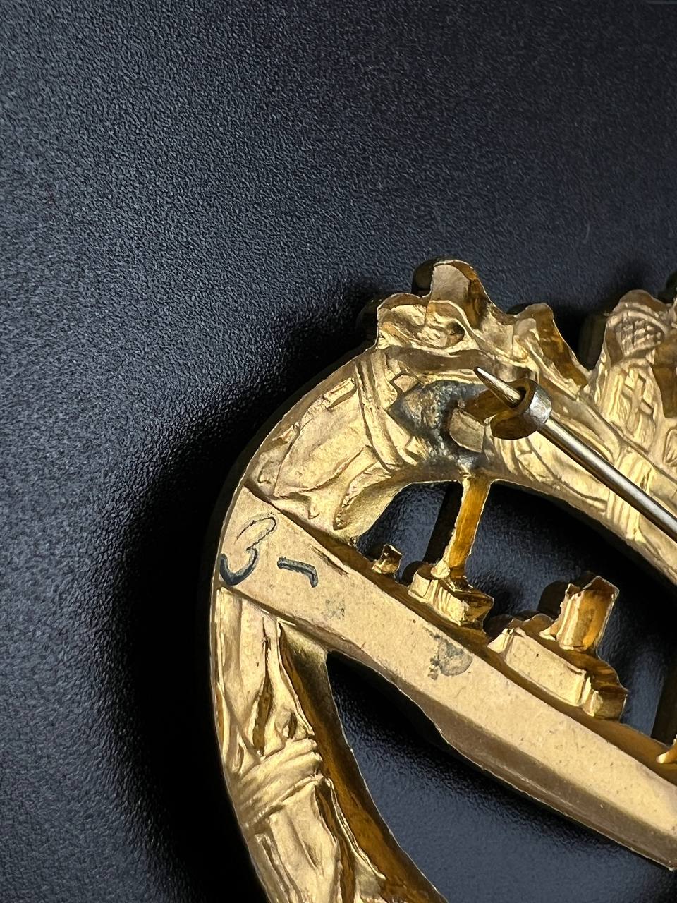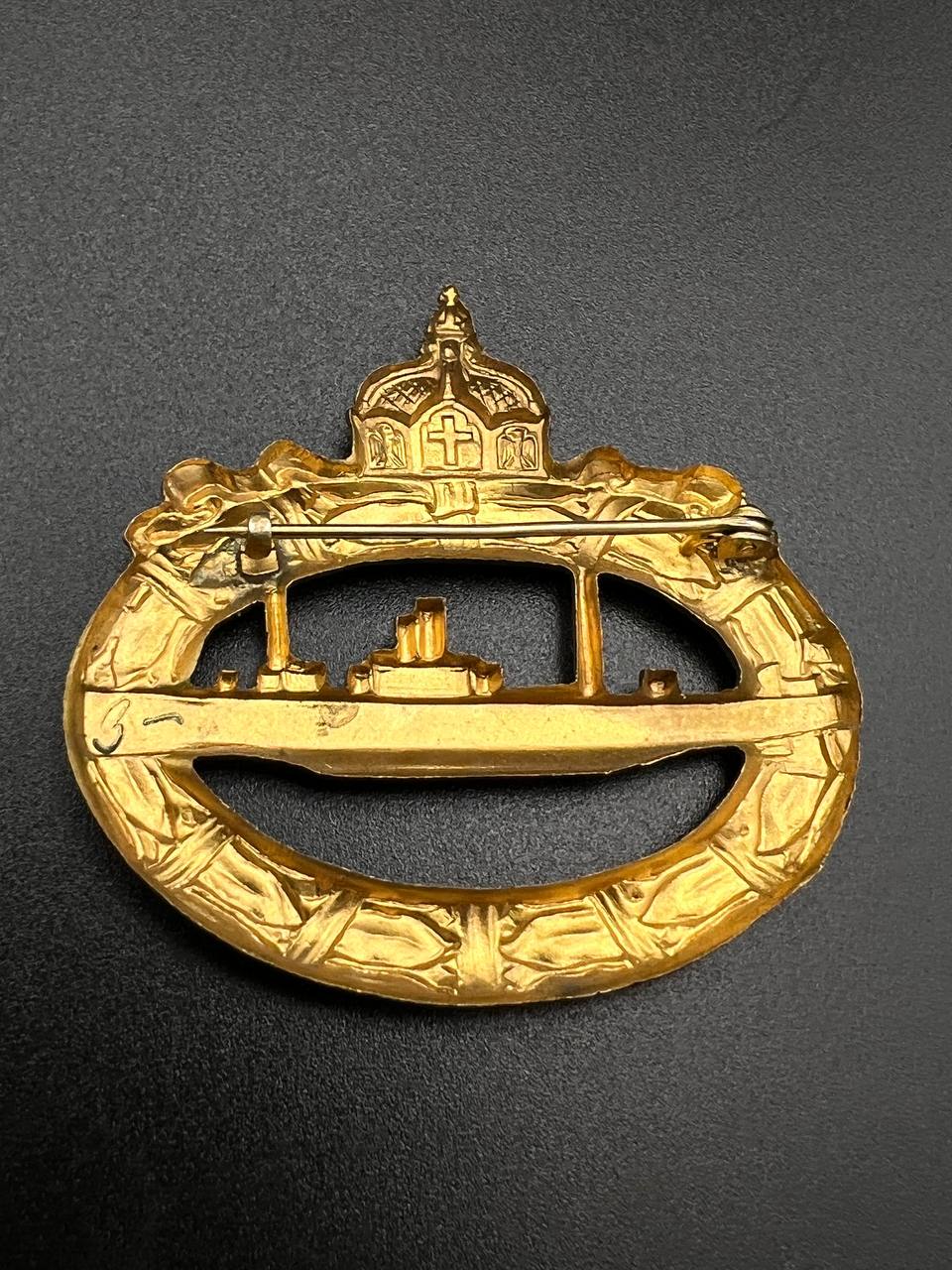 hollow embossed and gold-plated, thin horizontal pin on reverse, privately purchased piece from the 1920s. Accompanied by 2 photographs of a police officer in the rank of Major. Notation on reverse: “Flensburg 16.10.38 zur lieben Erinnerung, Adolf”