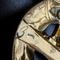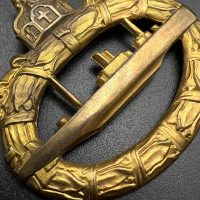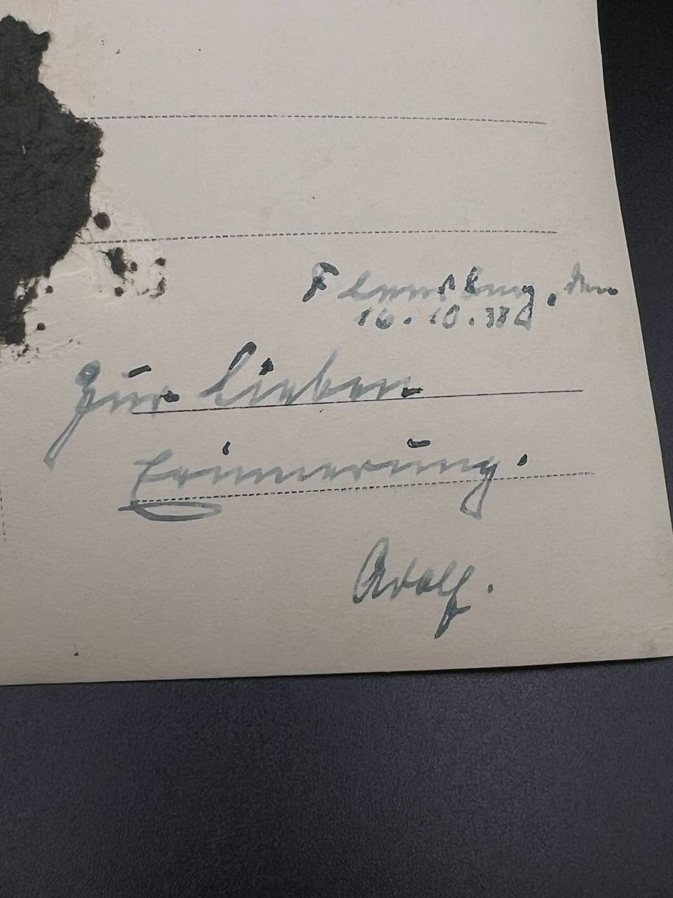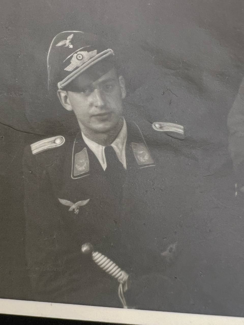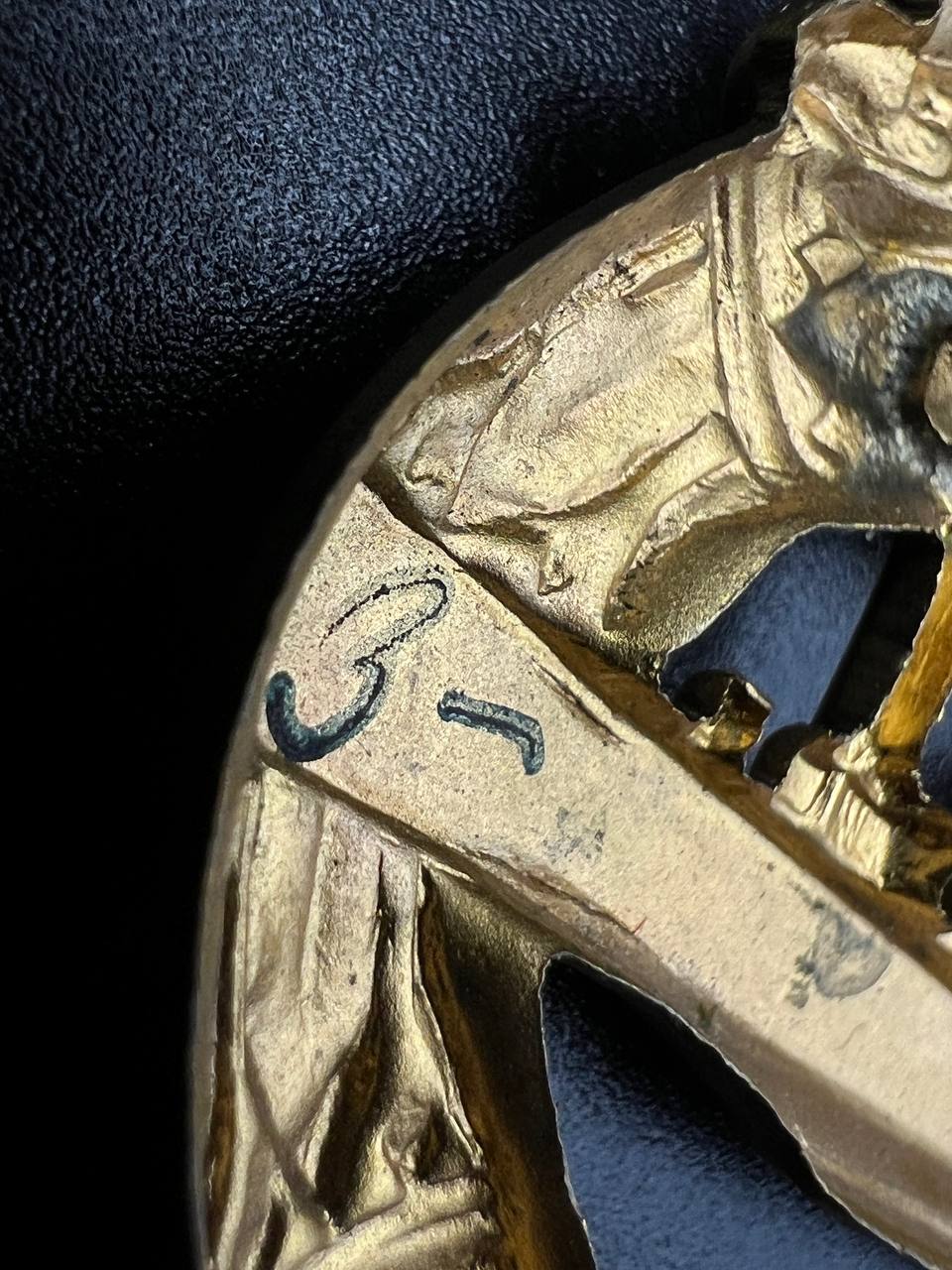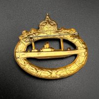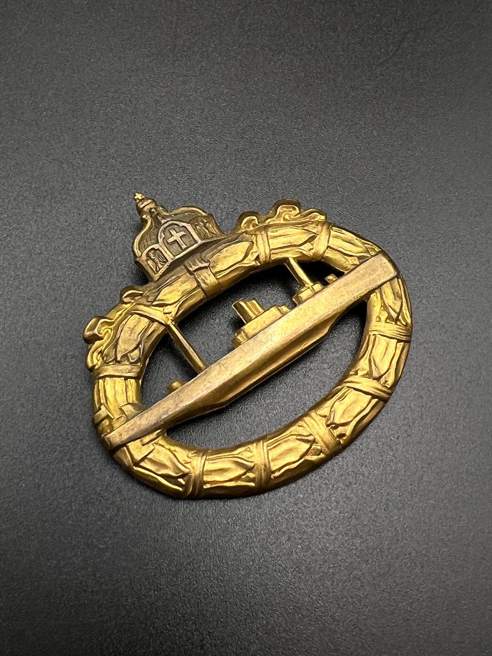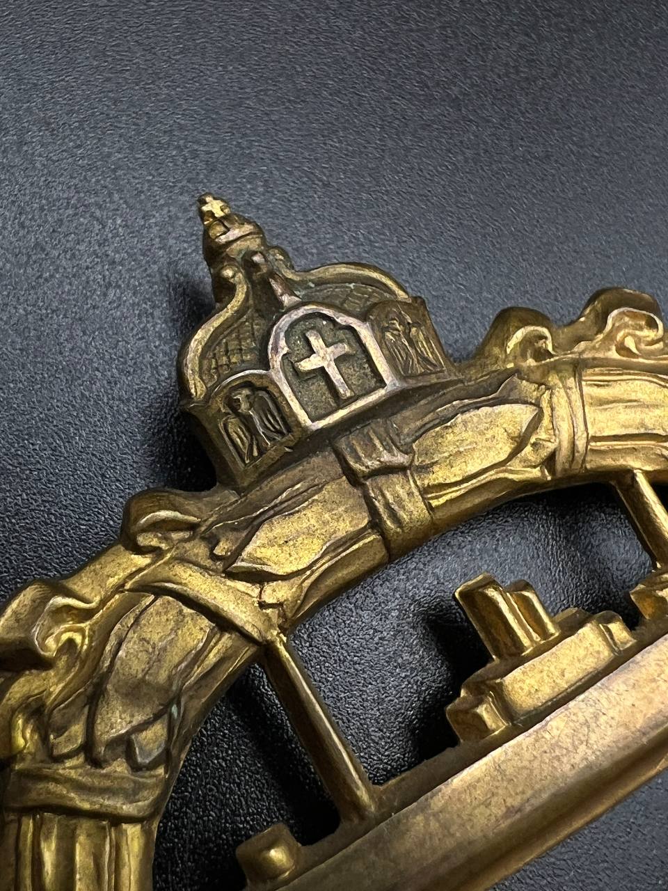 hollow embossed and gold-plated, thin horizontal pin on reverse, privately purchased piece from the 1920s. Accompanied by 2 photographs of a police officer in the rank of Major. Notation on reverse: “Flensburg 16.10.38 zur lieben Erinnerung, Adolf”