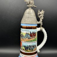 An expressive and richly detailed early 1900s Bavarian stein — combining fine craftsmanship, color, and symbolism of artillery pride.