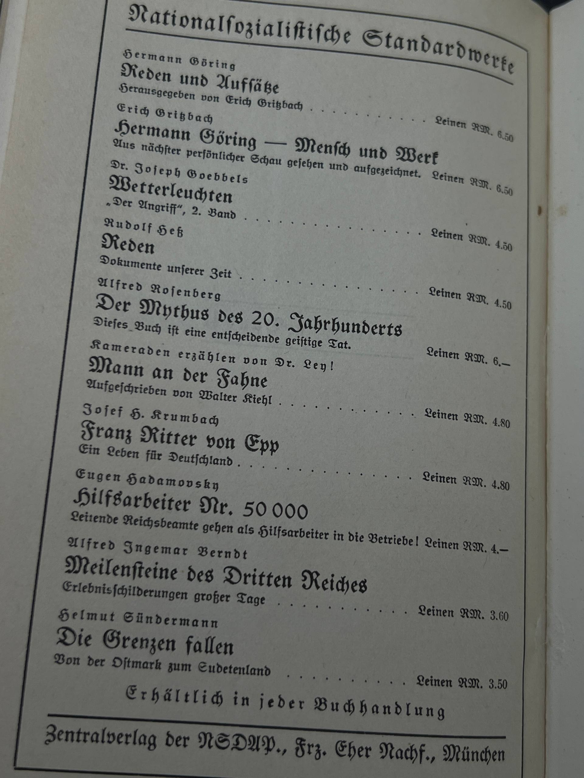 Original 1939 edition. Softcover binding. German language. Third Reich era publication.