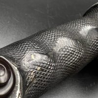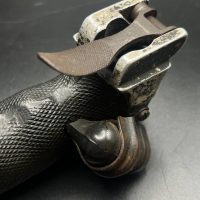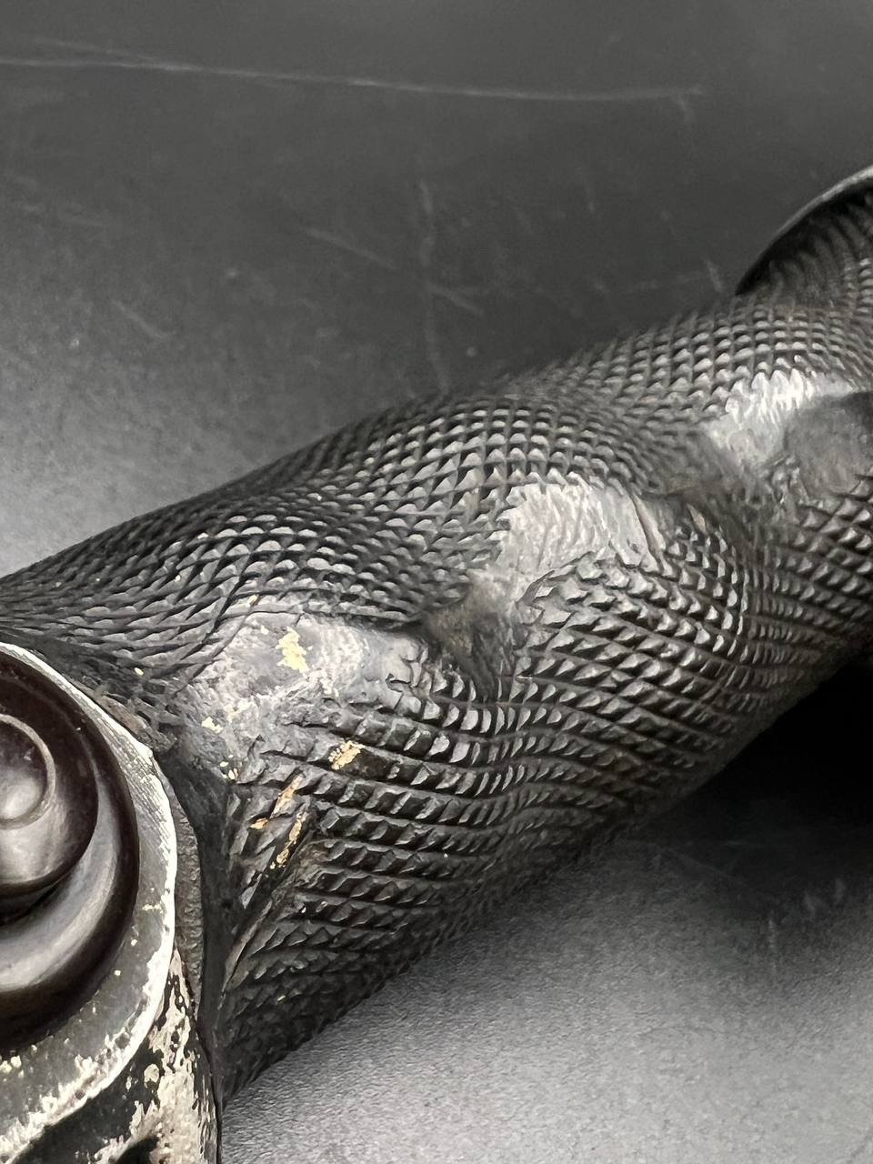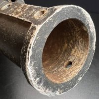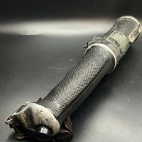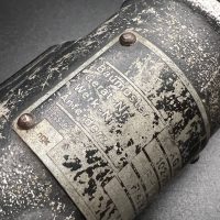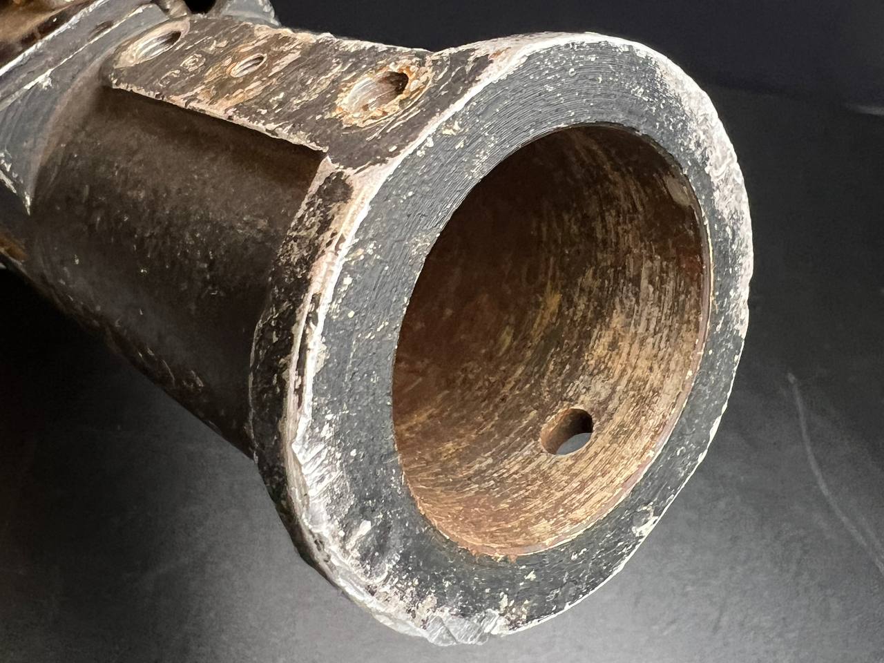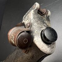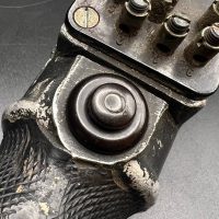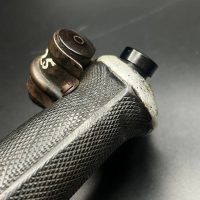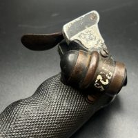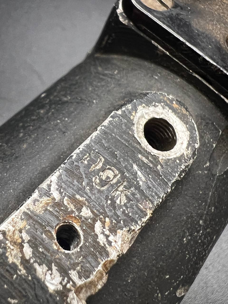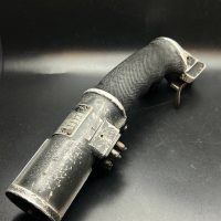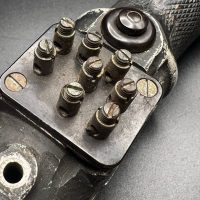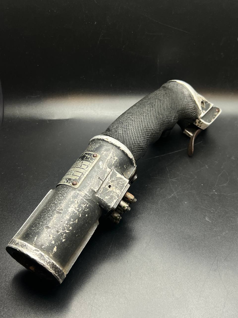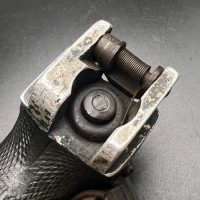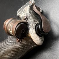 Original control stick grip from the Messerschmitt Bf 109 /Focke Wulf FW 190 fighter aircraft of the World War II period. Features a aluminium body with the characteristic ergonomic shape and textured grip surface. Equipped with original buttons and levers for weapon and system controls. Factory data plate with markings and serial details is present and legible. Authentic aviation component, showing strong service wear, combat patina, and remaining in untouched, unrestored condition.