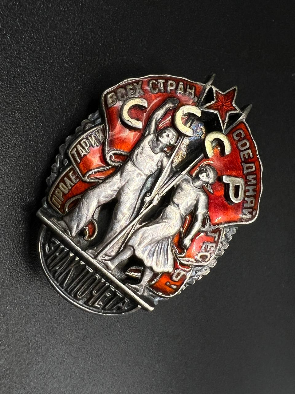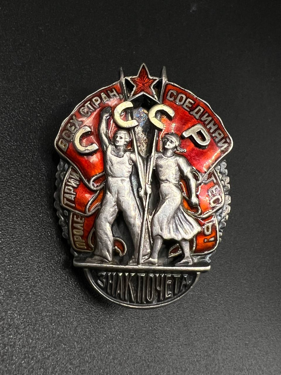 The “Small” version of the Badge of Honor is among the rarest Soviet awards: only about 1500 were ever produced, and many were replaced later with the more “modern” full-size types. Another major factor contributing to its rarity is the fact that a sizable percentage of the issues were to top party officials and NKVD officers. At the time, they were prime candidates for extermination in the next wave of Stalin’s purges – which meant that their orders would have been confiscated and melted down for scrap.