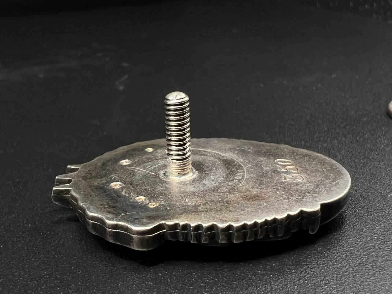 The reverse is likewise practically pristine, exhibiting a beautiful patina to silver. The screw post is well over 11 mm long, and has not been shortened. Included is the original 17.6 mm wide silver screw plate with Mondvor logo, weighing 2.0 g, a unique type used only on the Type 1 “Small” Badge of Honor.