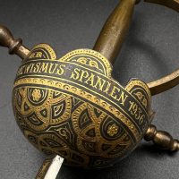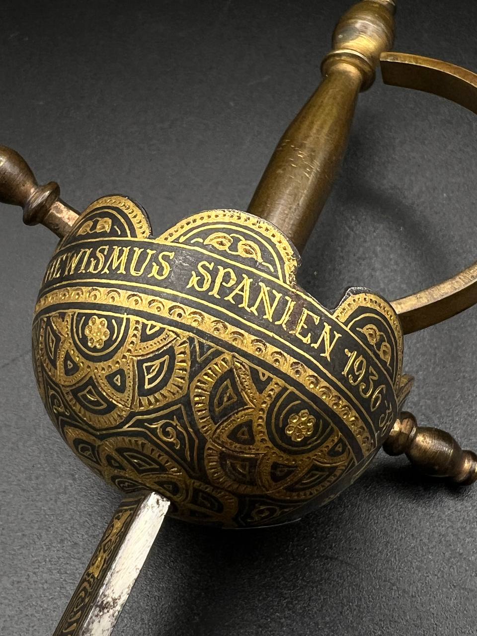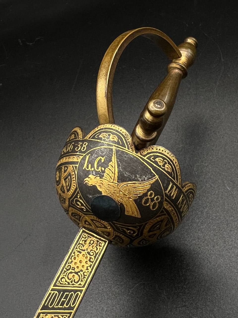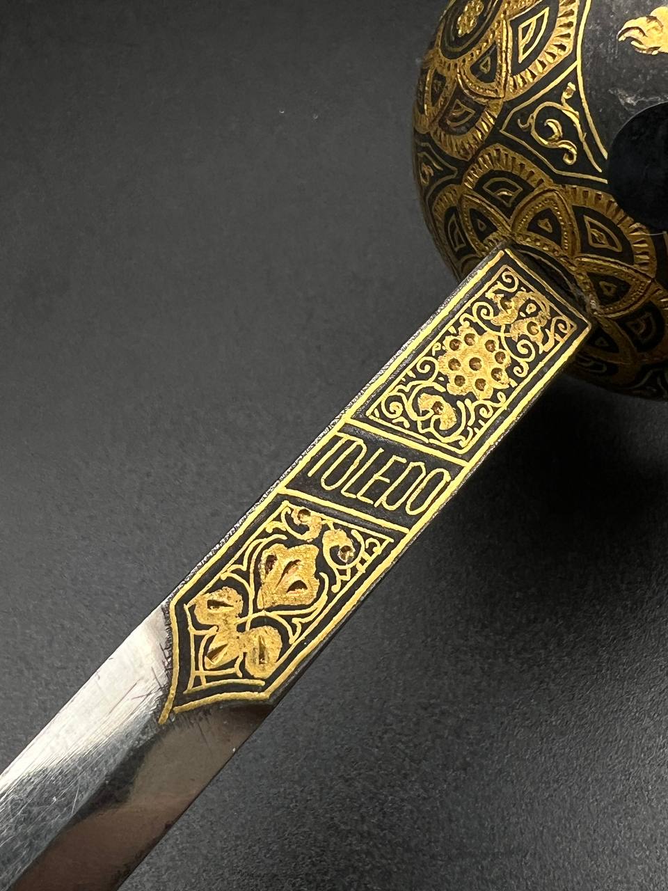 Mid-20th century, likely 1930s–1940s period style. These sets were produced in Toledo, Spain, as high-quality decorative or souvenir items.
