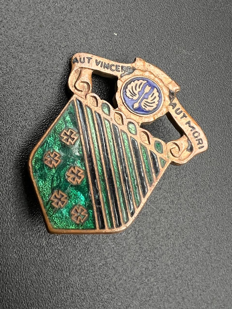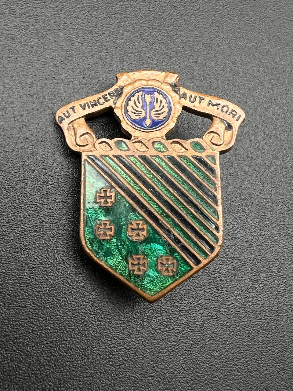Above is a blue disc with a silver arrow between wings and the unit motto “AUT VINCERE AUT MORI” (“To conquer or die”).