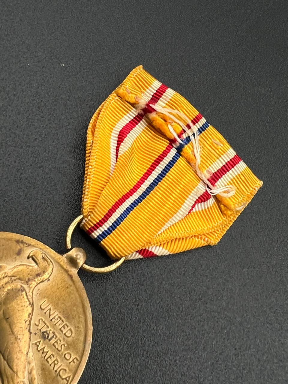 • Ribbon: Yellow with red, white, and blue stripes, symbolizing the Pacific theater.