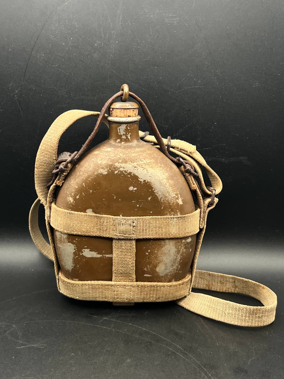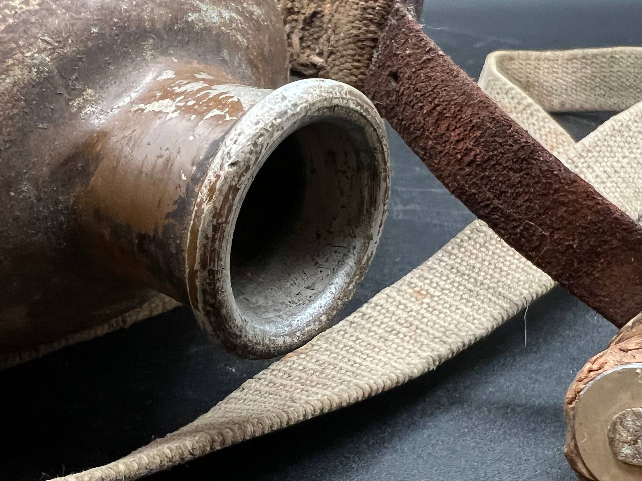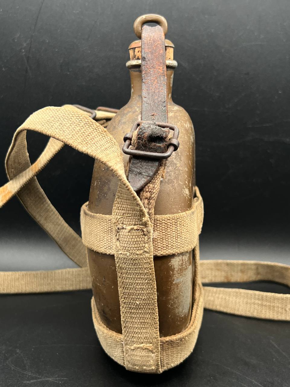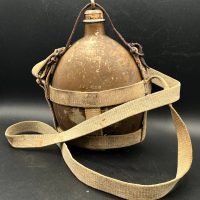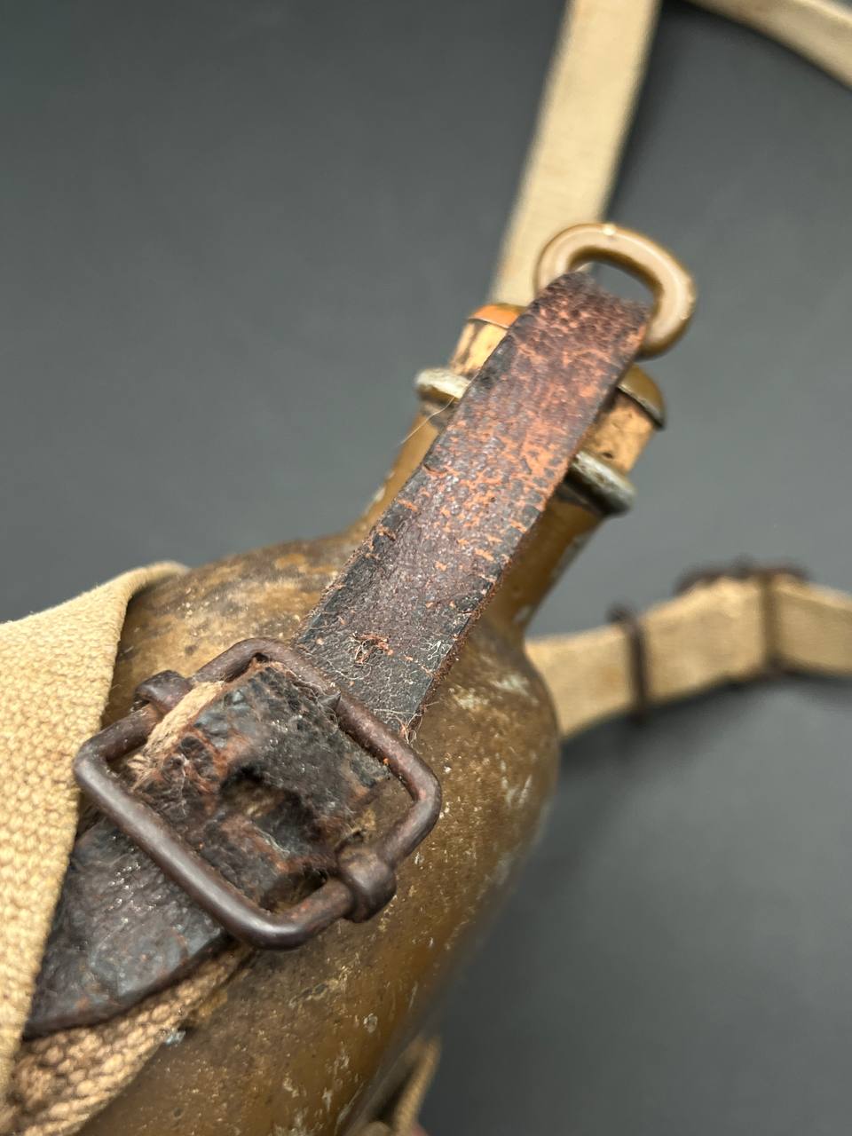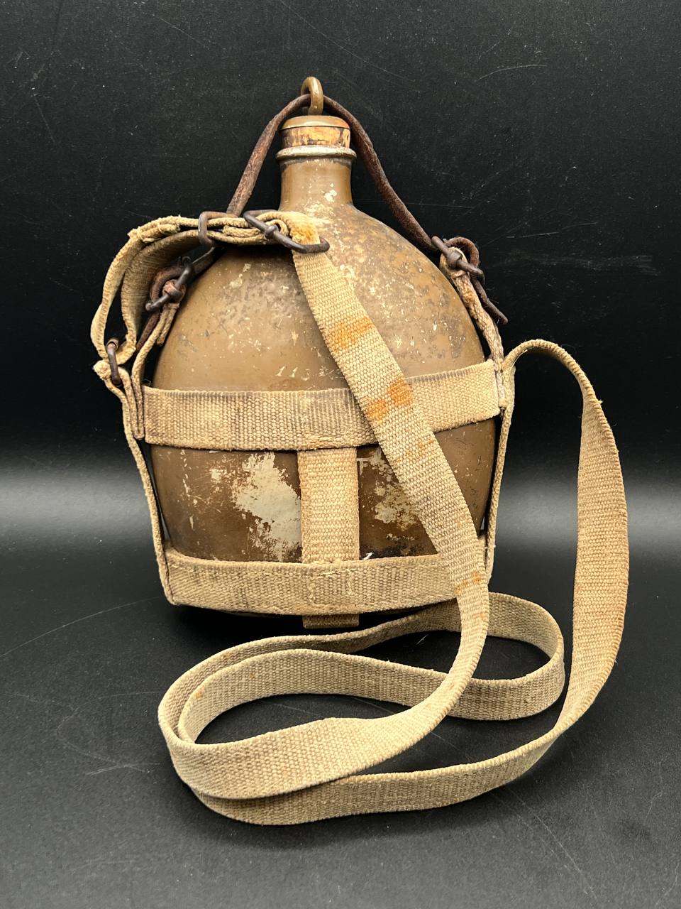 These canteens were standard issue for Japanese infantry across all Pacific war fronts. This example remains in authentic field-used condition, complete with its original straps and fittings.