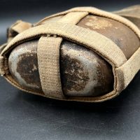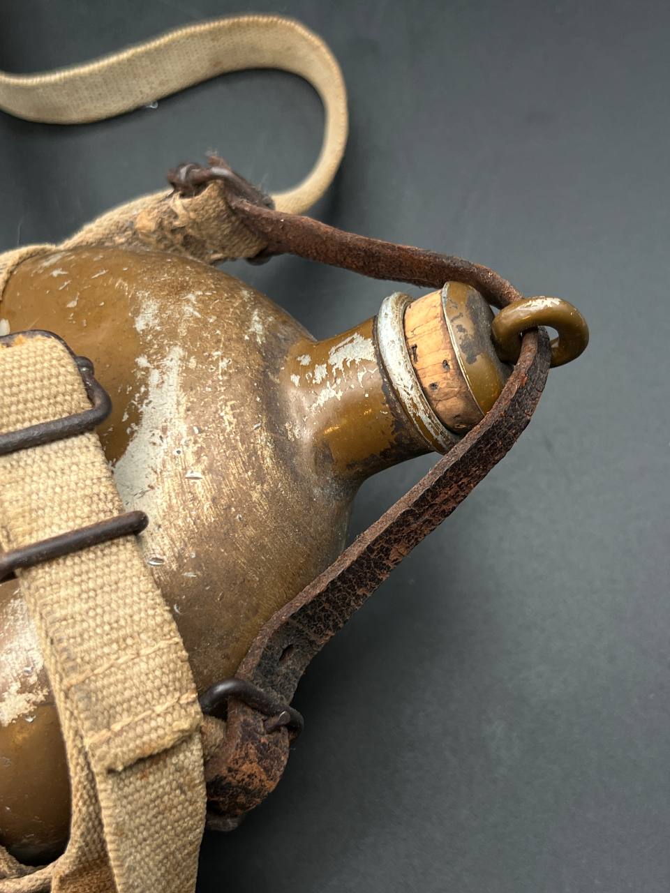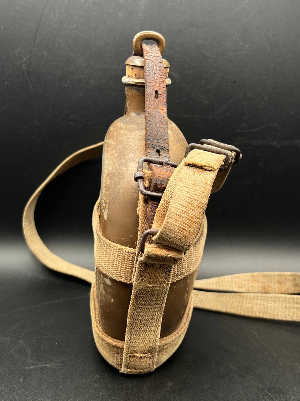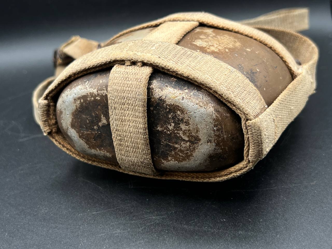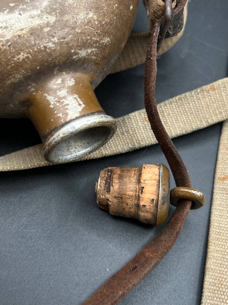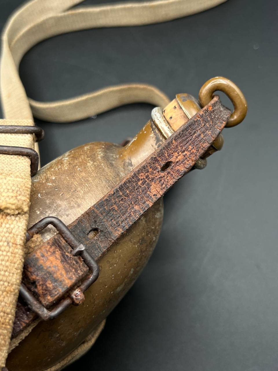 These canteens were standard issue for Japanese infantry across all Pacific war fronts. This example remains in authentic field-used condition, complete with its original straps and fittings.