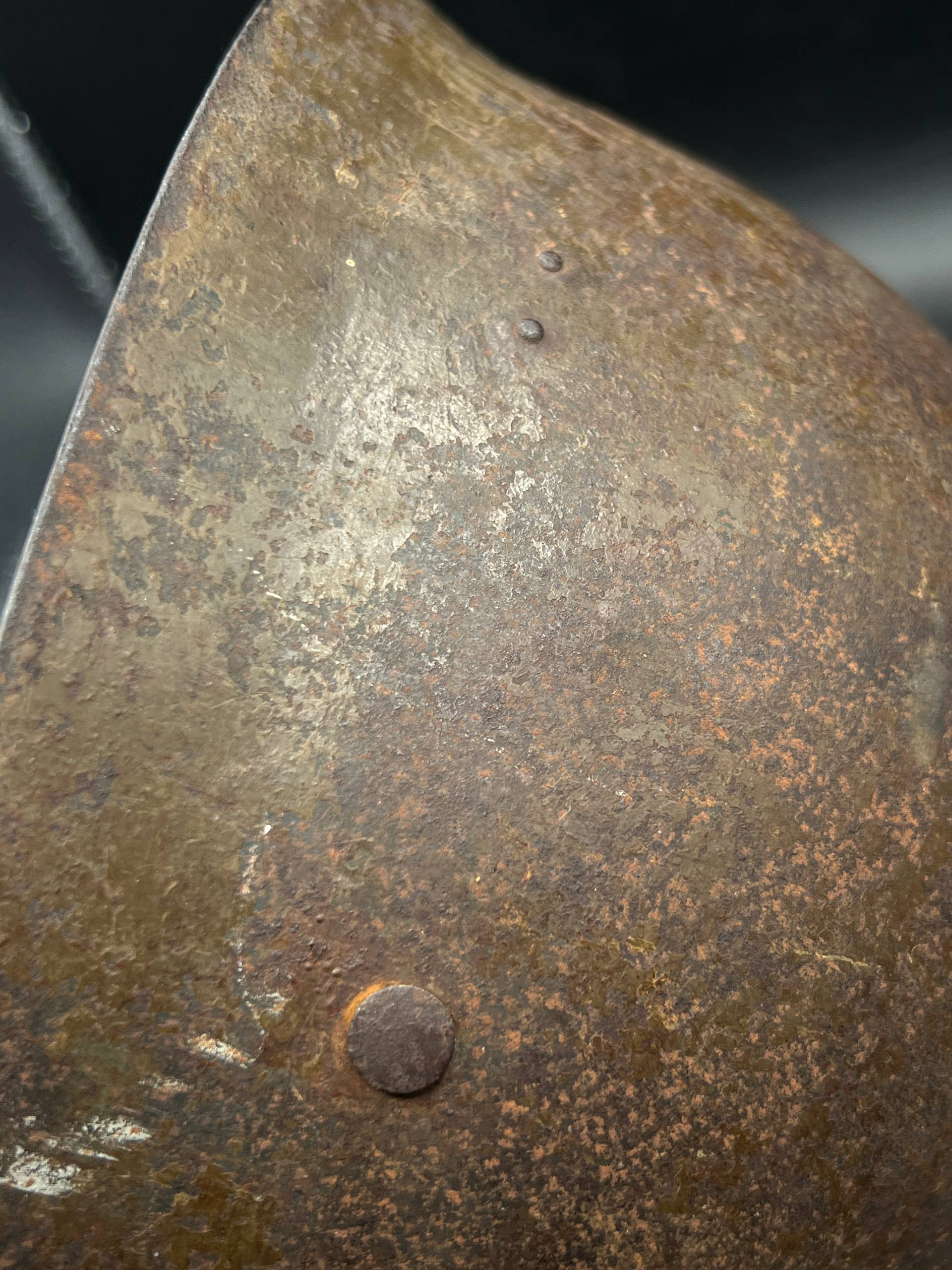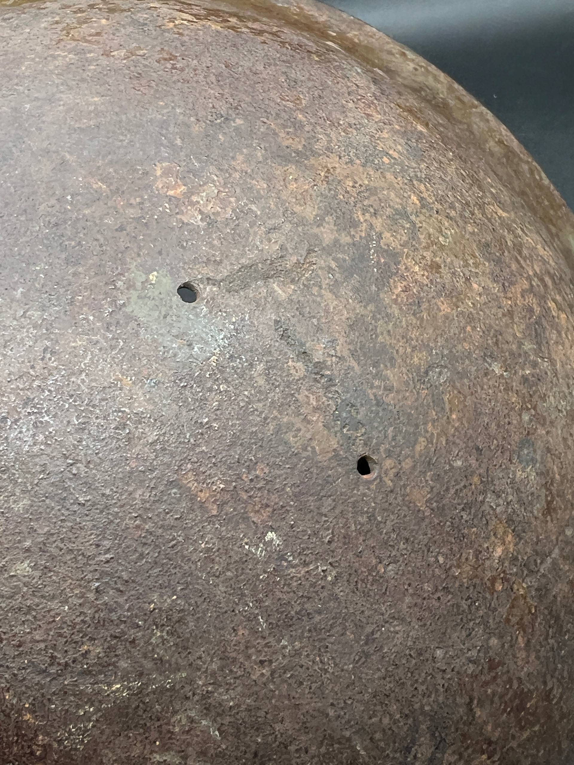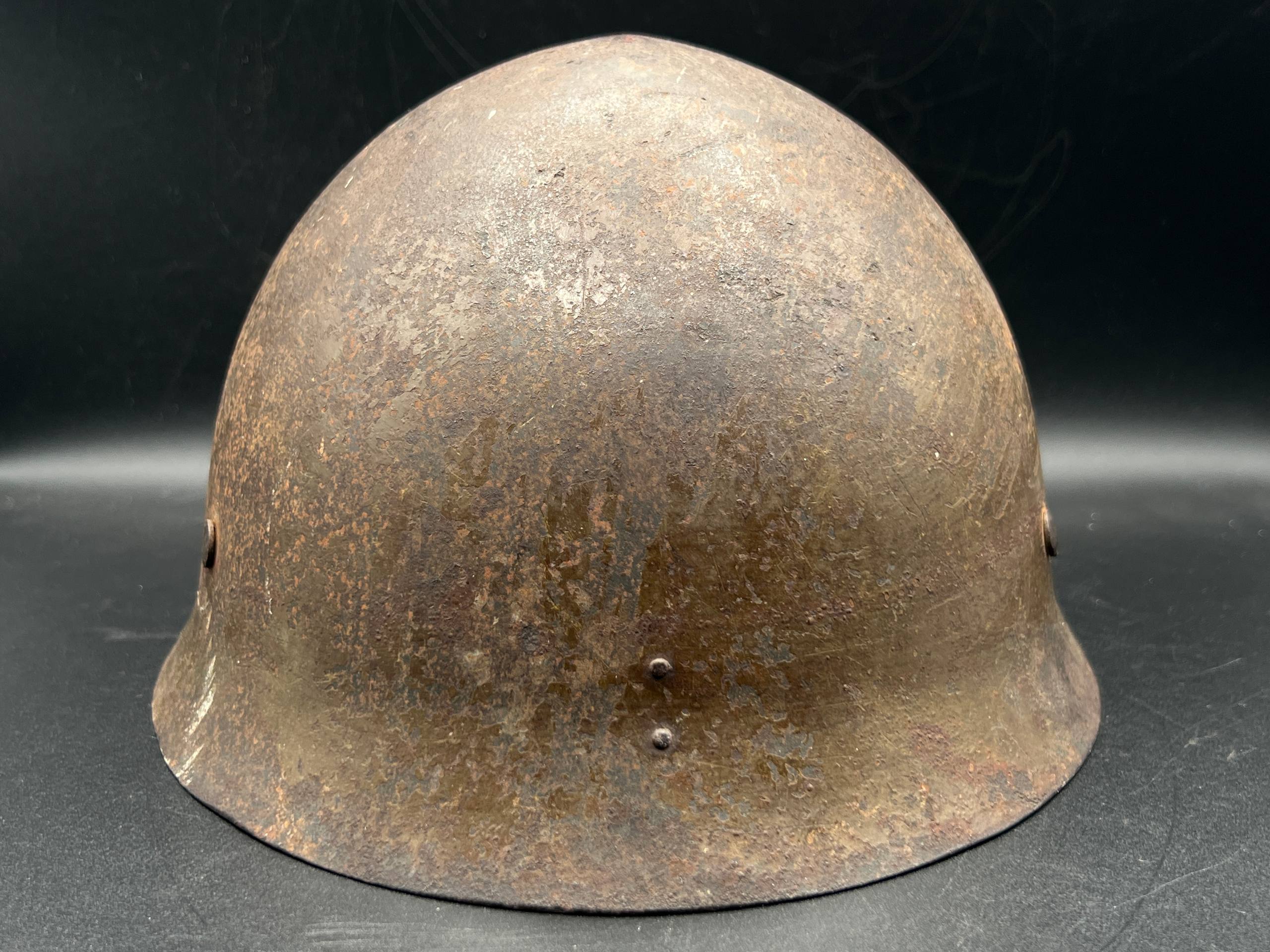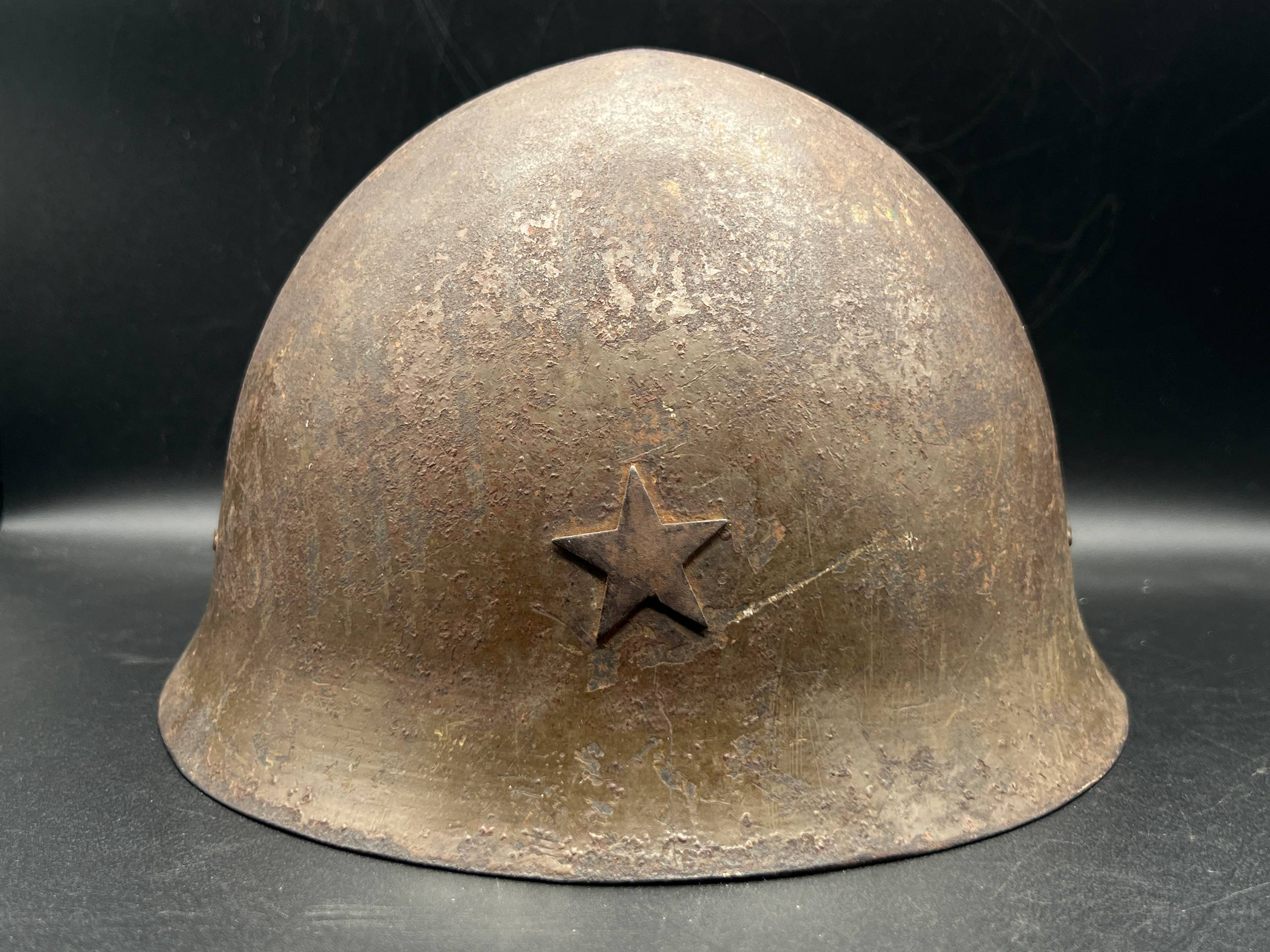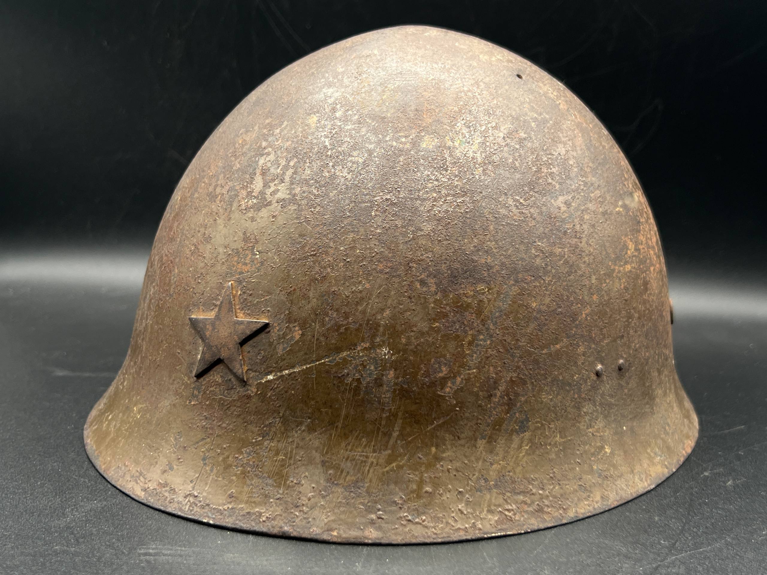 A solid representative example of a WWII Japanese helmet, ideal for display or as a representative piece in a Pacific War collection.