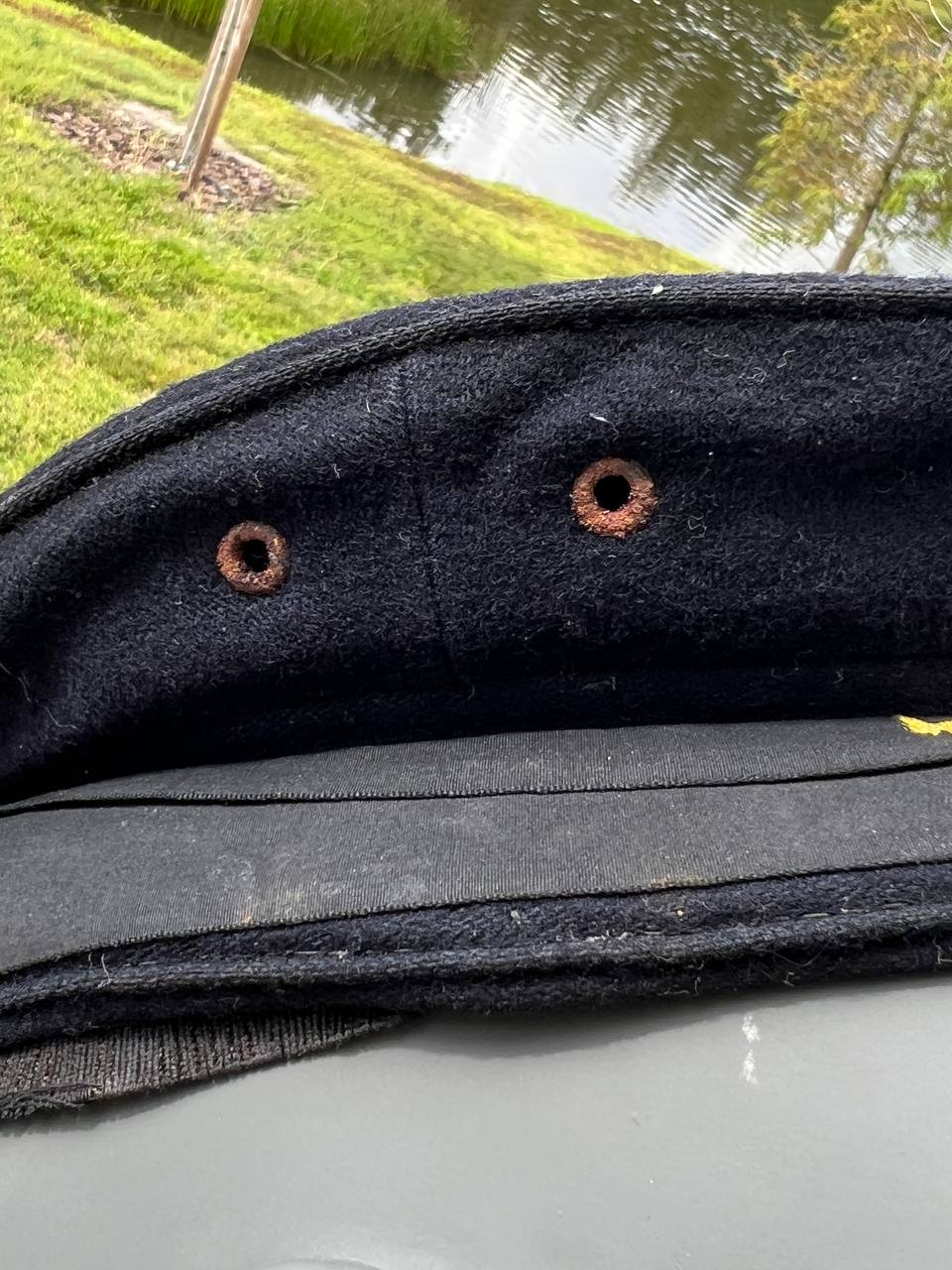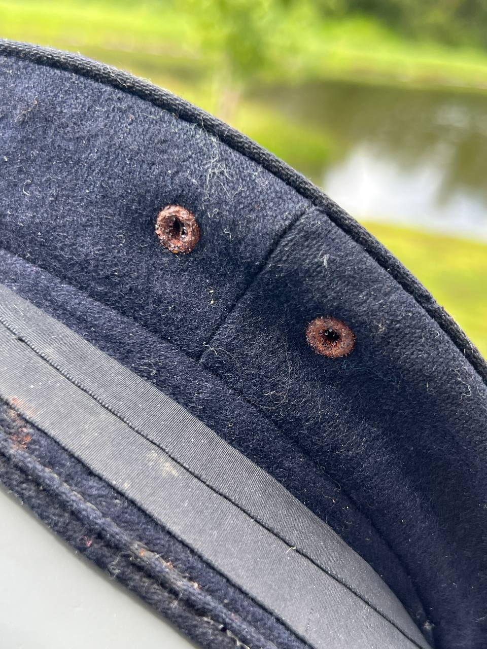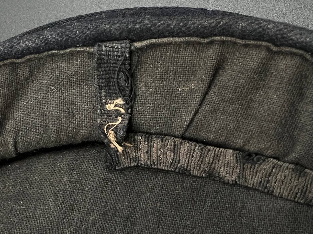 Constructed of dark blue wool with a sweatband. A well-preserved example for its age, with clear inscriptions and original ribbons intact.
