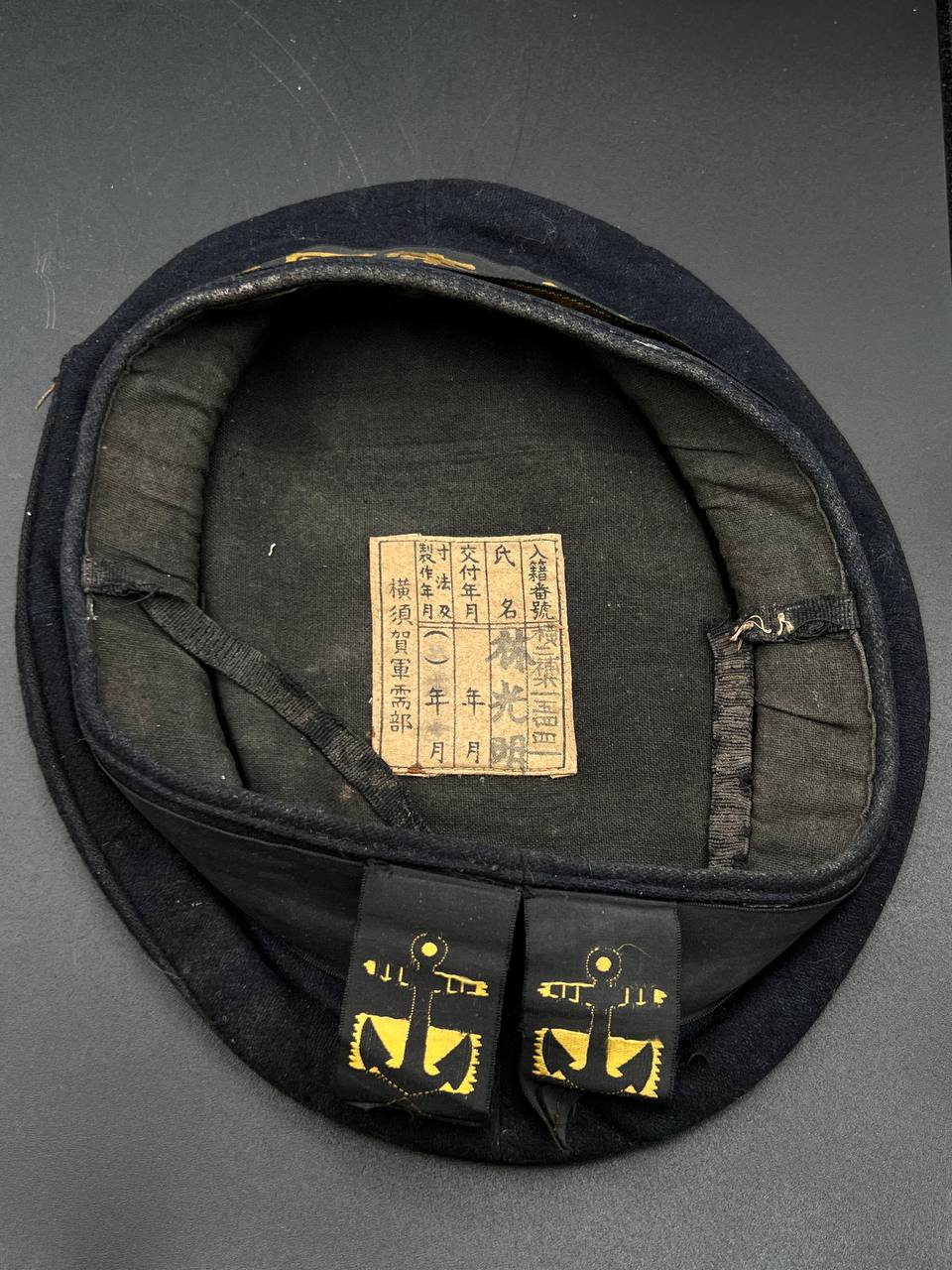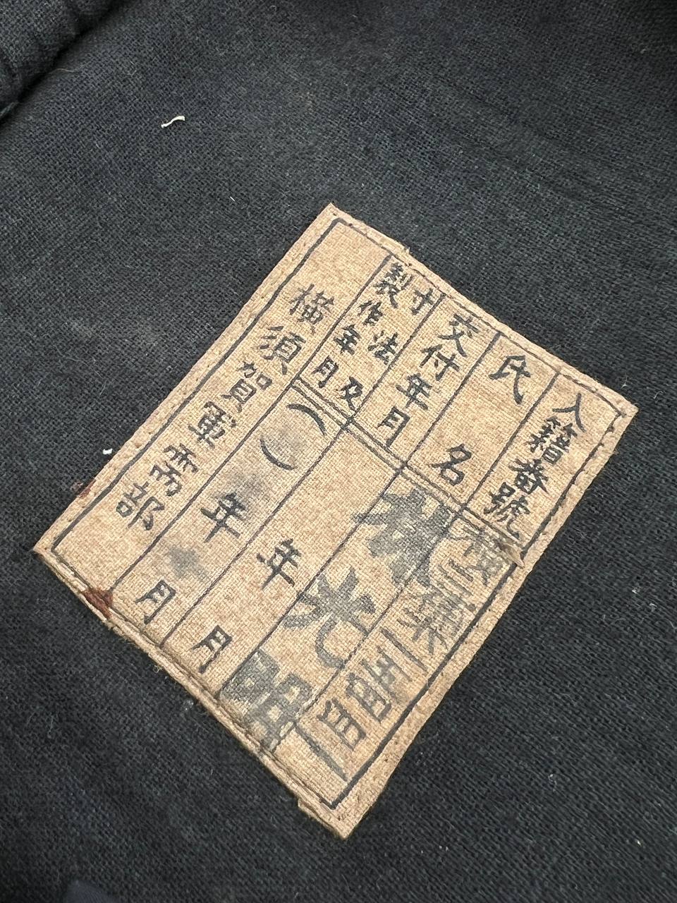 • Inside remains the cloth label with kanji fields for the sailor’s name, issue date, and naval district/arsenal.