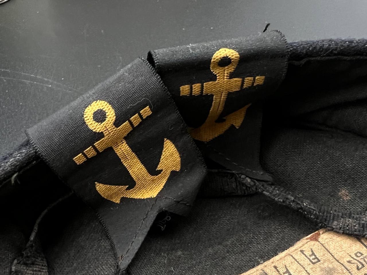 • The dark blue tally bears gilt characters 大日本帝國海軍 (Dai Nippon Teikoku Kaigun – “Great Imperial Japanese Navy”).