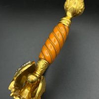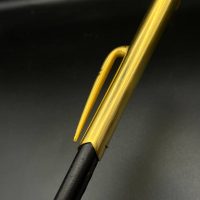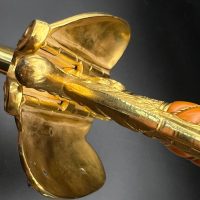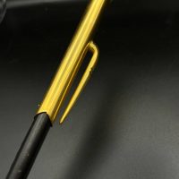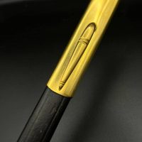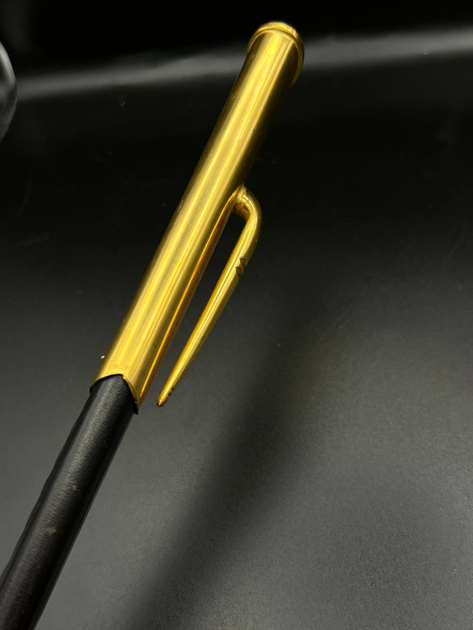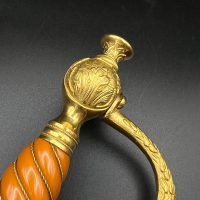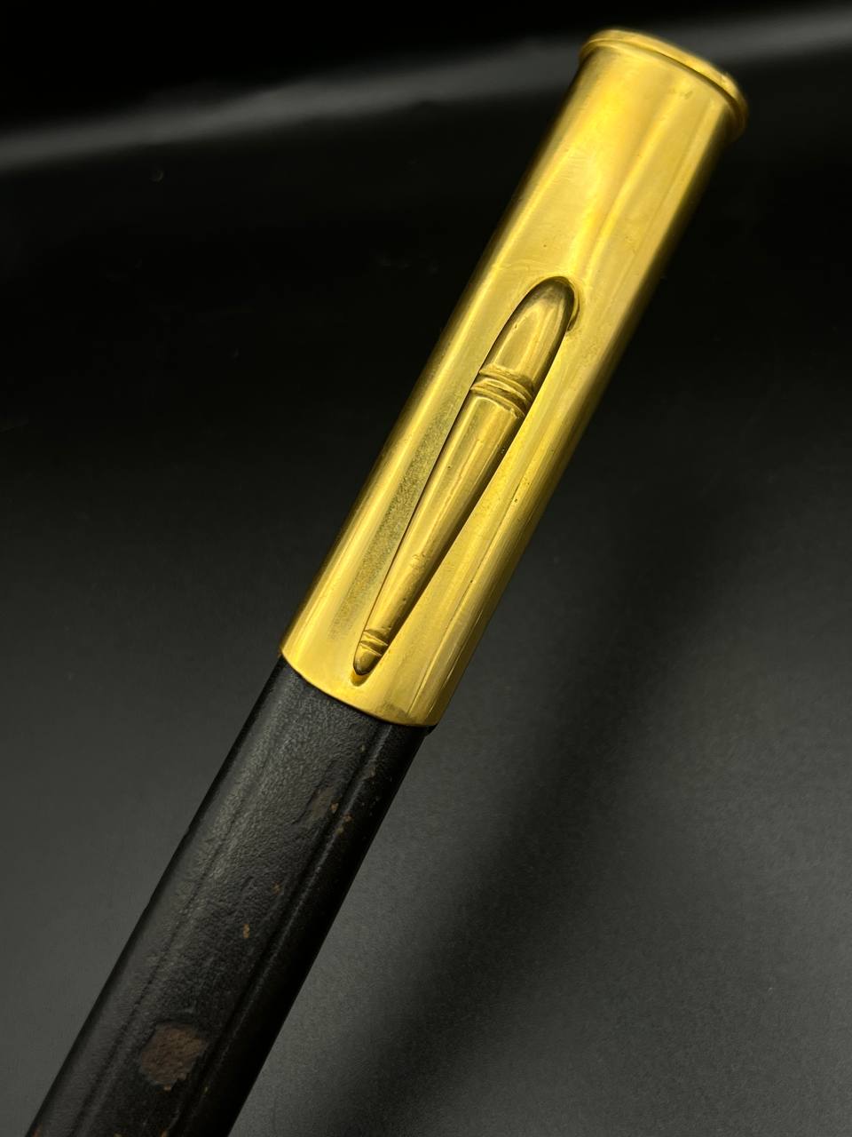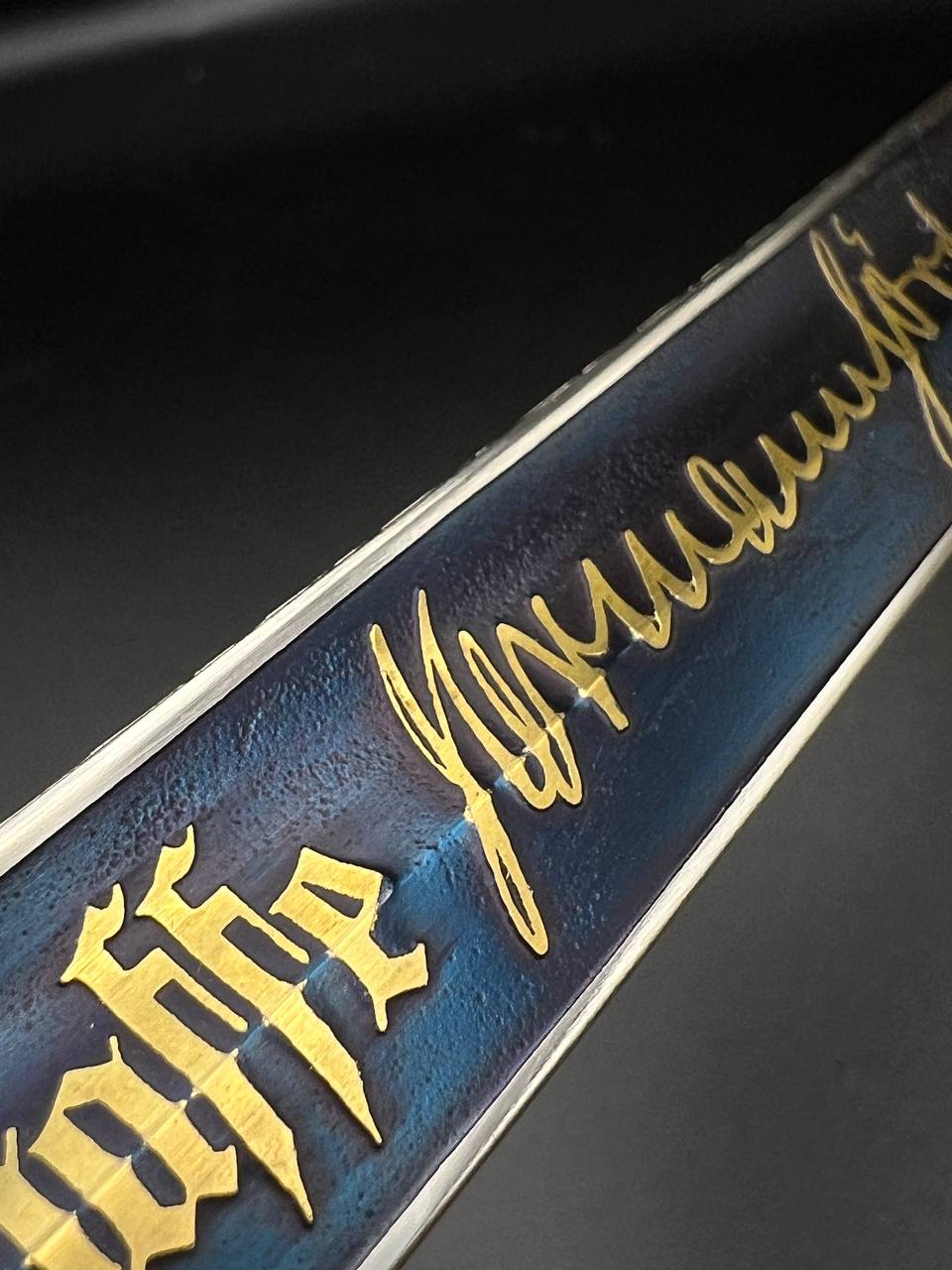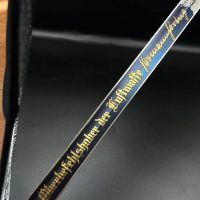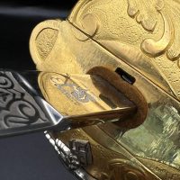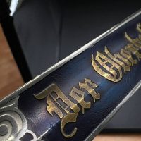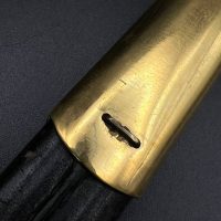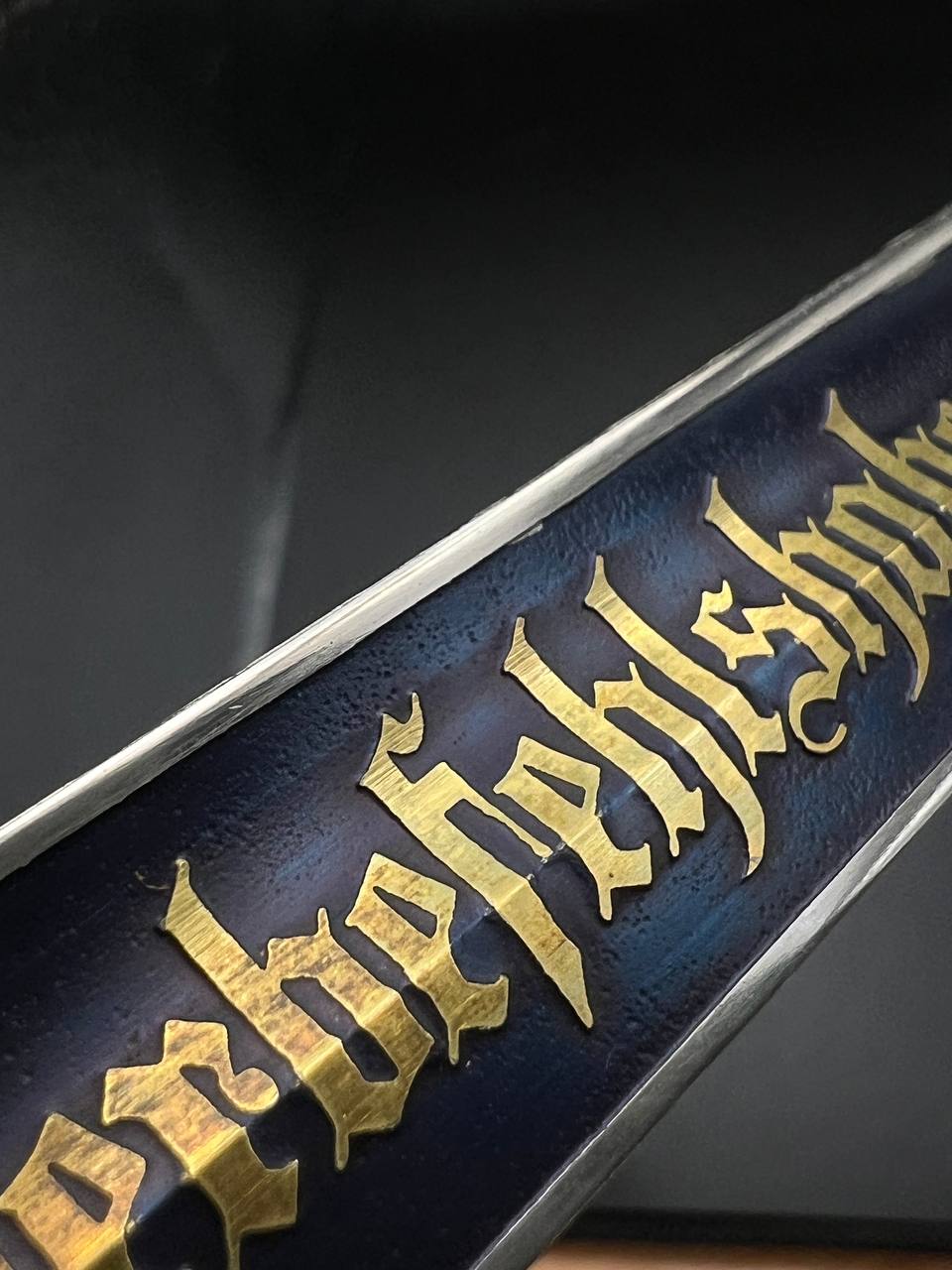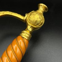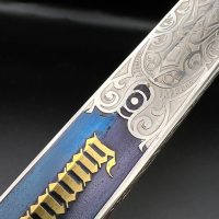 This is the classic version manufactured by Carl Eickhorn Solingen. The hilt fittings in fire-gilt non-ferrous metal, the grip mounts hand-decorated. On the obverse quillon, the separately applied silver-plated Luftwaffe national eagle, triple-riveted. The grip in amber color with gilt wire wrap. Straight nickel-plated and etched blade with fullers on both sides, gilt dedication on the obverse “In dankbarer Anerkennung” (In Grateful Recognition), on the reverse “Der Oberbefehlshaber der Luftwaffe – Hermann Göring” (The Commander-in-Chief of the Luftwaffe – Hermann Göring), each gilt with blued background. On the ricasso with maker’s mark “Original Eickhorn Solingen”. Black leather scabbard with gilt mounts, reverse side clamped.