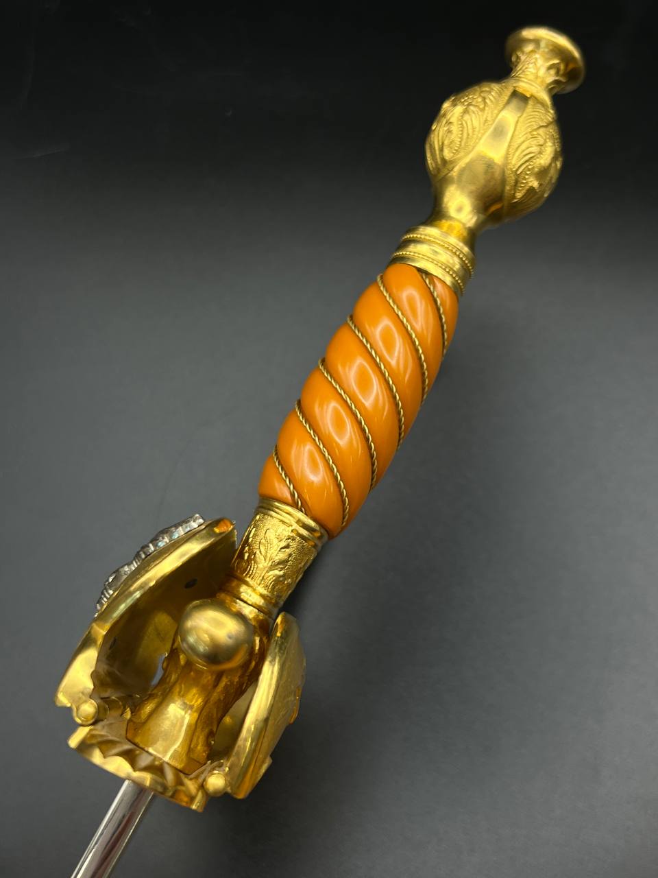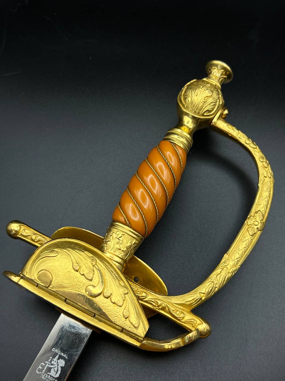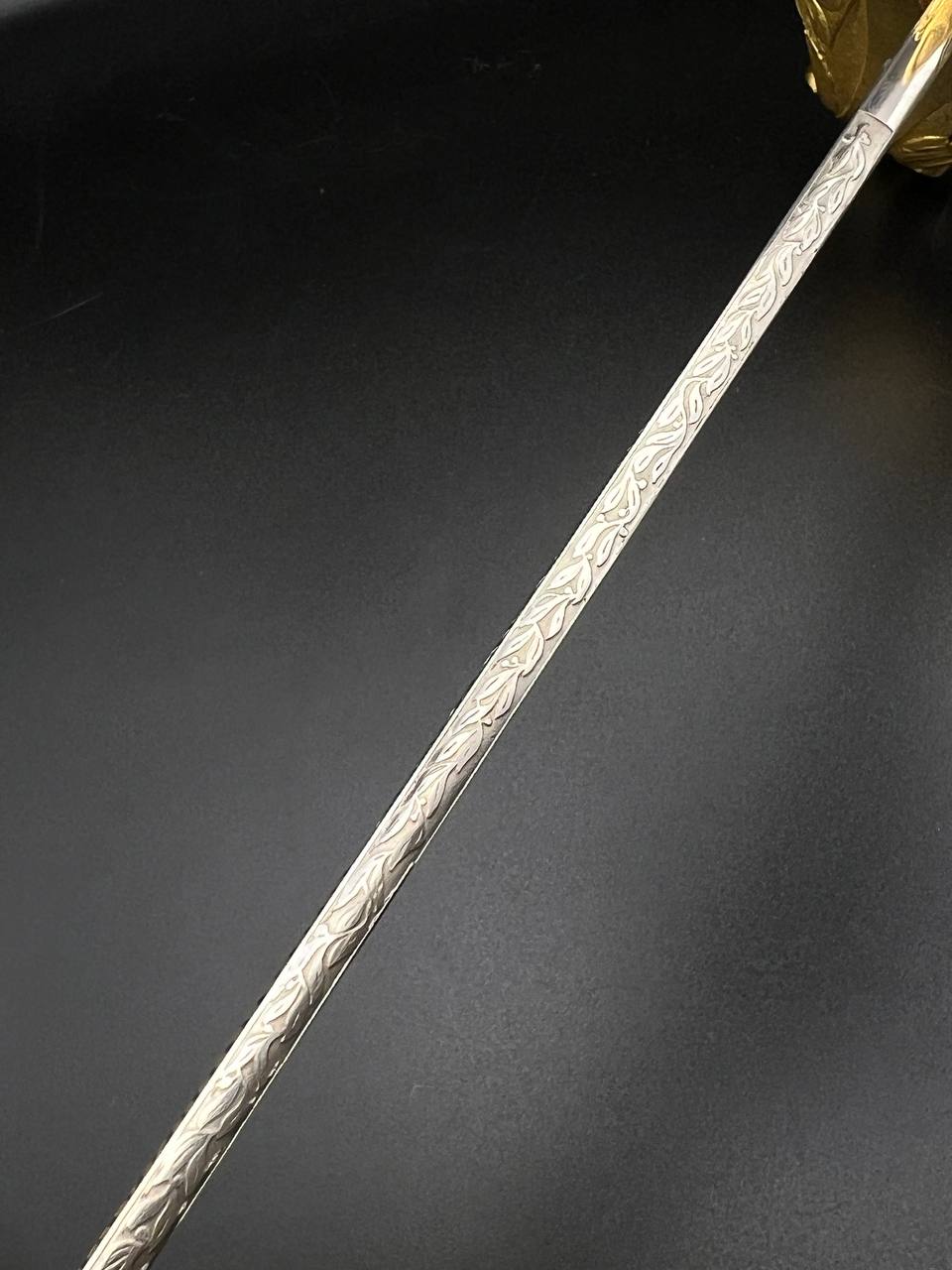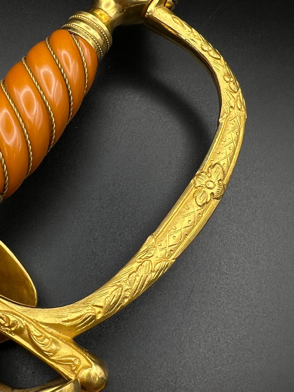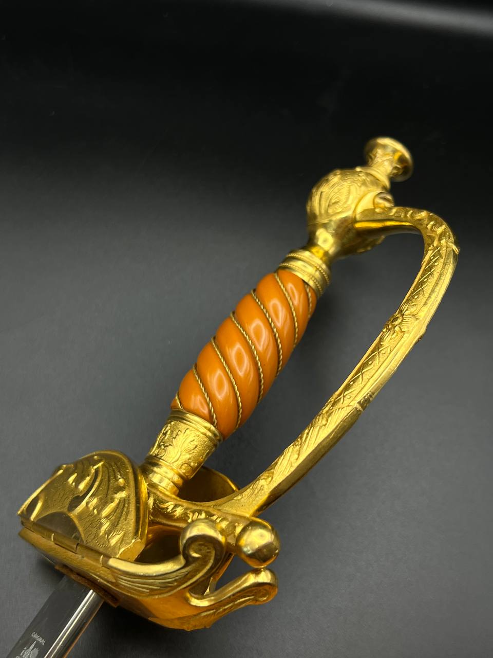 Only very lightly worn, the original gilding of the fittings over 95% intact, the blade in mint condition. A very well-preserved piece.