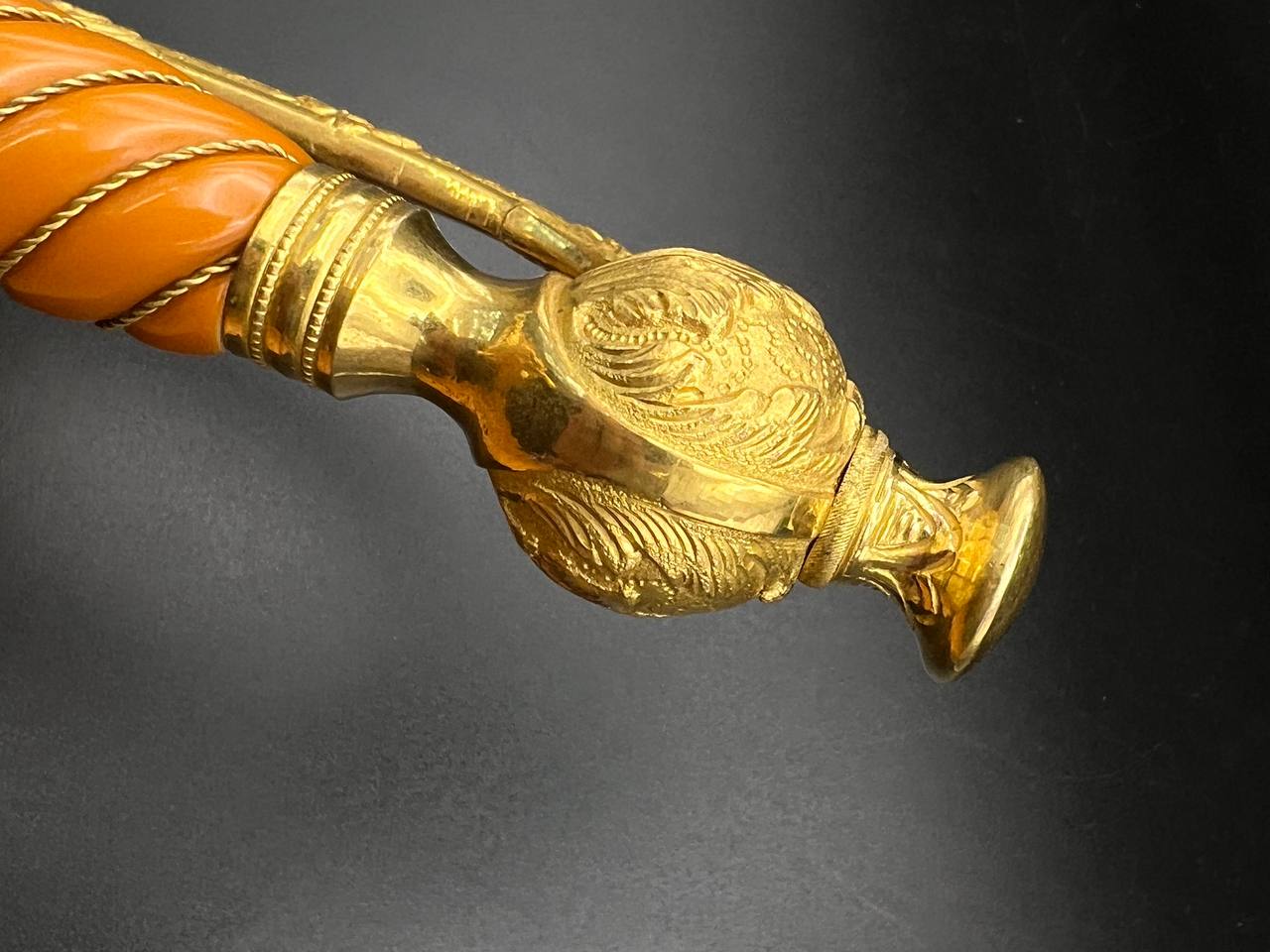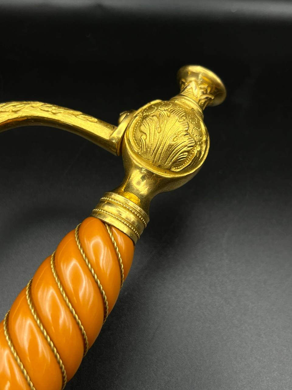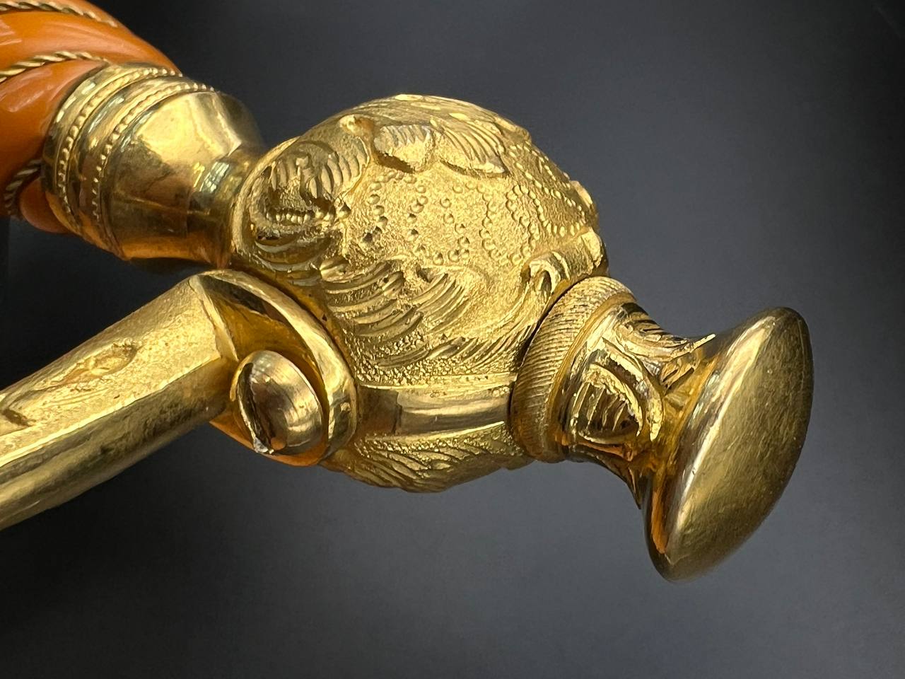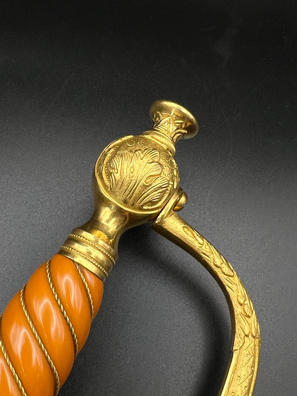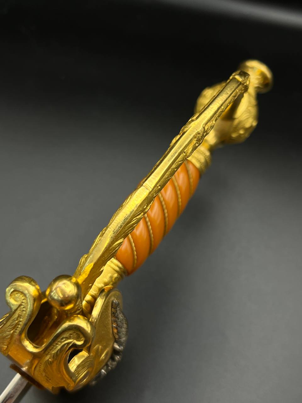 Only very lightly worn, the original gilding of the fittings over 95% intact, the blade in mint condition. A very well-preserved piece.