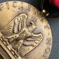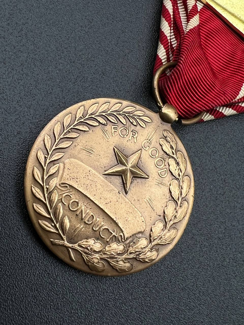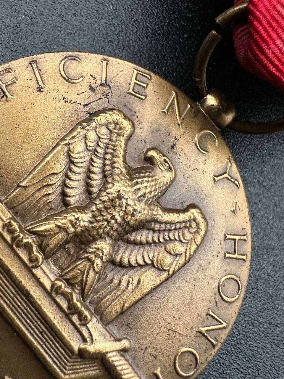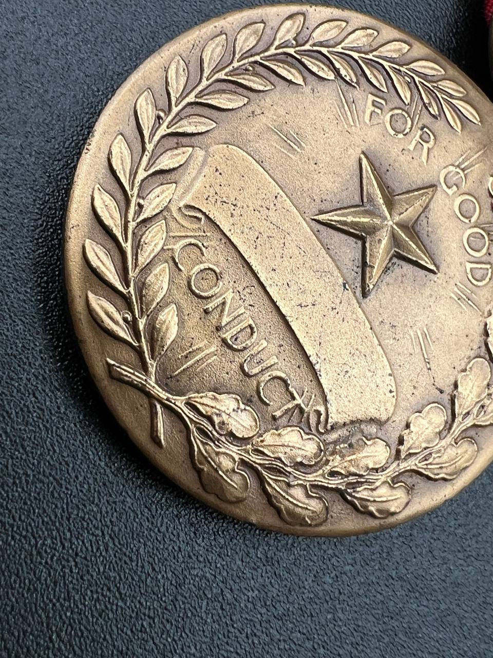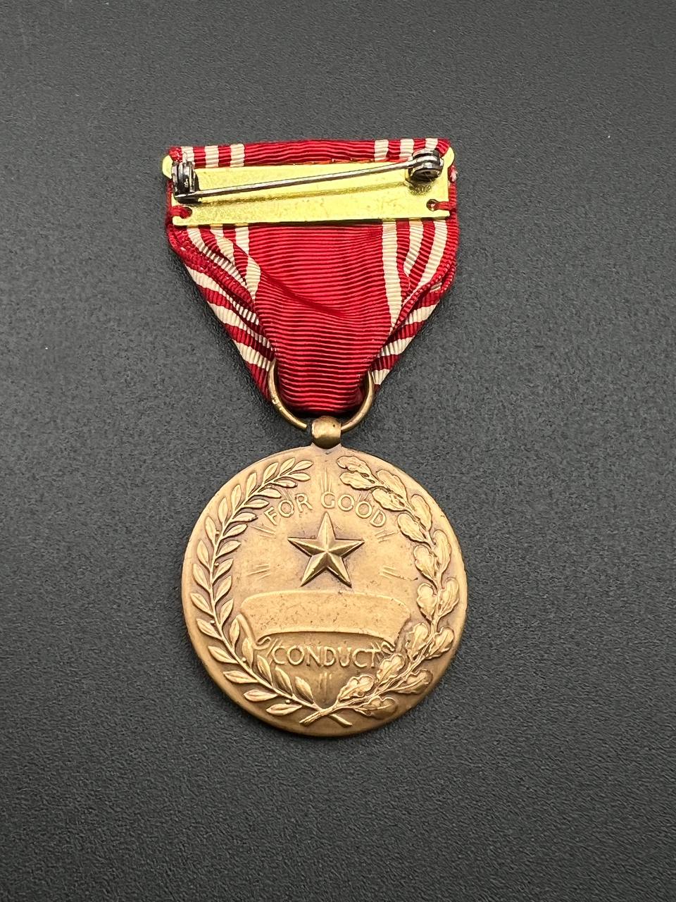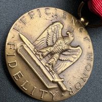 The obverse depicts an eagle perched on a sword and scroll, surrounded by the motto Efficiency – Honor – Fidelity. The reverse bears the inscription For Good Conduct within a laurel wreath and a star.