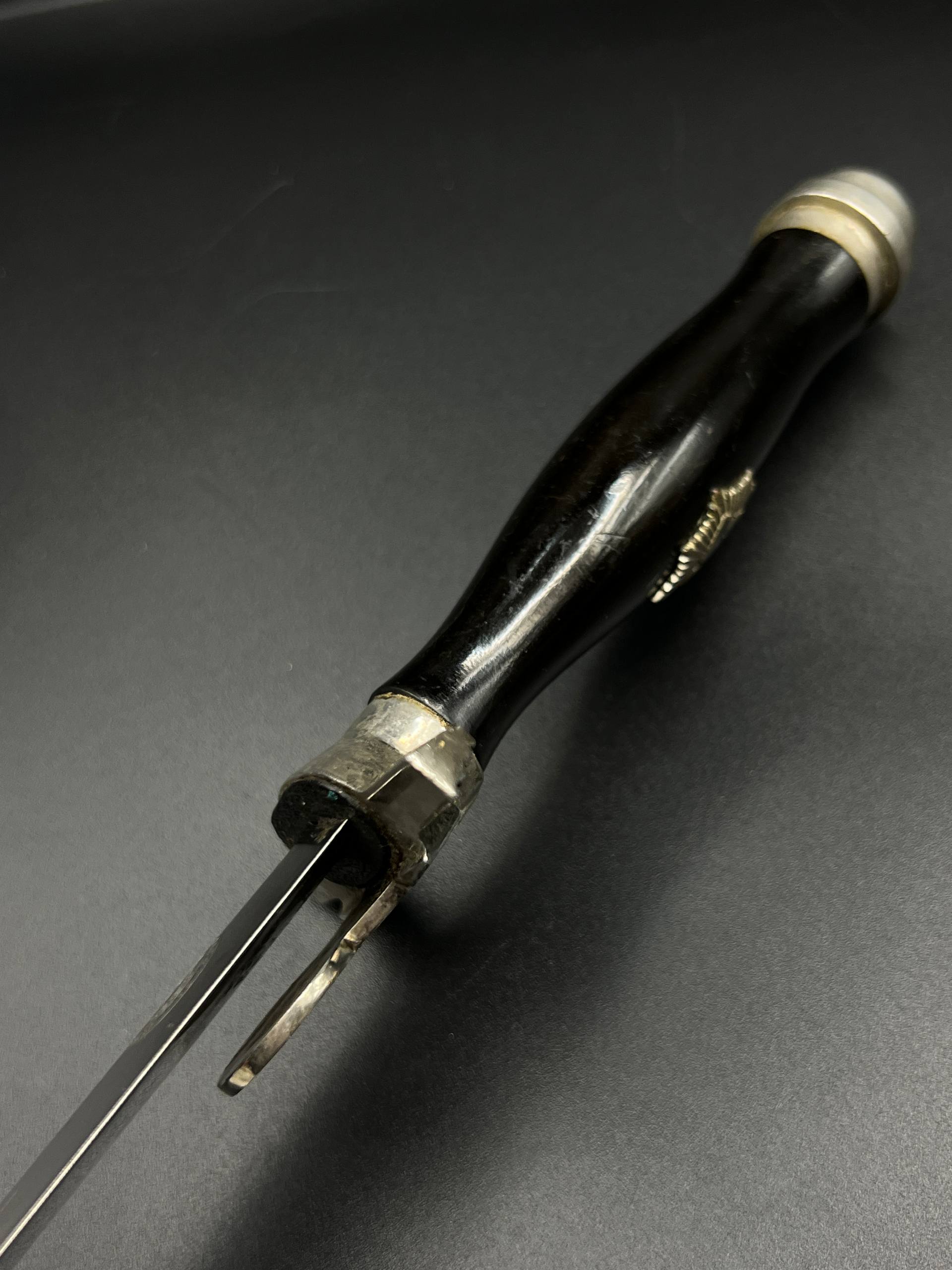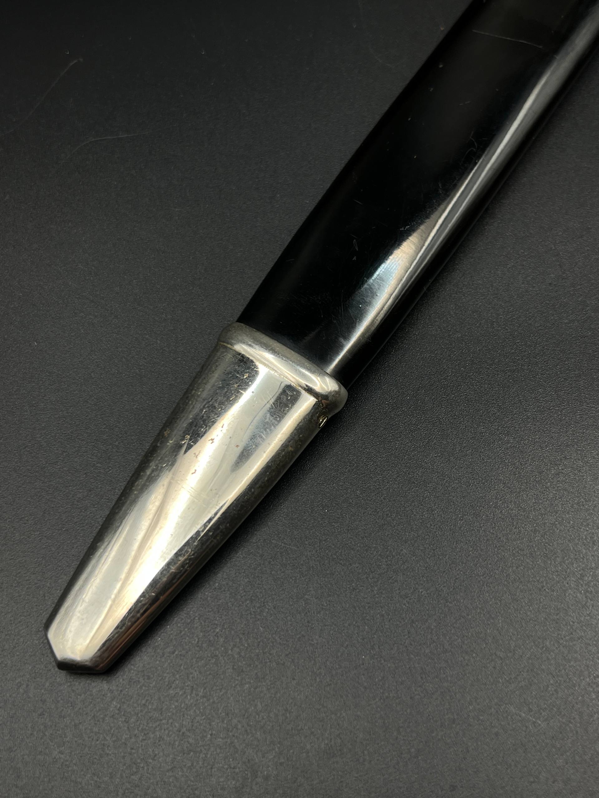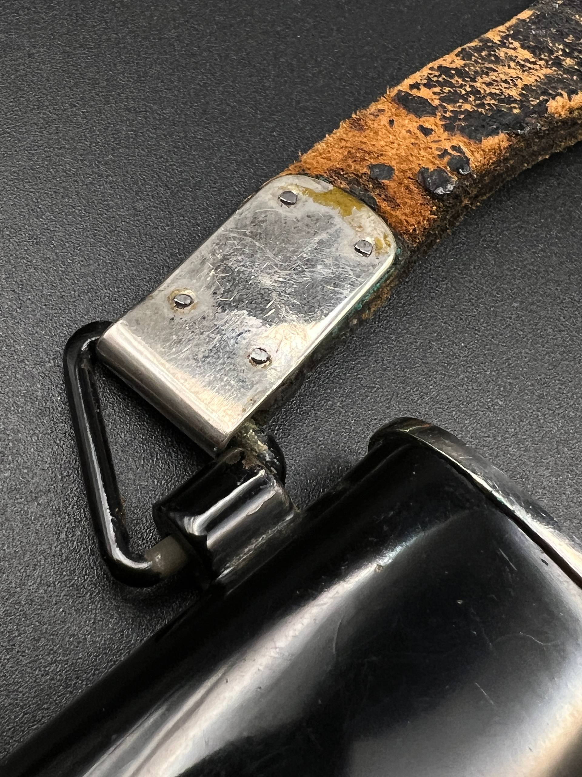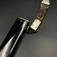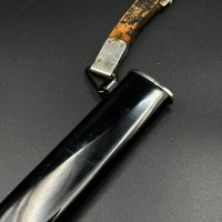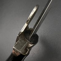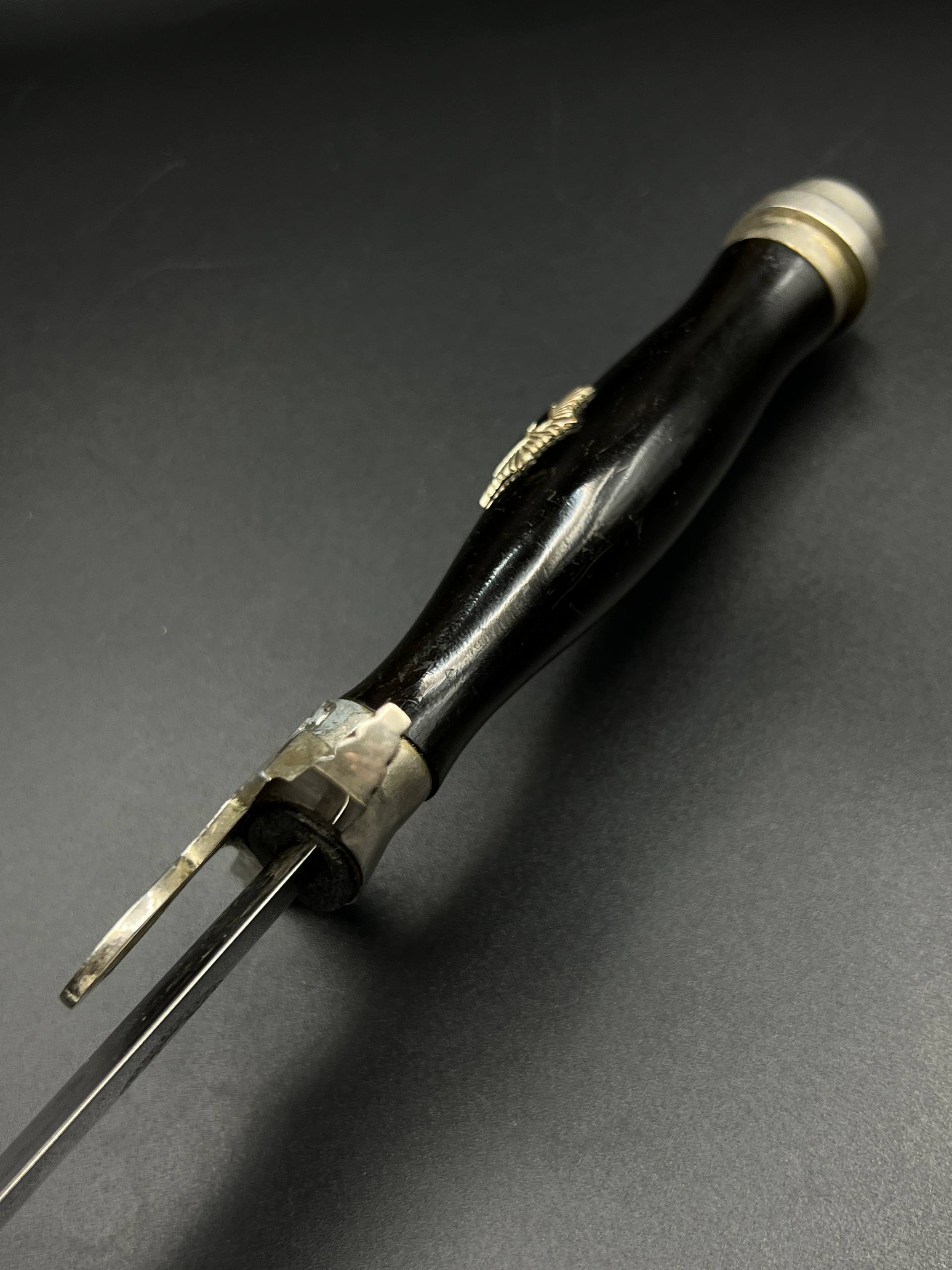 This dagger features a beautiful blade that retains all the original cross grain and has a very nice maker mark from Weyersberg. The eagle on the cross guard shows a few marks and some of the plating is lifted. The grip is clean with very minimal wear and has a excellent RLB emblem. The scabbard has very nice original black paint and no dings or dents. It does retain the original leather tab style hanger, that is heavily worn but still functions properly. Overall a fine example of this style dagger.