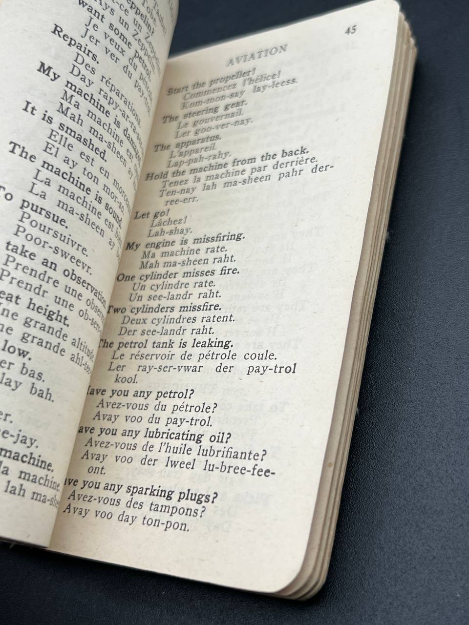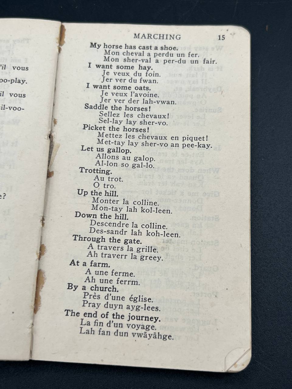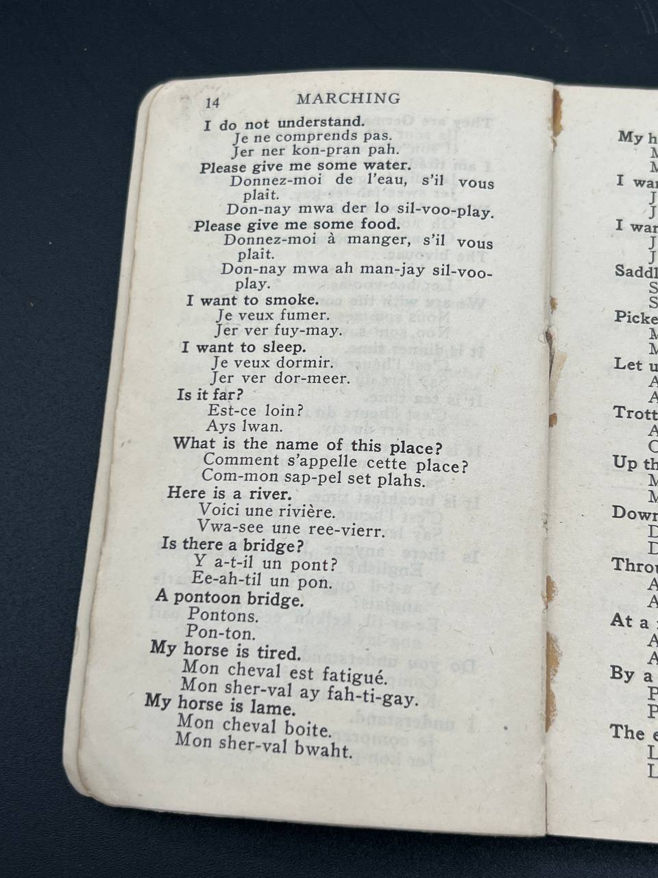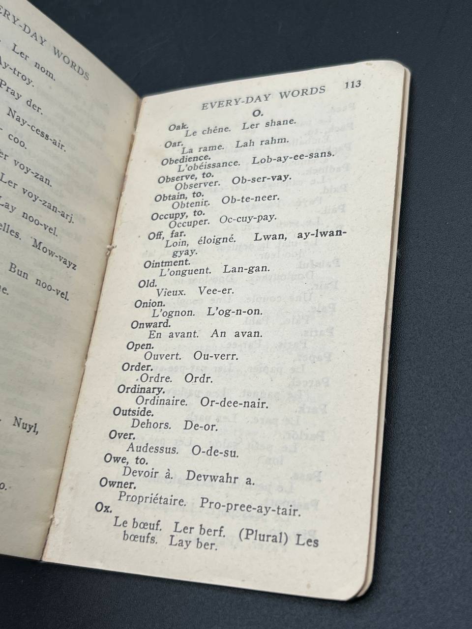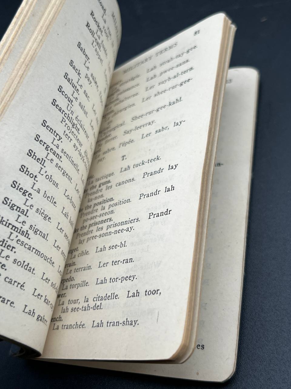 Original World War I military language handbook designed for British soldiers heading to the Western Front.