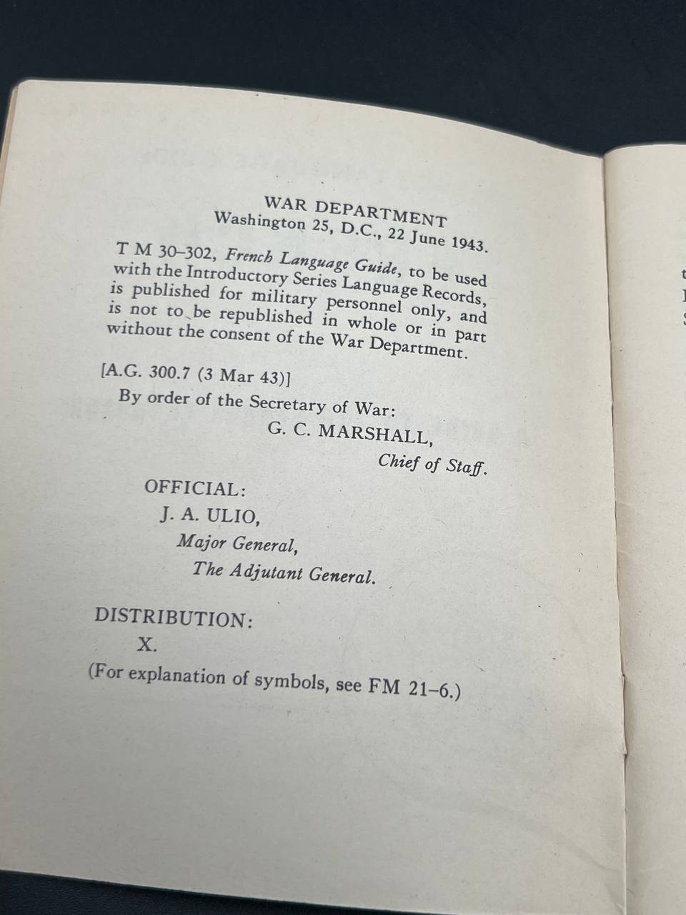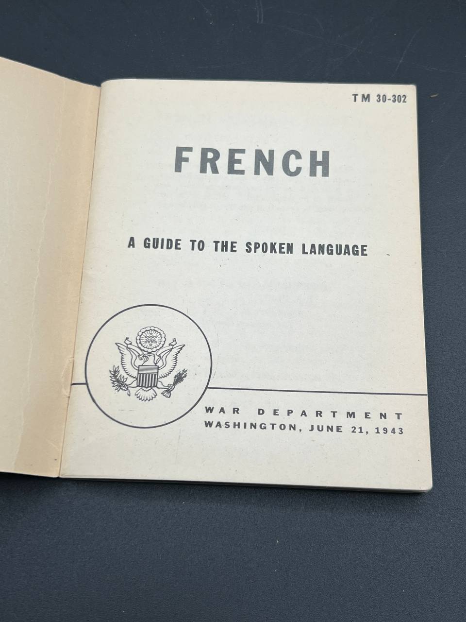 Official designation: TM 30-302, “French: A Guide to the Spoken Language”, published June 21, 1943 by the War Department, Washington, D.C.