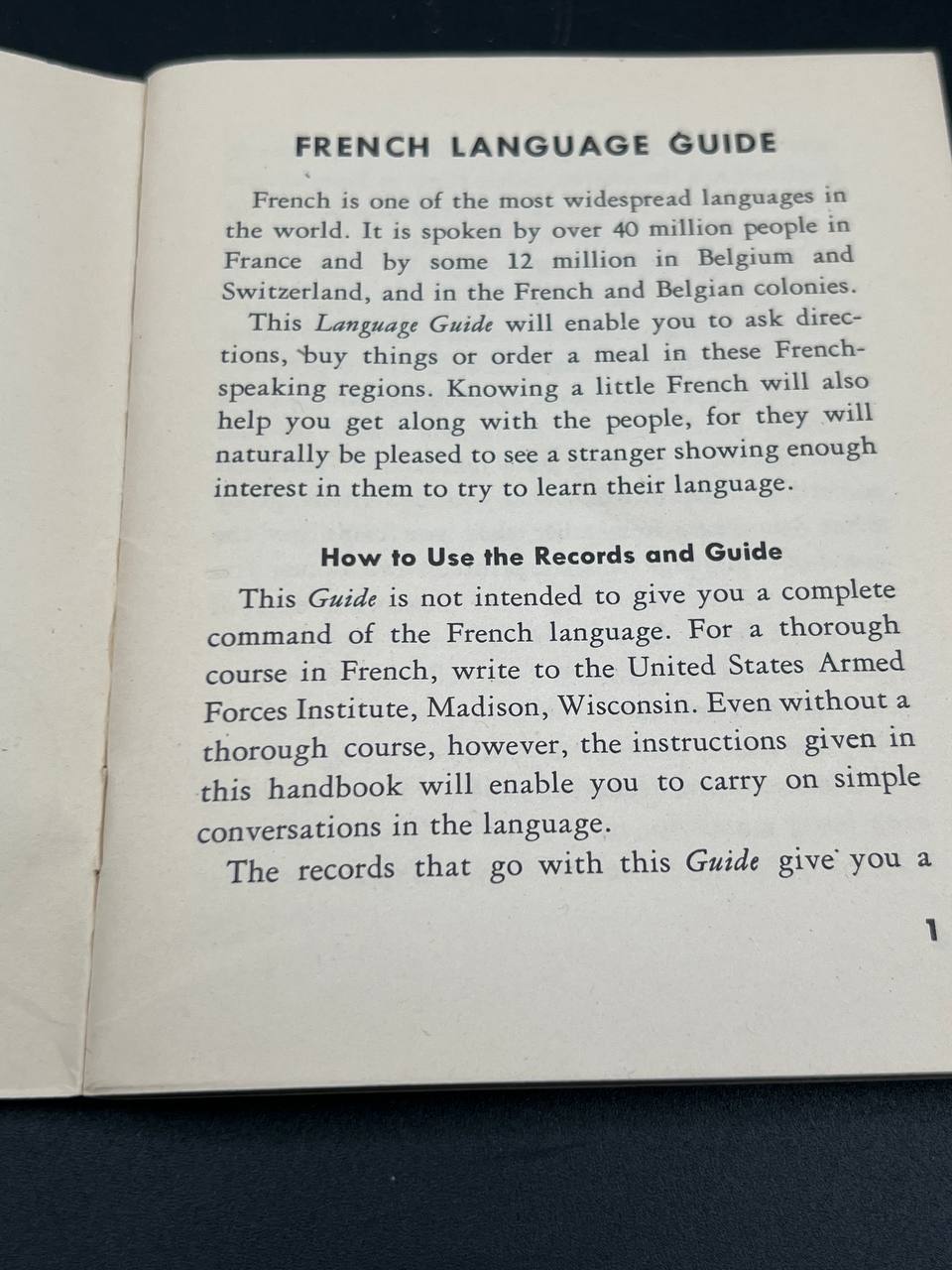 Original WWII-era U.S. War Department language manual, issued to American servicemen preparing for operations in France and French-speaking territories.