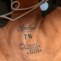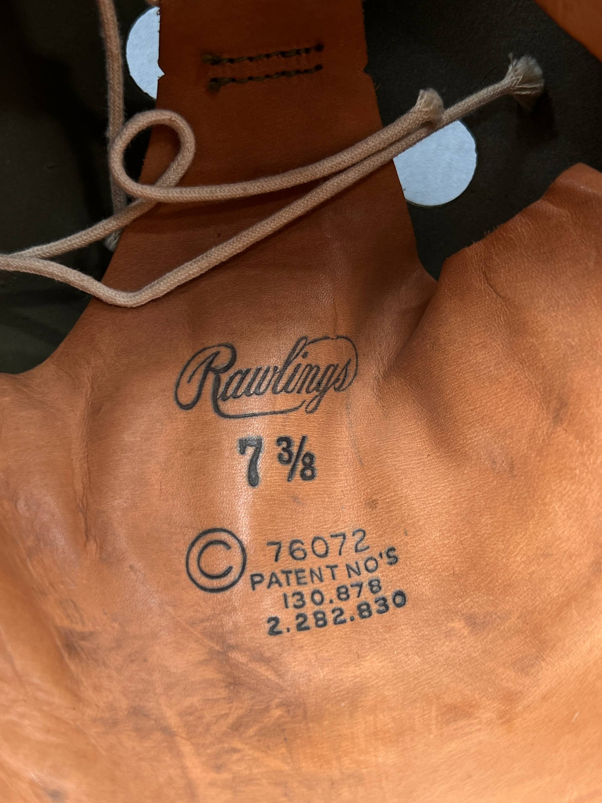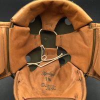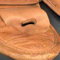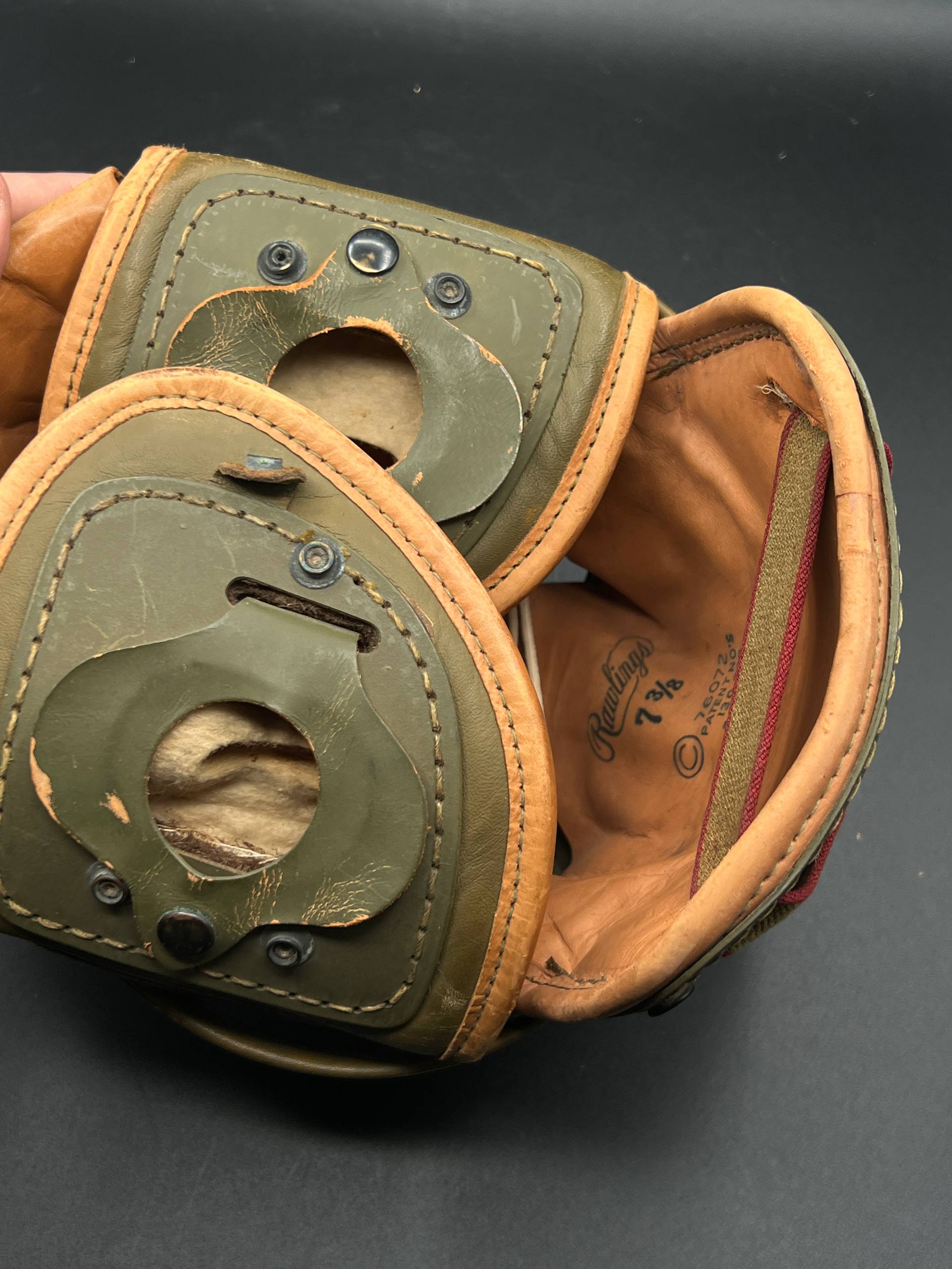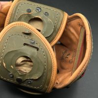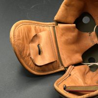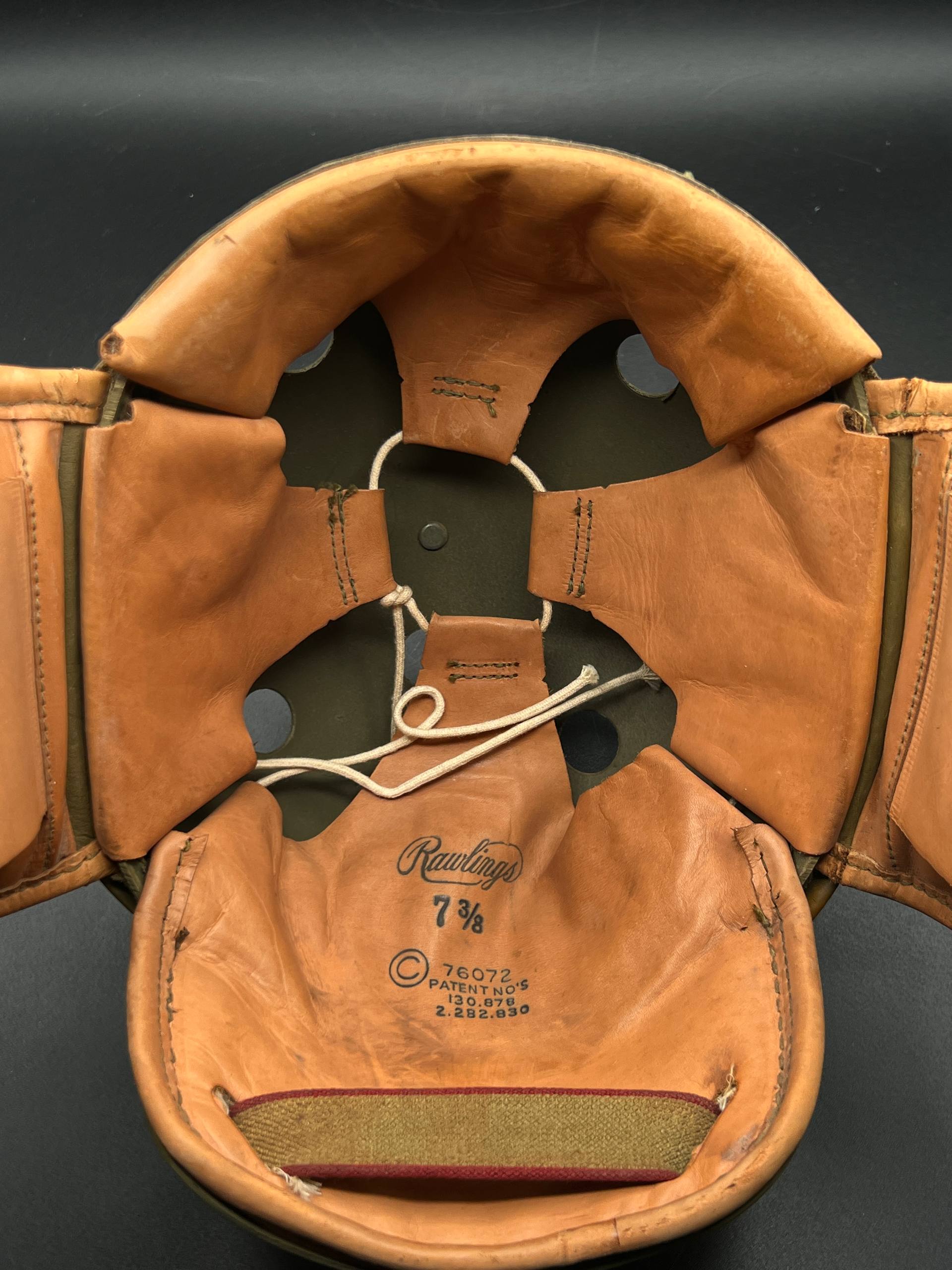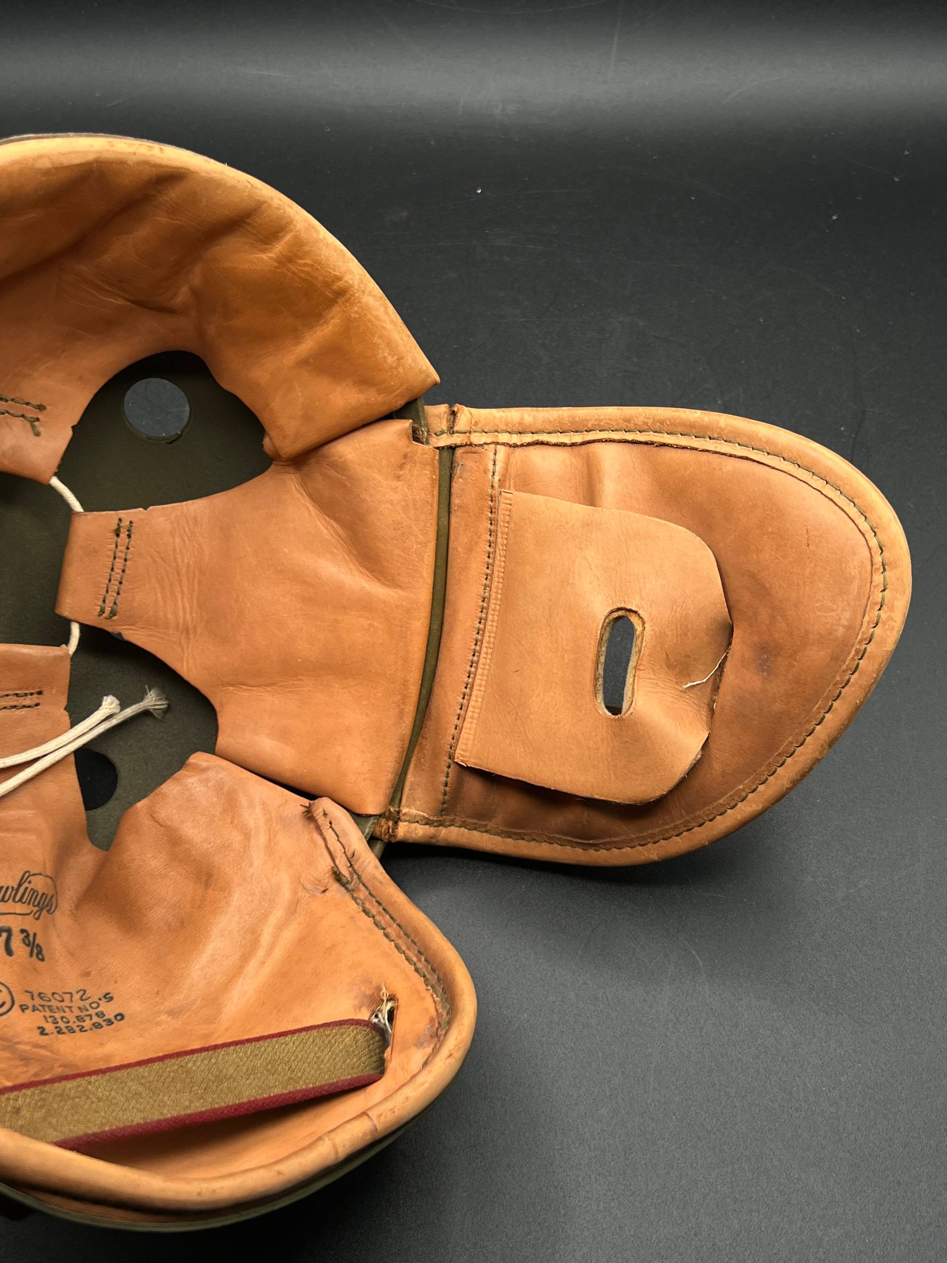 The leather remains supple with honest service wear. Some surface cracking and paint loss to the ear protection plates consistent with age and use. All components appear present.